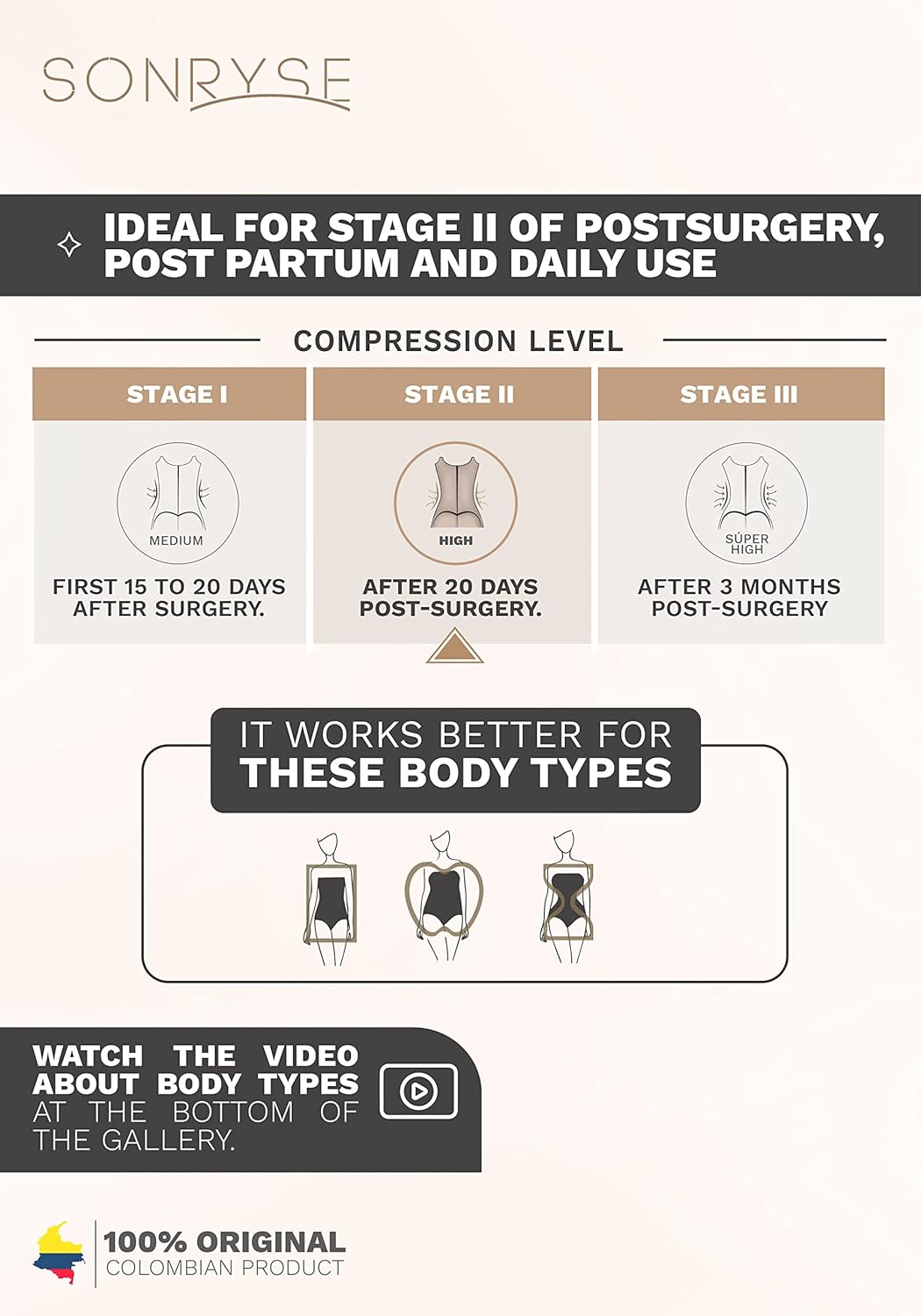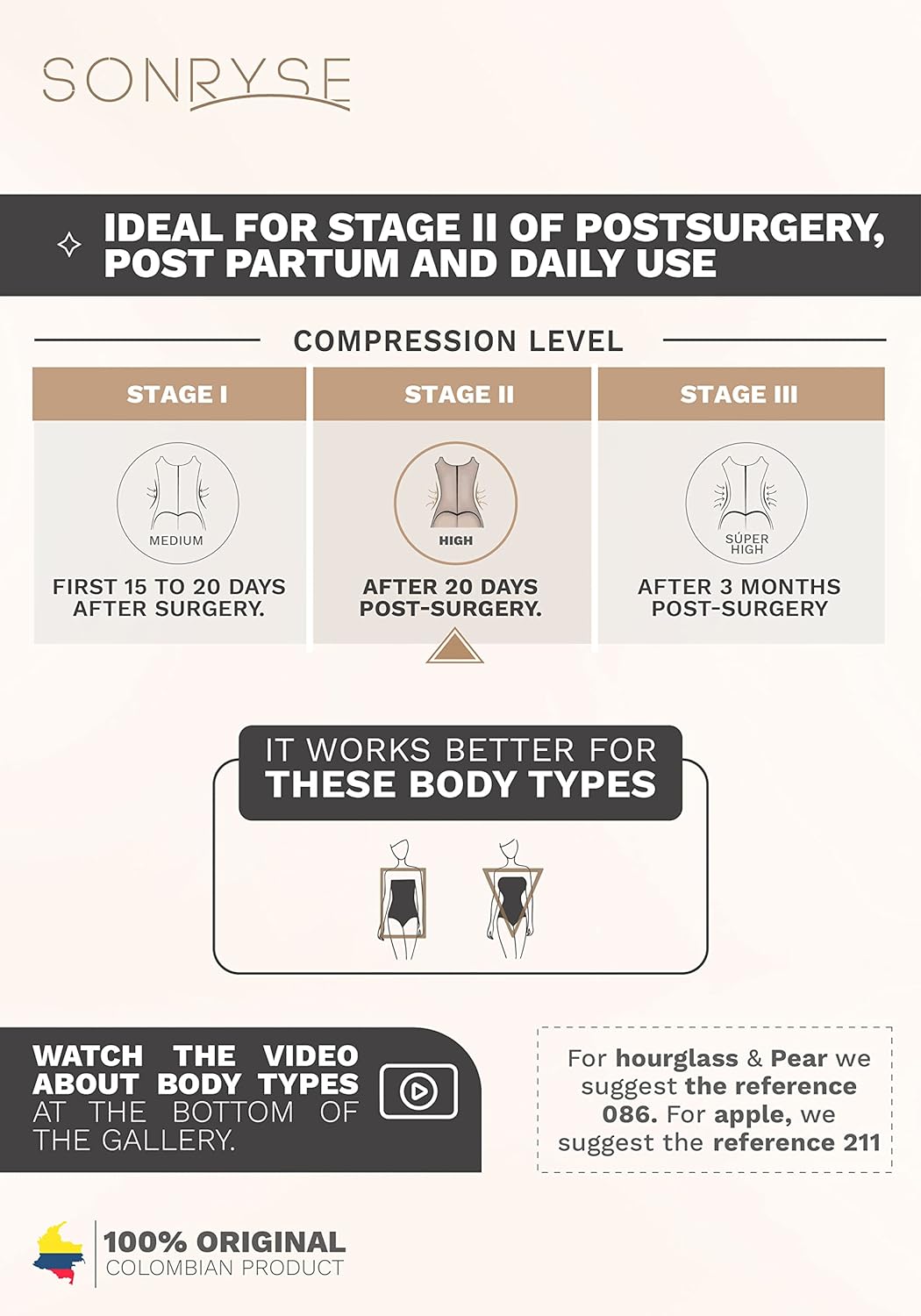 Sonryse 086 Fajas Colombianas Reductoras y Moldeadoras Stage 1 Post Surgery Tummy Tuck BBL Shapewear
