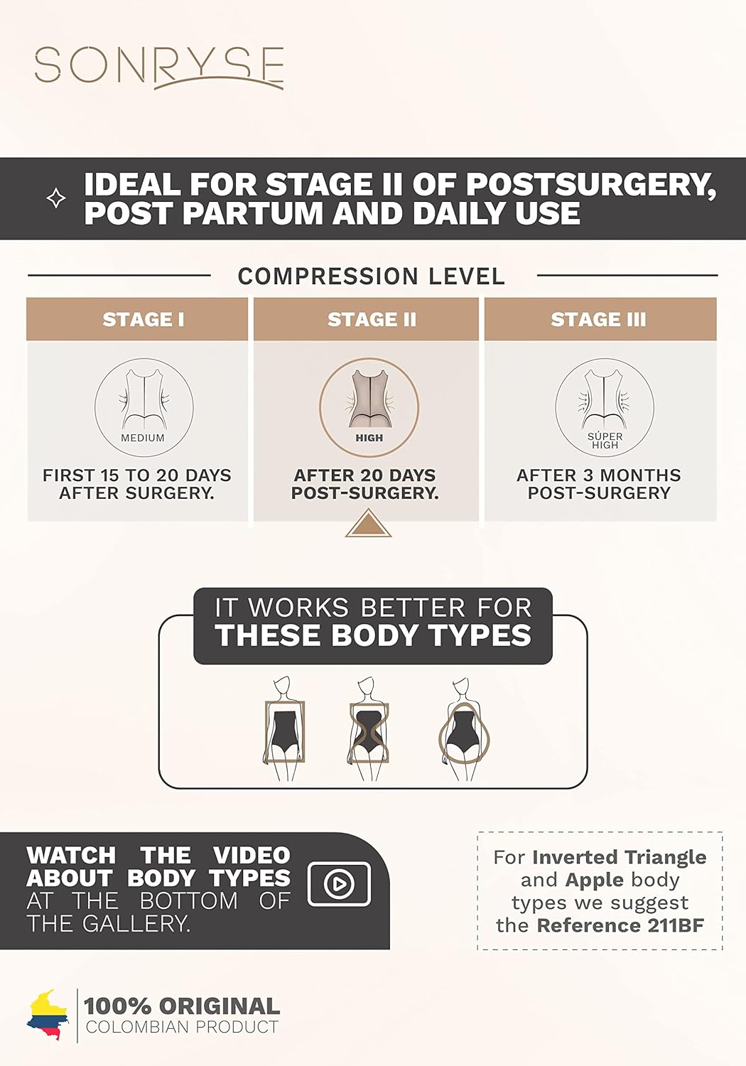 Sonryse 086 Fajas Colombianas Reductoras y Moldeadoras Stage 1 Post Surgery Tummy Tuck BBL Shapewear