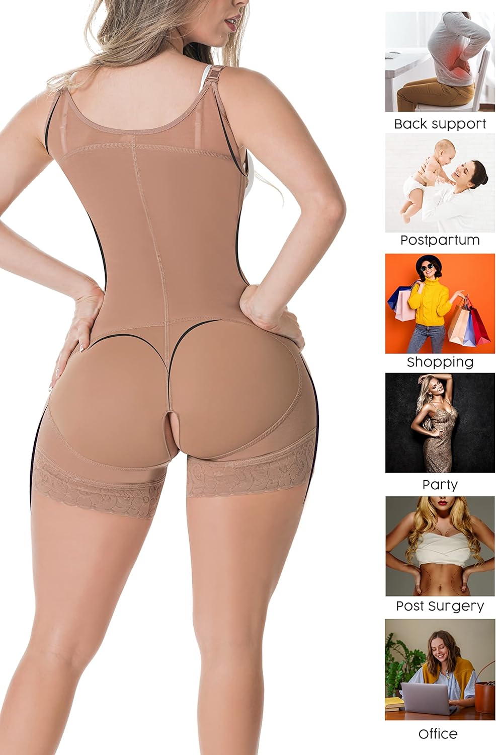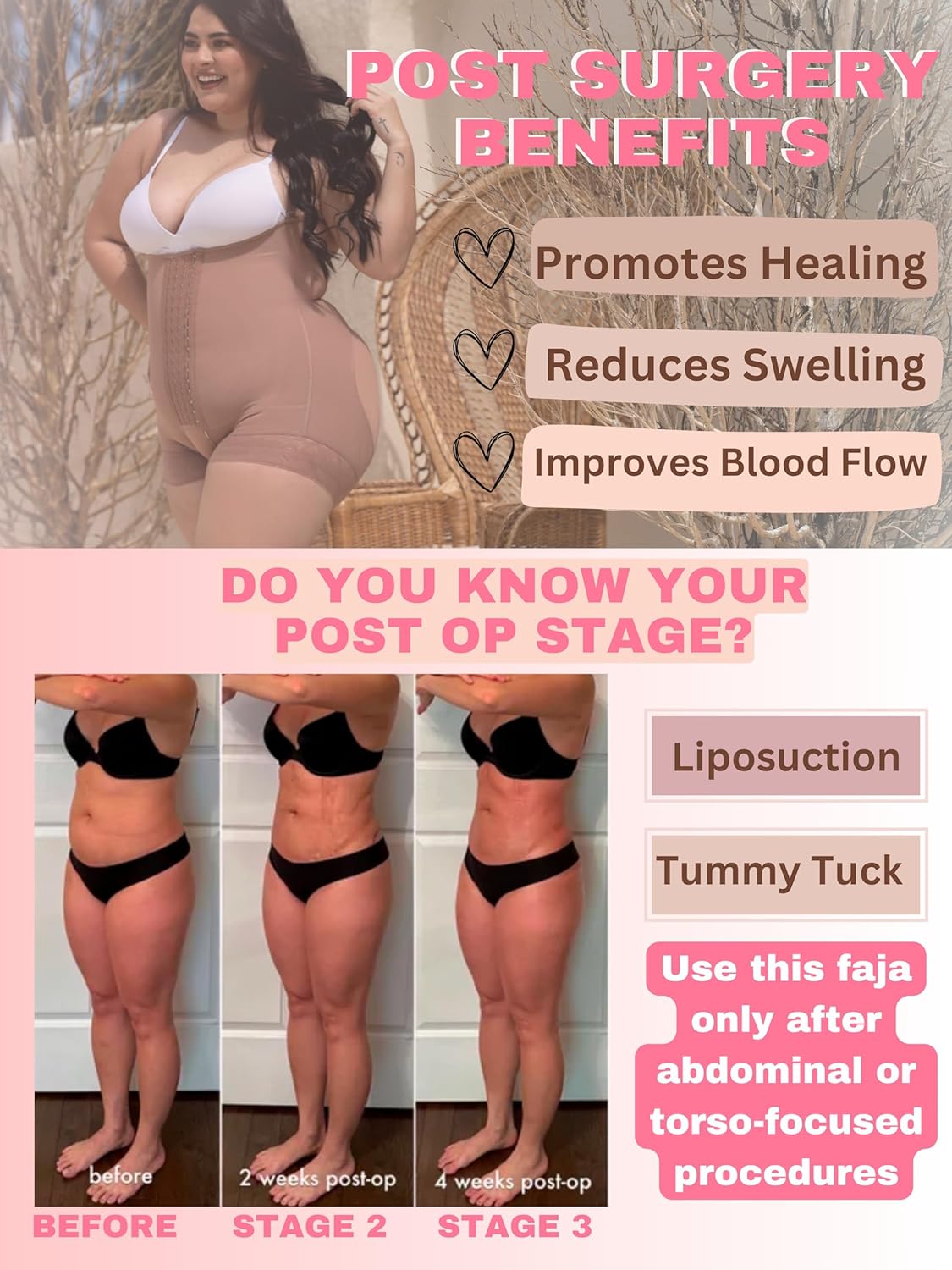 We created this postpartum colombian shapewear for you to recover your body faster. No matter how bad you feel, our body shaper for women will give you the joy you need by outlining your body while you recover. Moms always need to be and feel strong and the support this shapewear tummy control gives you is exactly what you need. Feel secure, protected and comfortable in the hands of our bbl faja garment after surgery. These postpartum girdles will be the best ally. Bring muscles to put on, reduce swelling, reduce fluid retention, encourage blood flow, improve posture and move freeOur girdles work as post-csection essentials, csection postpartum underwear, stage 2 girdle, shapewear for women tummy control or post c section girdle for women. Also great for first time users or to use for your daily needs. Medium compression, soft and stretchy lightweight Powernet, this compression shapewear after surgery will smooth your figure instantly. Feel cool, comfortable and supported during your recovery with this easy to use colombian postpartum girdle for women Our fajas para mujer feature thin and removable straps that won't dig in. An open bust shapewear with zipper closure and a row of inner hooks. When nature calls, its hook and eye crotch will be practical and make things easier. In addition, this compression garment offers back support and pain relief thanks to its medium back lift. Seamless panty style that will go almost unnoticed under your clothes.