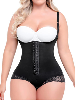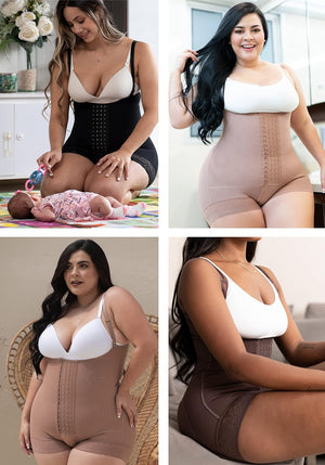 If you haven't decided what garment you are going to wear after delivering your baby, you have come to the right place. Our postpartum girdle is the perfect choice to make you feel comfy, safe and supported during this time. Due to its amazing design, details, and features, you can wear it as a stage 1 faja right after giving birth, stage 2 faja bbl some days later if you feel more comfortable like this, and even as a postpartum fajas for after birth. These c section postpartum essentials are made of Powernet, a type of material that is stretchable and durable. This will allow you to freely move when you perform your daily activities. Powernet is also very breathable so it means you will be fresh and rash-free. In order to help you achieve the results you want, our postpartum faja offers the exact amount of compression your body needs. When choosing the faja postpartum you will wear after giving birth, you should care about details. Our shapewear postpartum comes with thin removable straps for added comfort on your shoulders. This faja also has an open bust shapewear design ideal to pair it with your fave bra. With 2 levels of front hooks, you will have an ideal fit. Our postpartum underwear for women features hooks in the gusset for less hassle when visiting the bathroom, mid-back coverage, and a panty design.