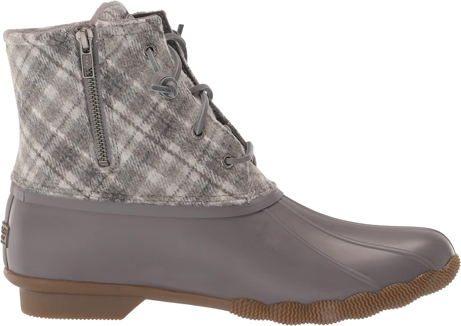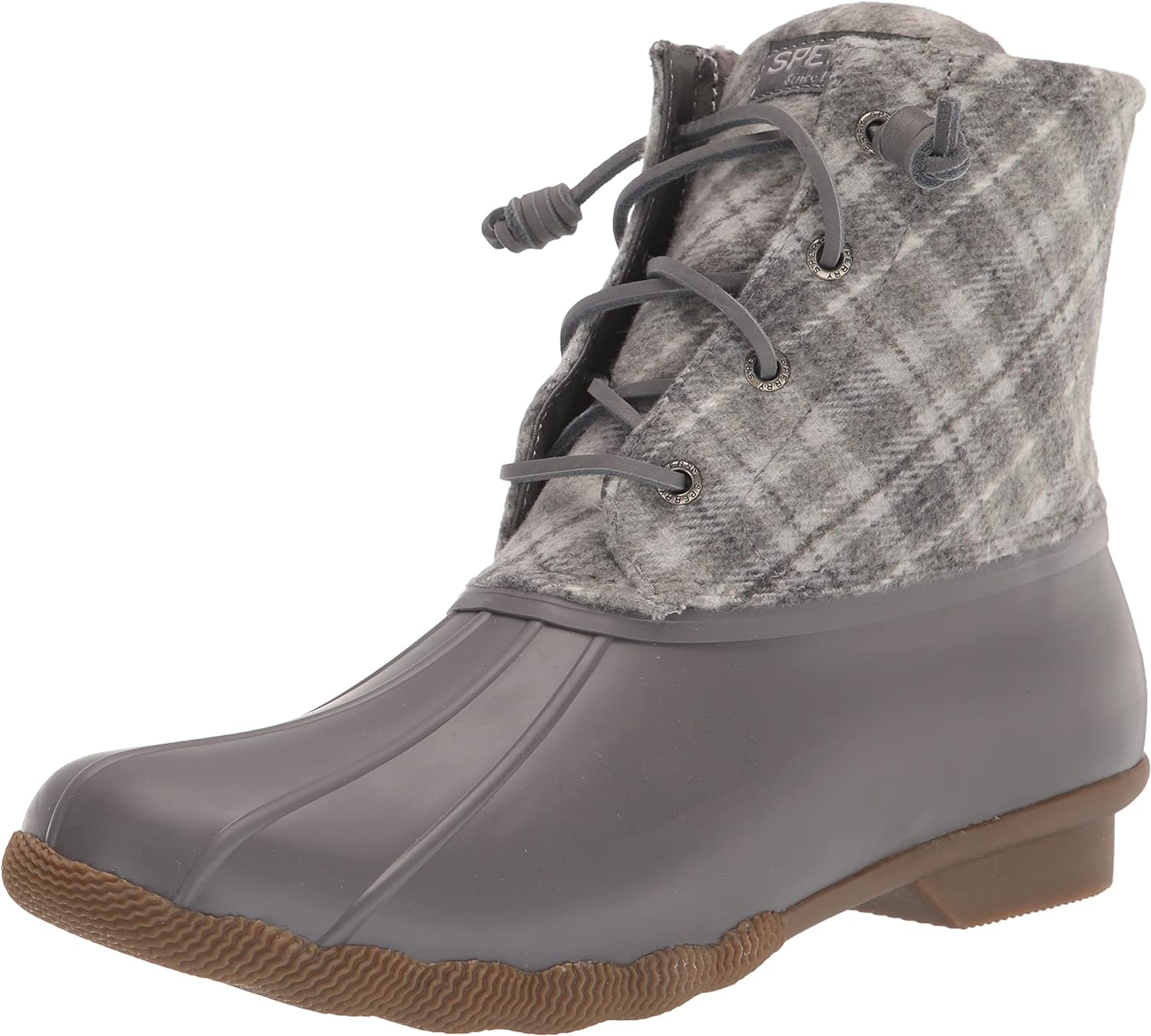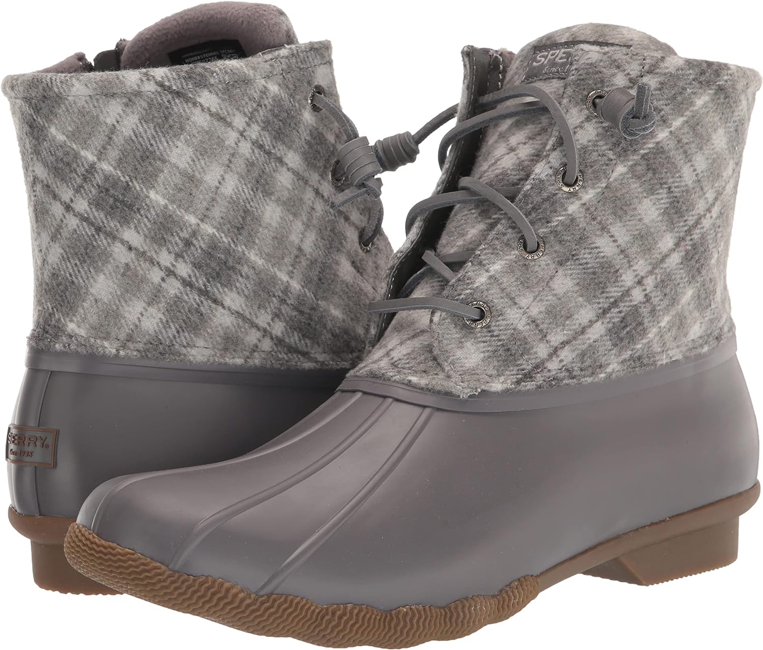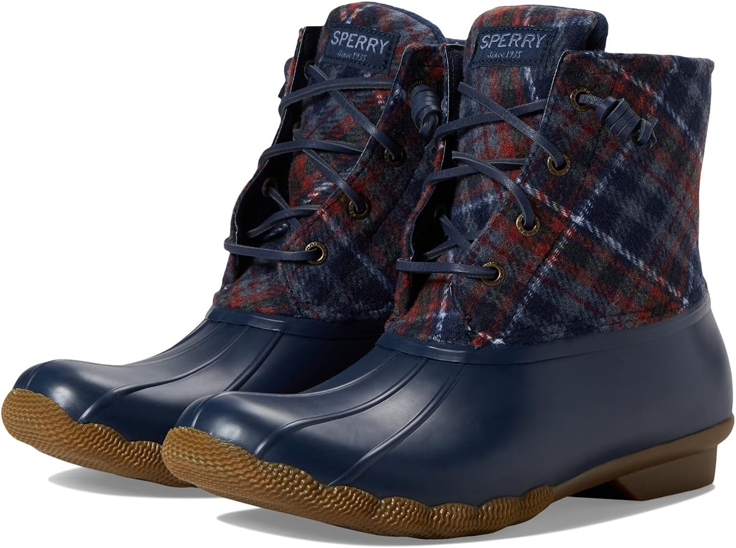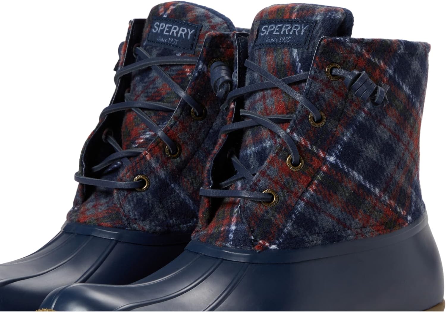 Saltwater Plaid Wool Water’s no match for our best-selling Saltwater Duck Boot. This all-season style features a plaid, wool shaft, barrel laces, and the signature rubber "duck" shell. Plus, a rubber outsole with molded Wave-Siping™ technology enhances traction.