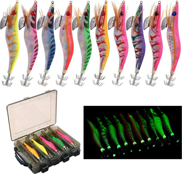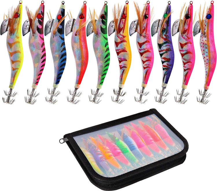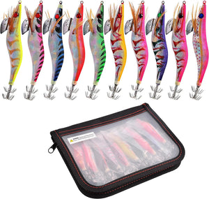 - 🎣【Fishing Tackle Box】10pcs squid jig hard fishing lures come with zipper bag or box, makes it easy to store and carry. If you are a fishing enthusiast, take this fishing lure and it will increase your catches and bring you much fun.