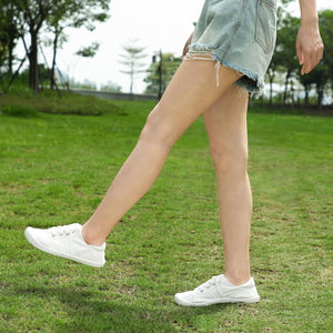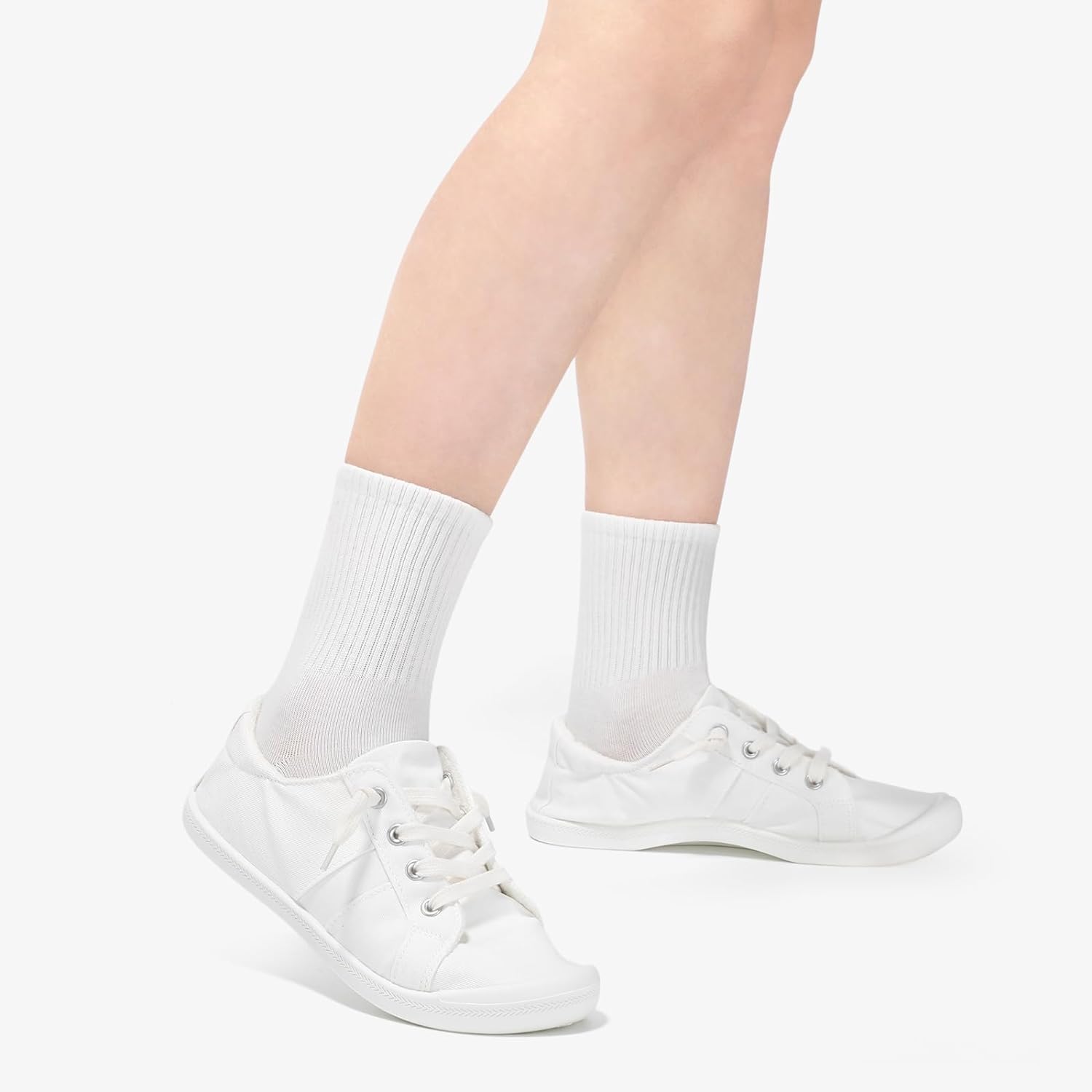 STQ Women White Sneakers for Women Slip On Tennis Shoes with Arch Support Lightweight Casual Canvas Sneakers White Size 7.5, White, 7.5