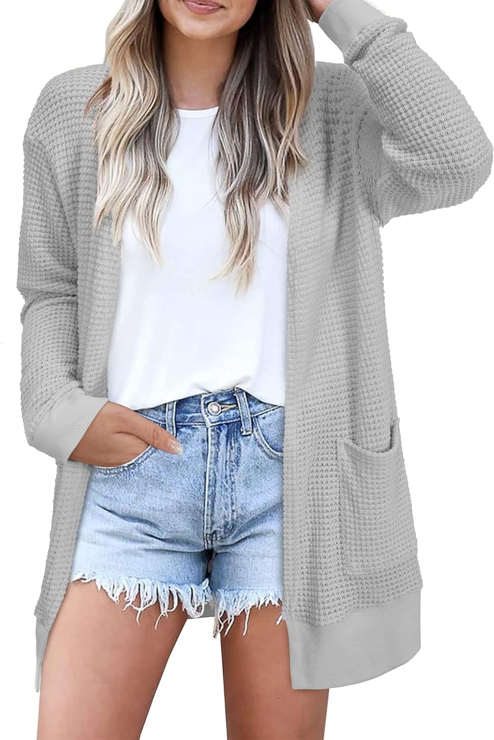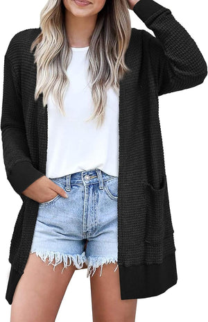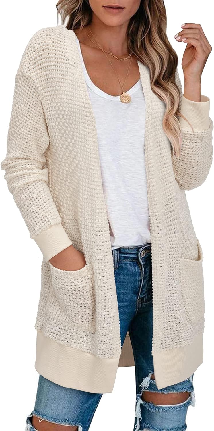 STYLEWORD Women's 2023 Fall Fashion Cardigan Sweaters Lightweight Open Front Knit Casual Long Cardigans Outfits with Pockets