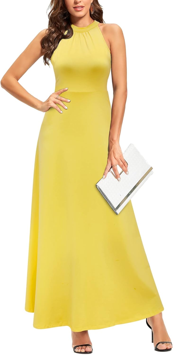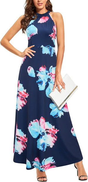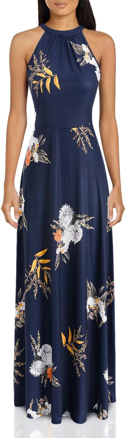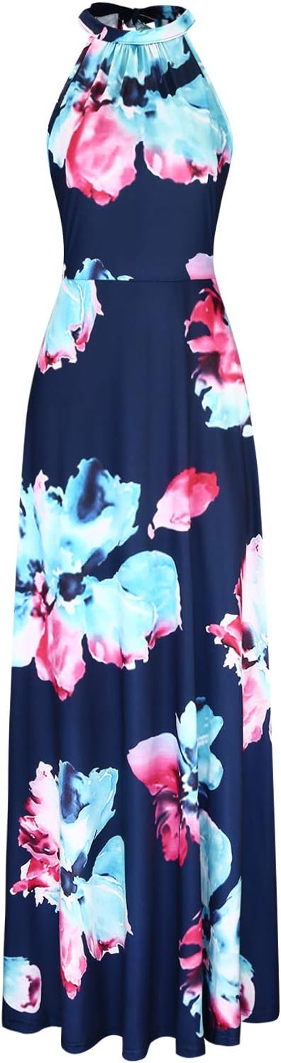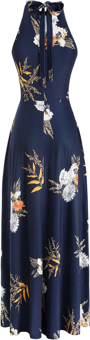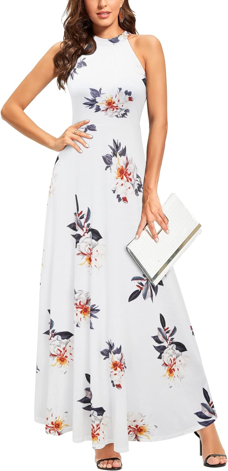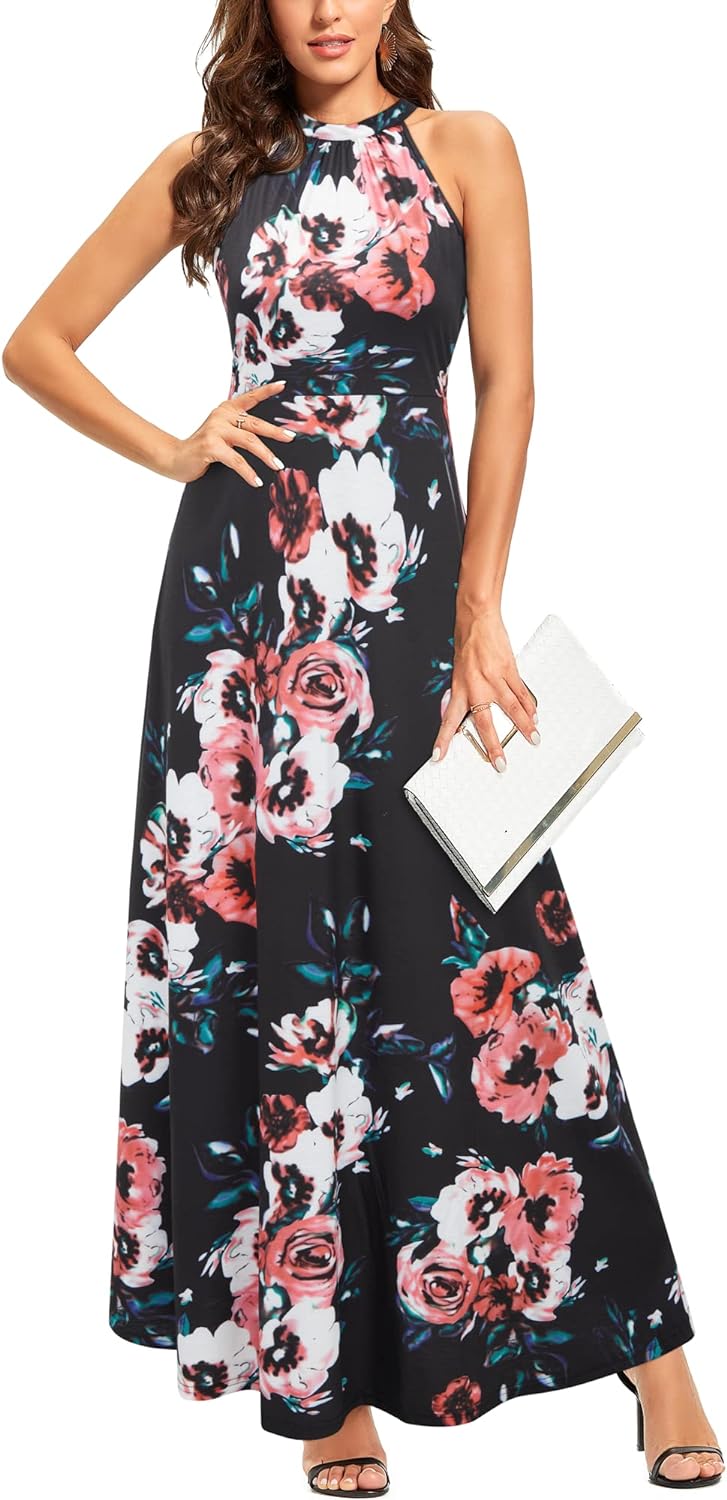 STYLEWORD Women's 2023 Summer Maxi Hawaiian Beach Halter Neck Formal Long Fall Wedding Guest Dresses