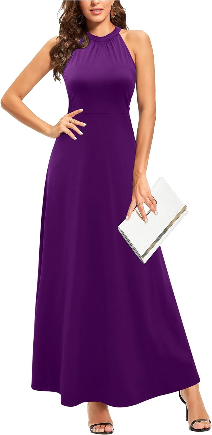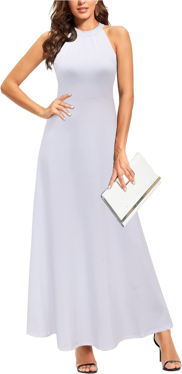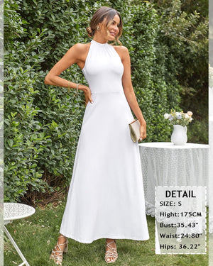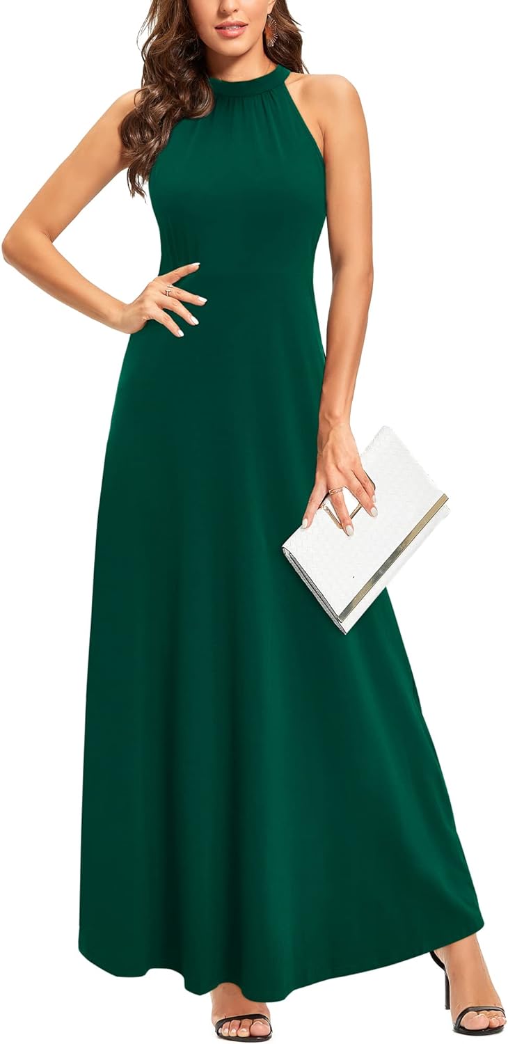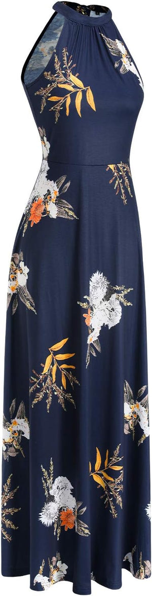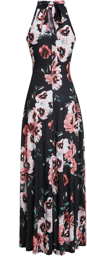 STYLEWORD Women's 2023 Summer Maxi Hawaiian Beach Halter Neck Formal Long Fall Wedding Guest Dresses