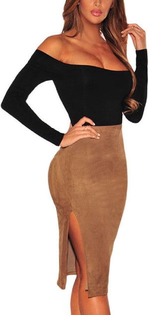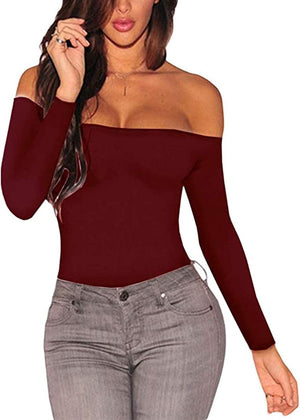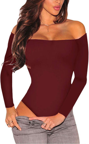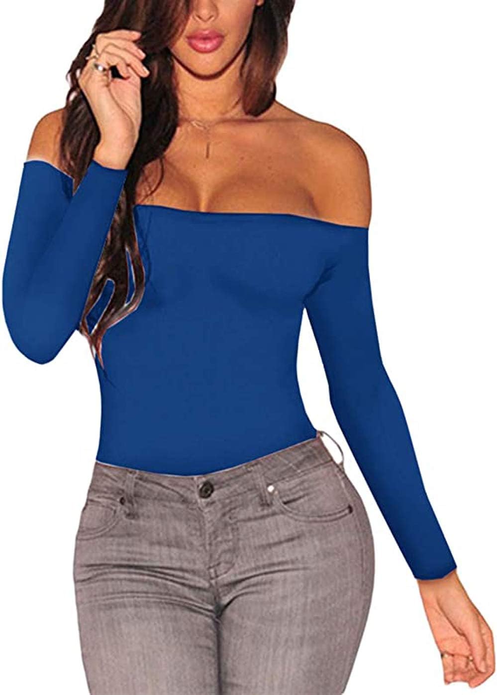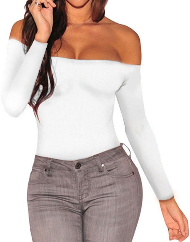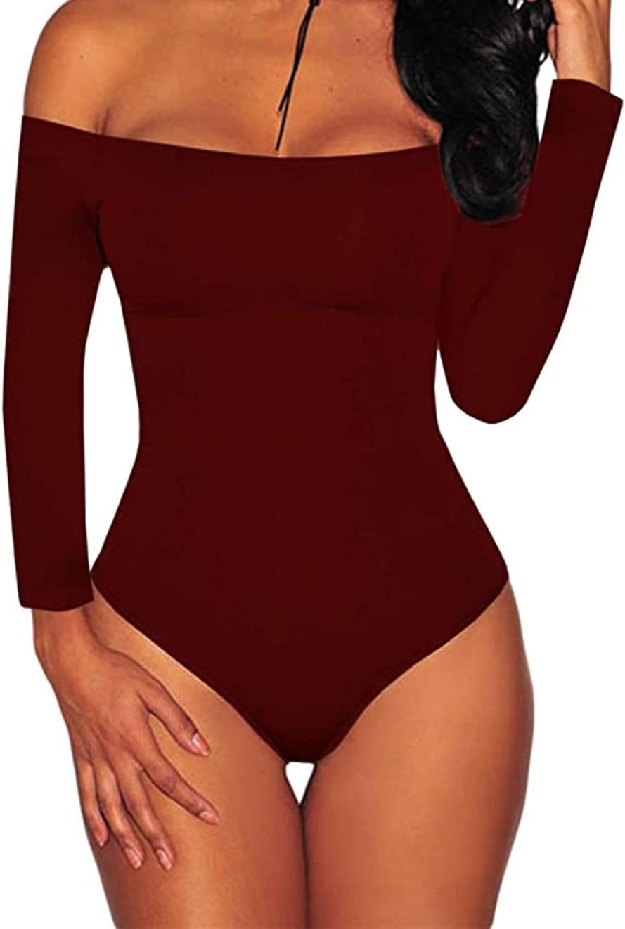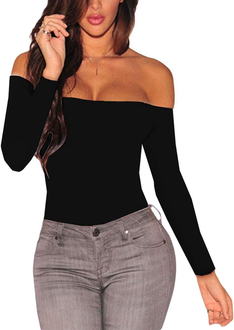 SUBWELL Women's Sexy Off Shoulder Long Sleeve Bodycon Bodysuit Leotard Jumpsuit Tops