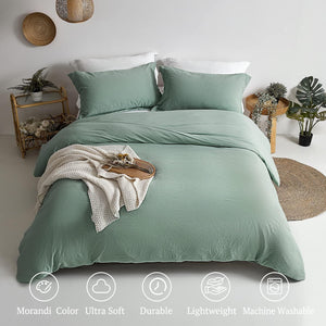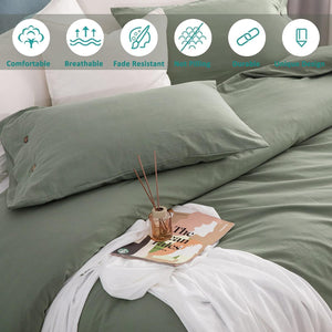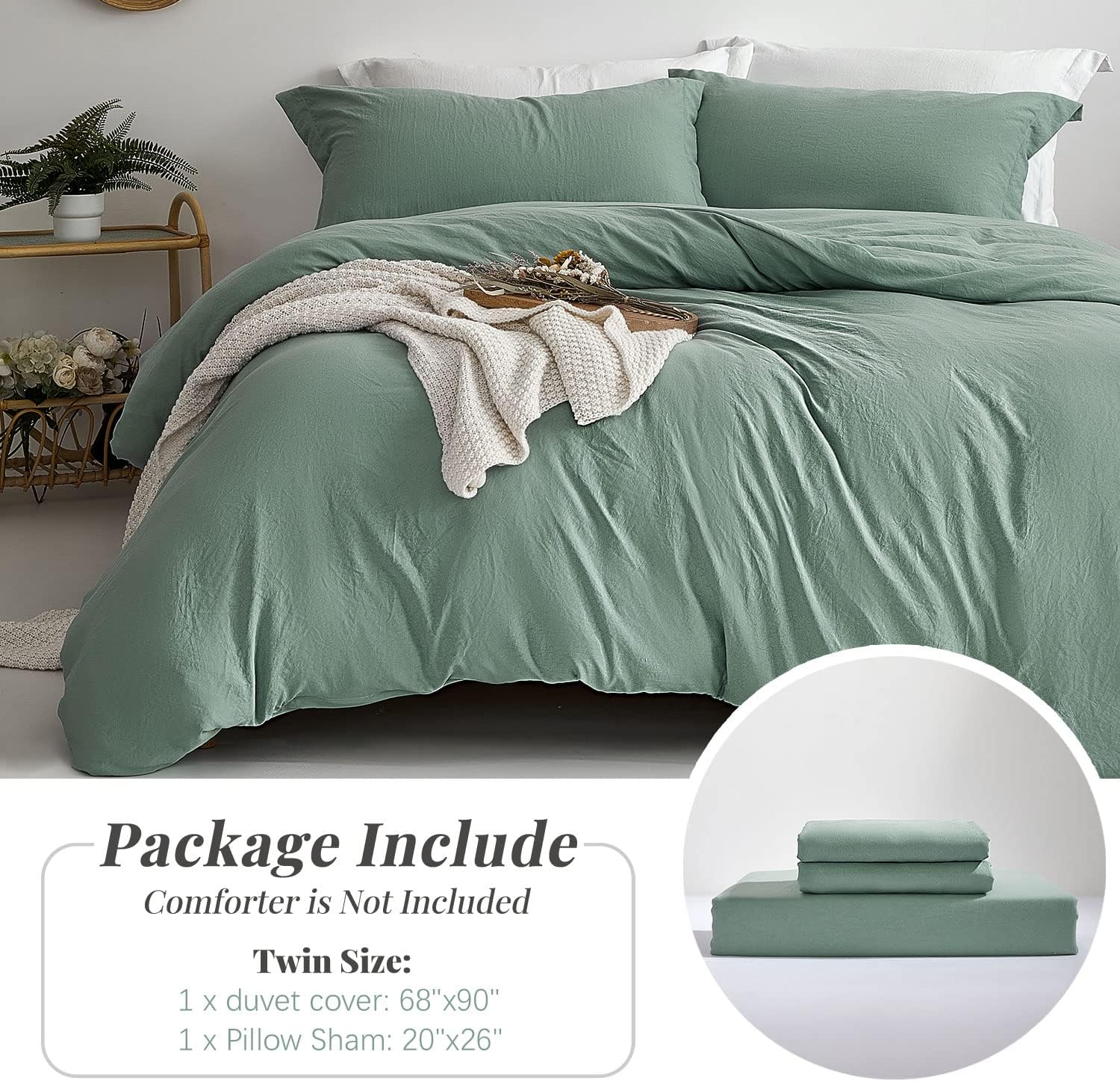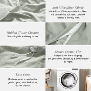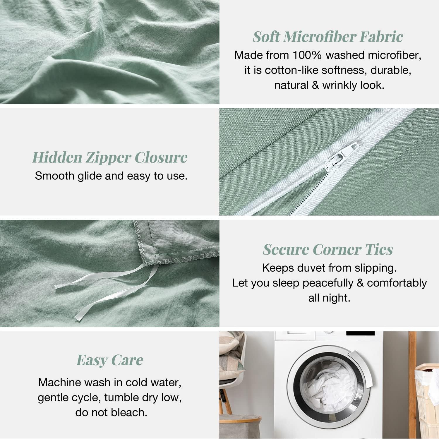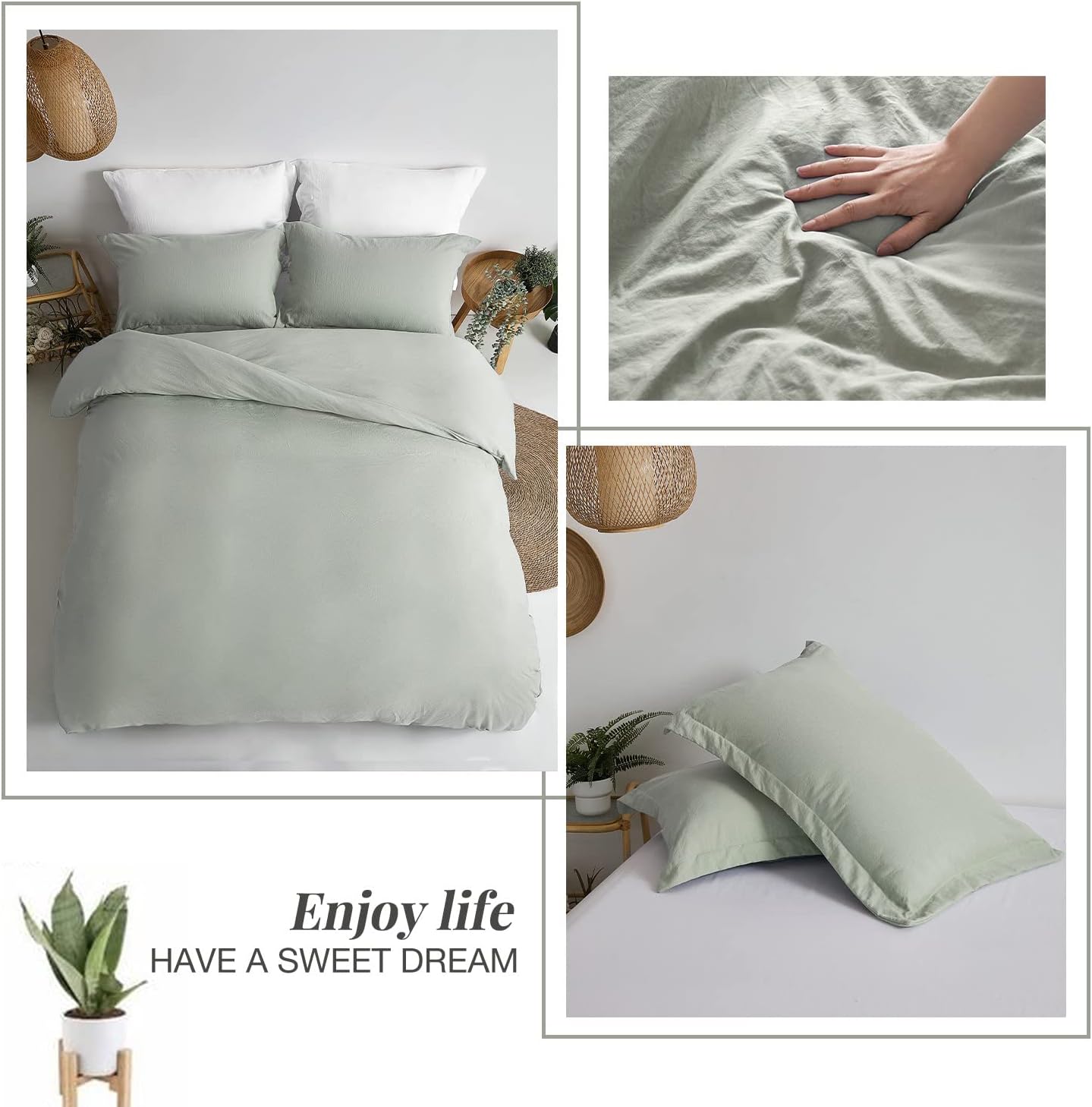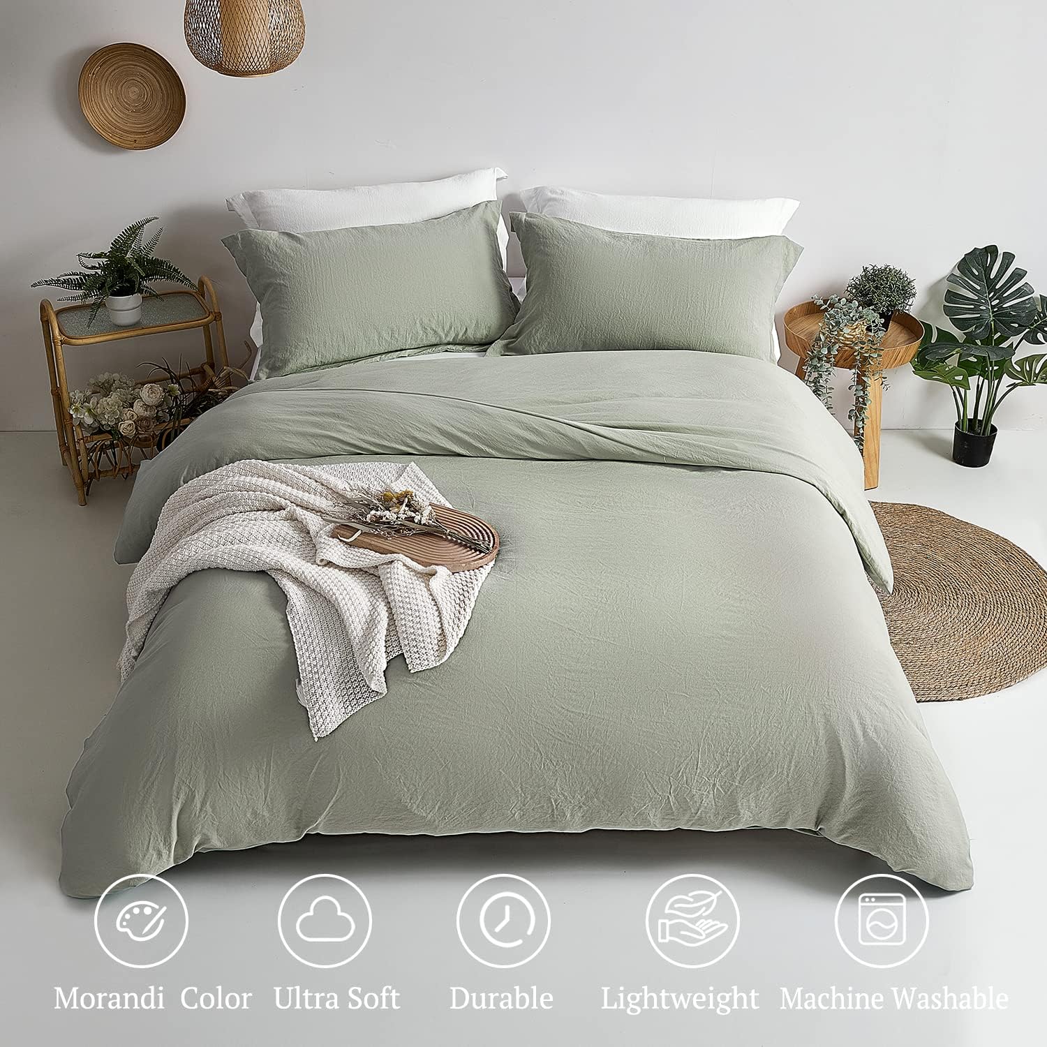 Super Soft Duvet Cover - 100% Washed Microfiber October Mist Sage Comforter Cover Set Twin Size 3 Pieces Queen Size Bedding Set with Zipper Closure & Corner Ties