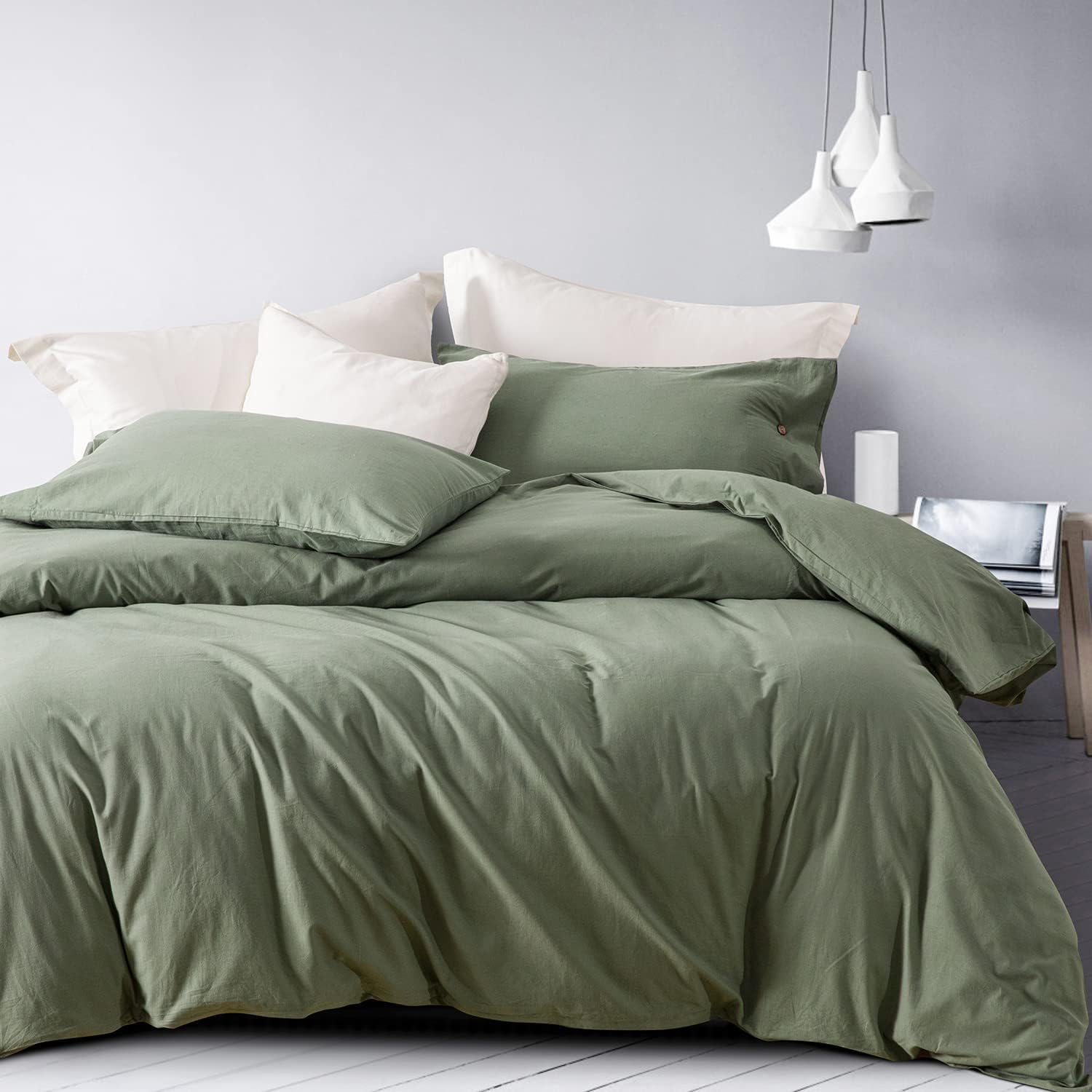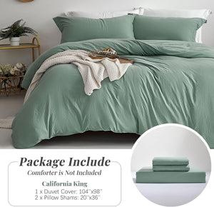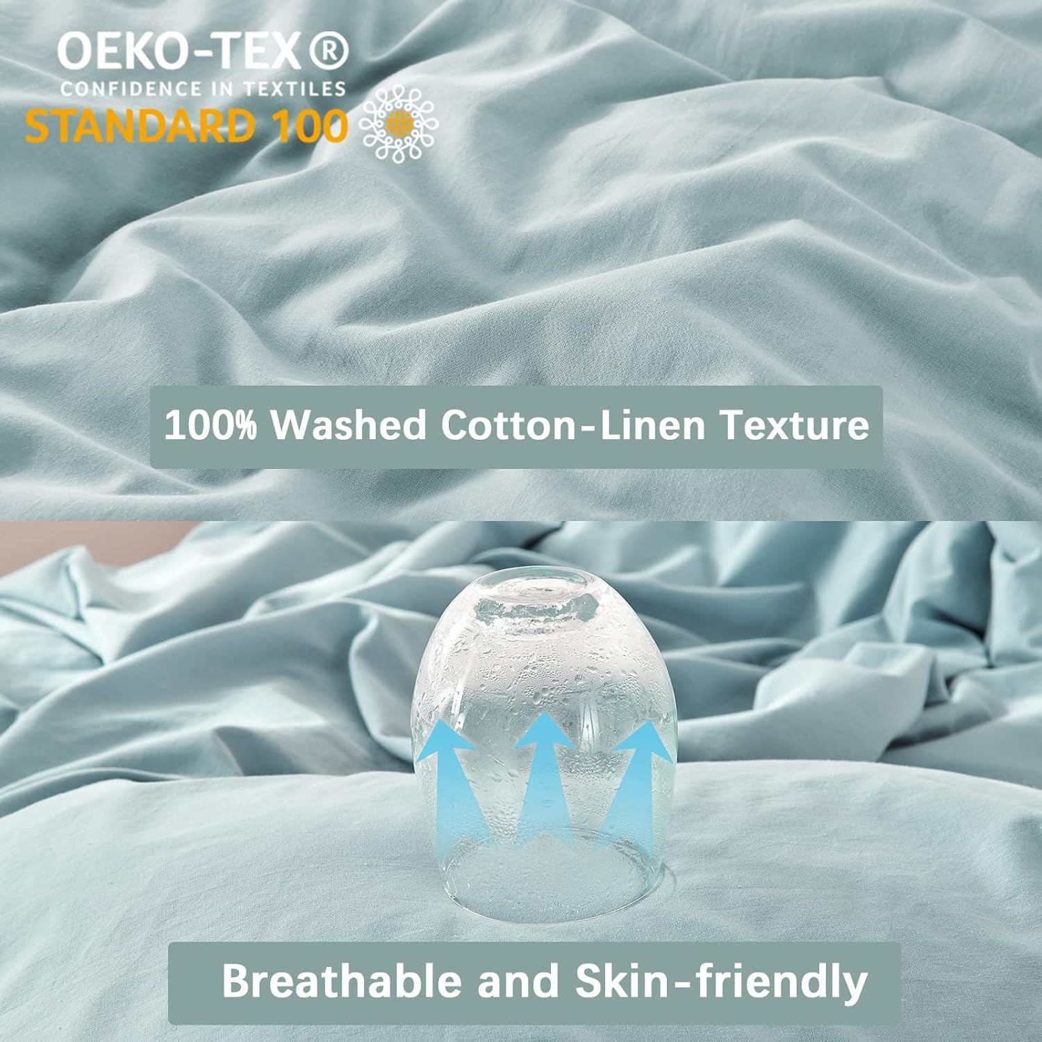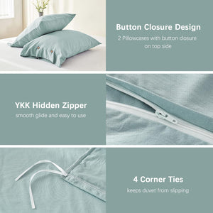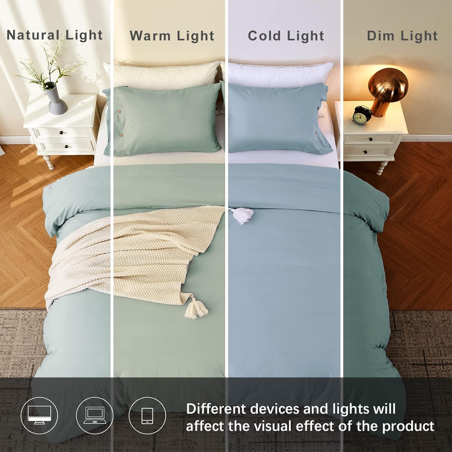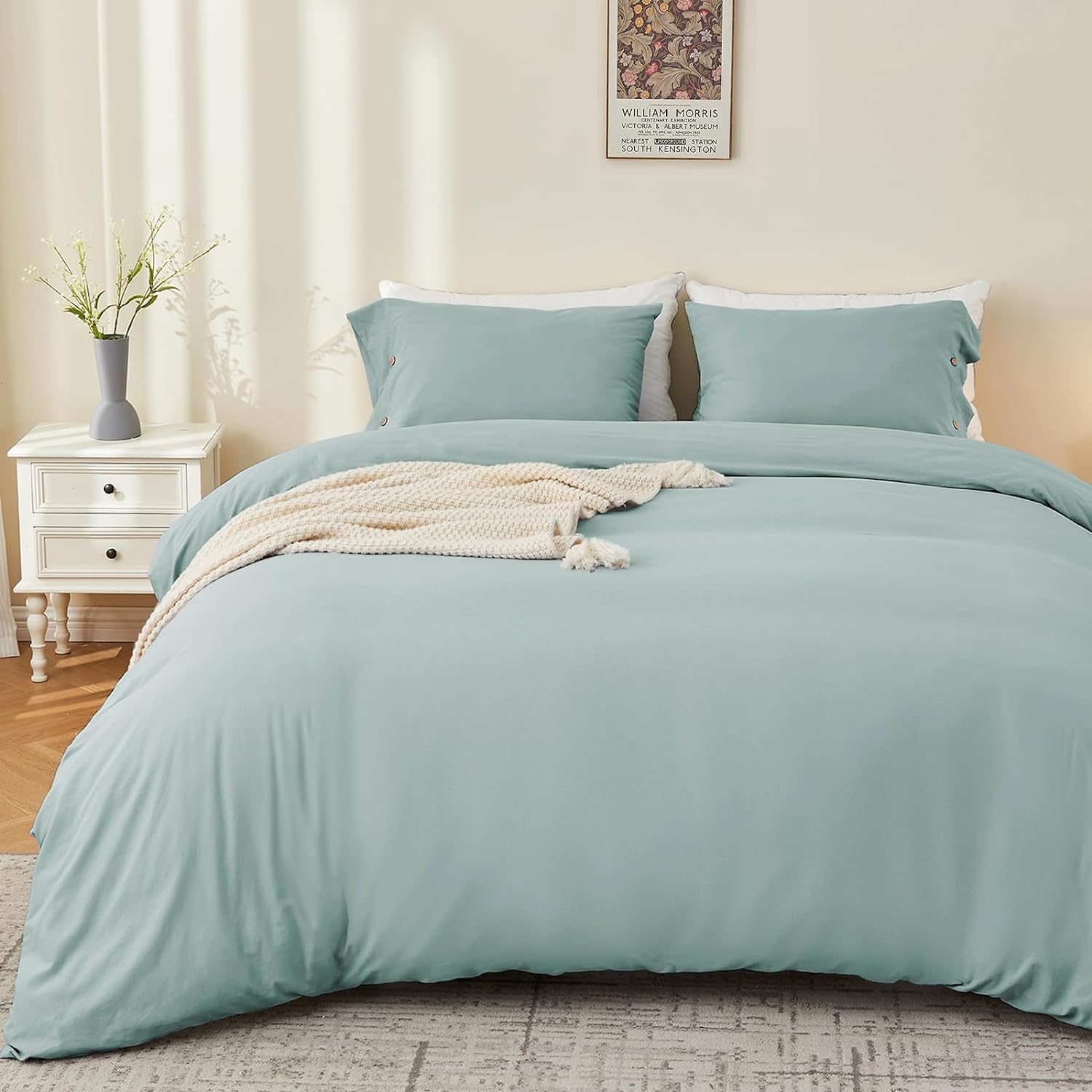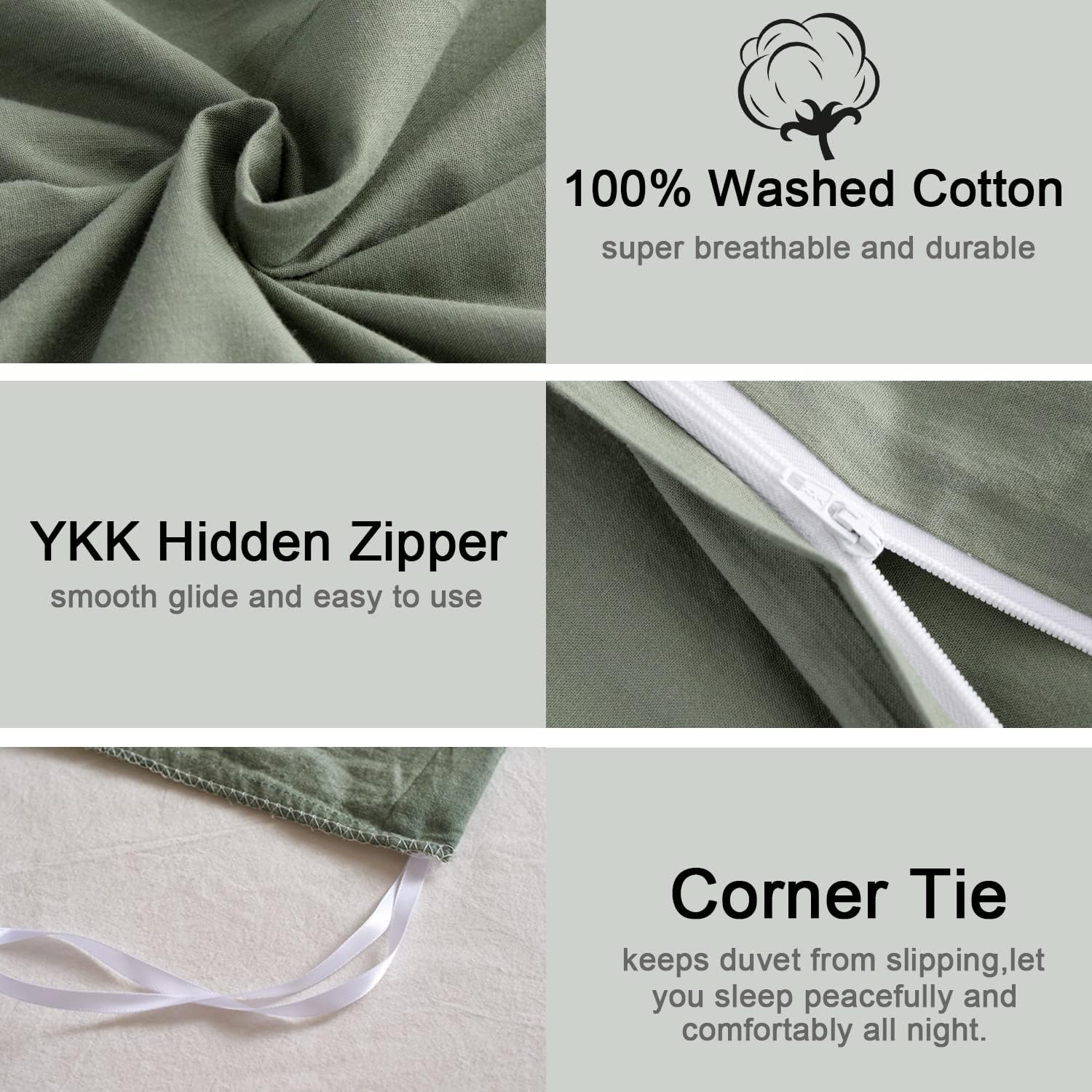 Super Soft Duvet Cover - 100% Washed Microfiber October Mist Sage Comforter Cover Set Twin Size 3 Pieces Queen Size Bedding Set with Zipper Closure & Corner Ties