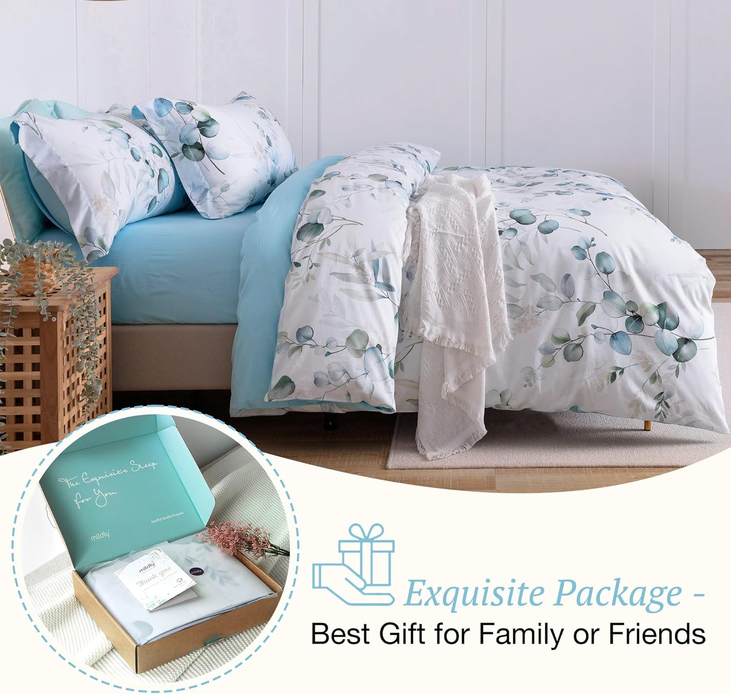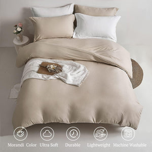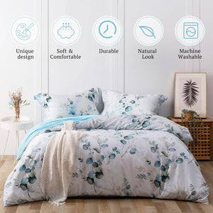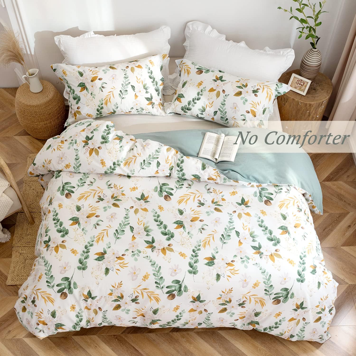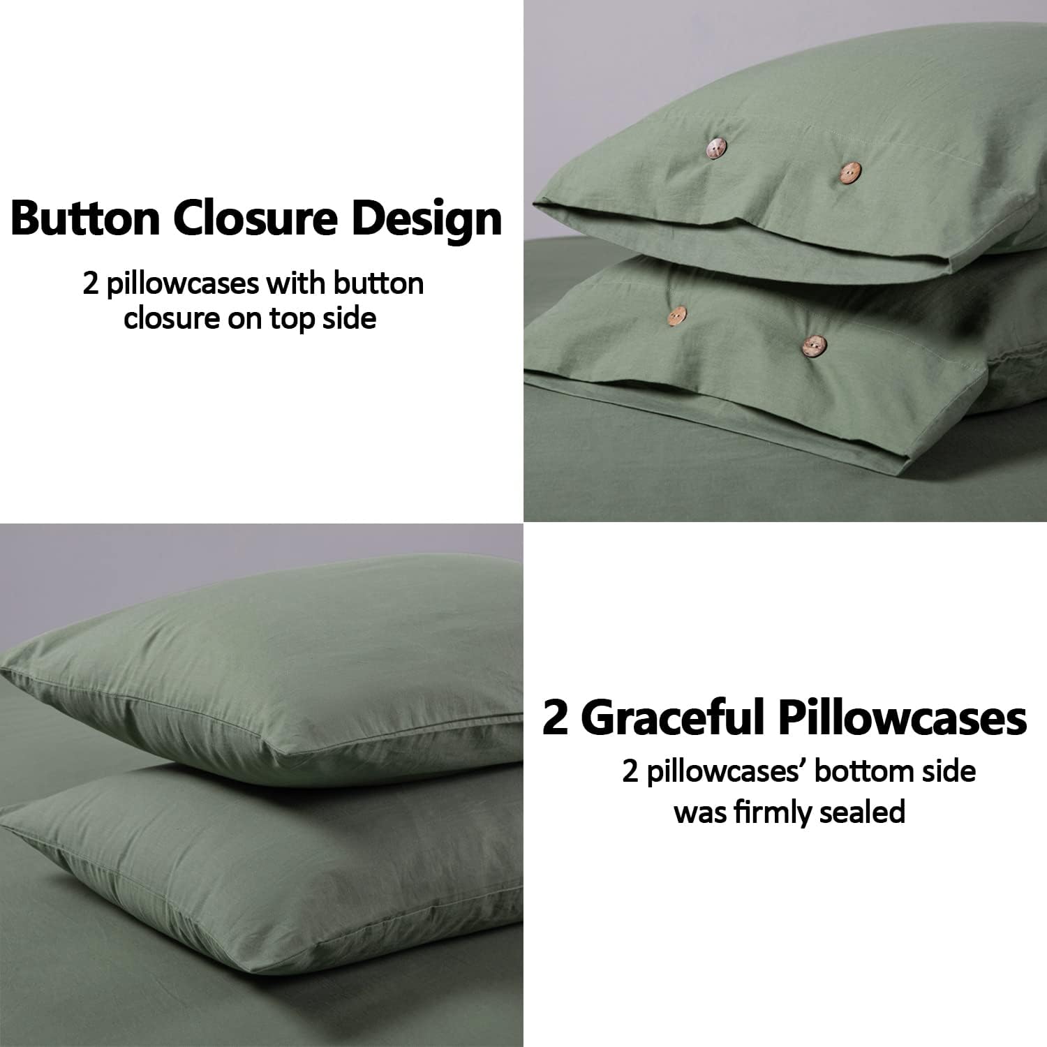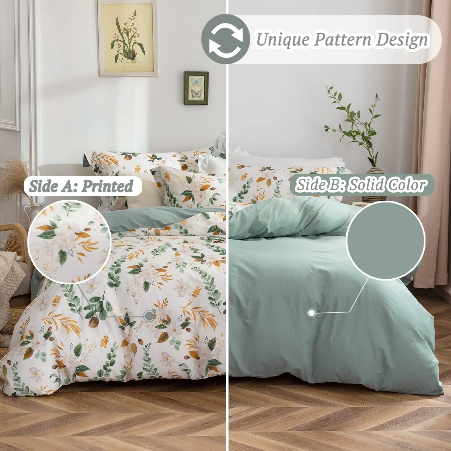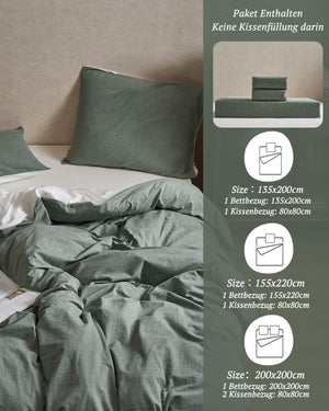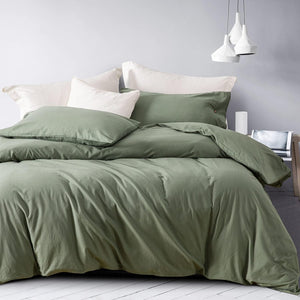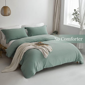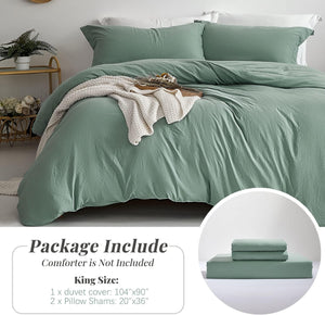 Super Soft Duvet Cover - 100% Washed Microfiber October Mist Sage Comforter Cover Set Twin Size 3 Pieces Queen Size Bedding Set with Zipper Closure & Corner Ties