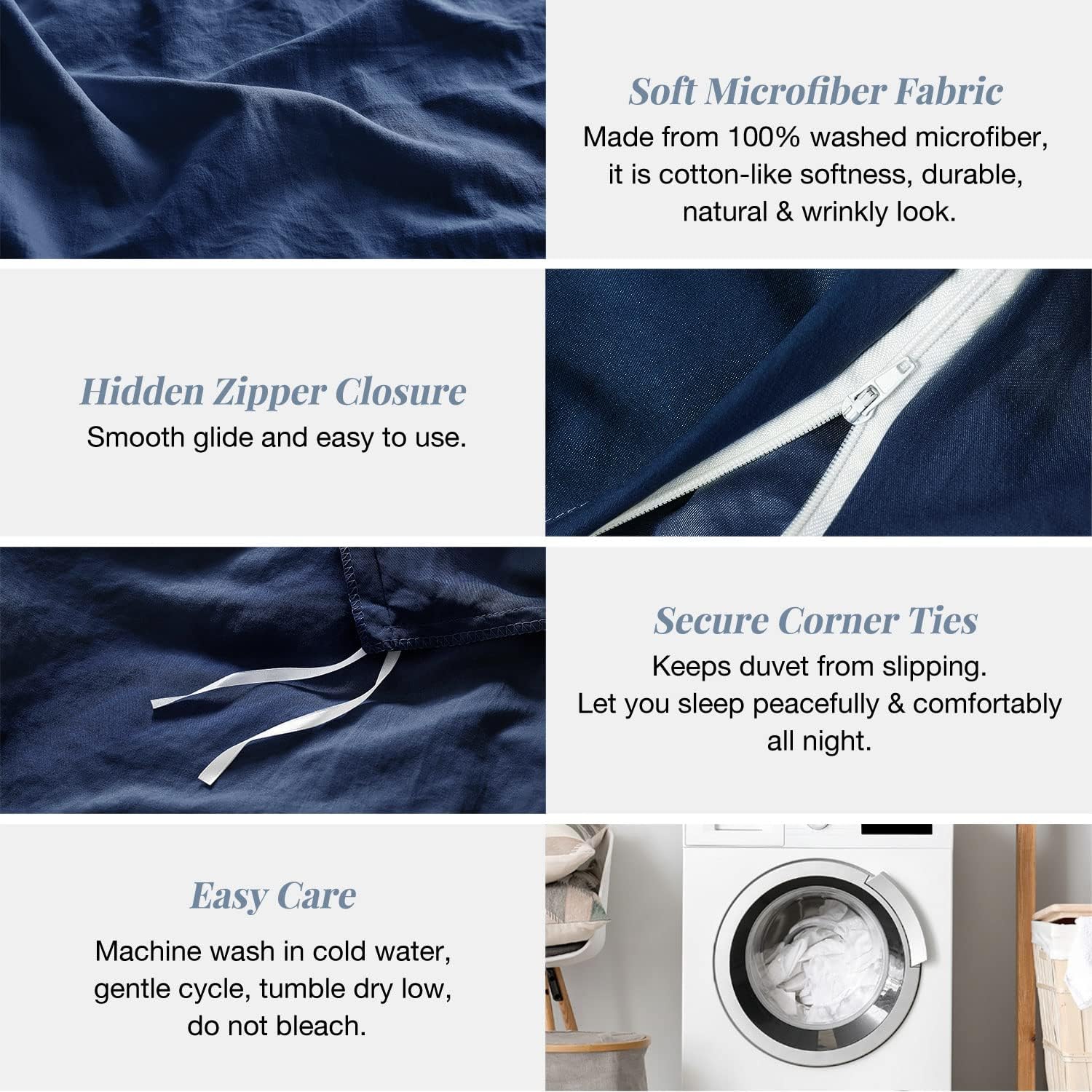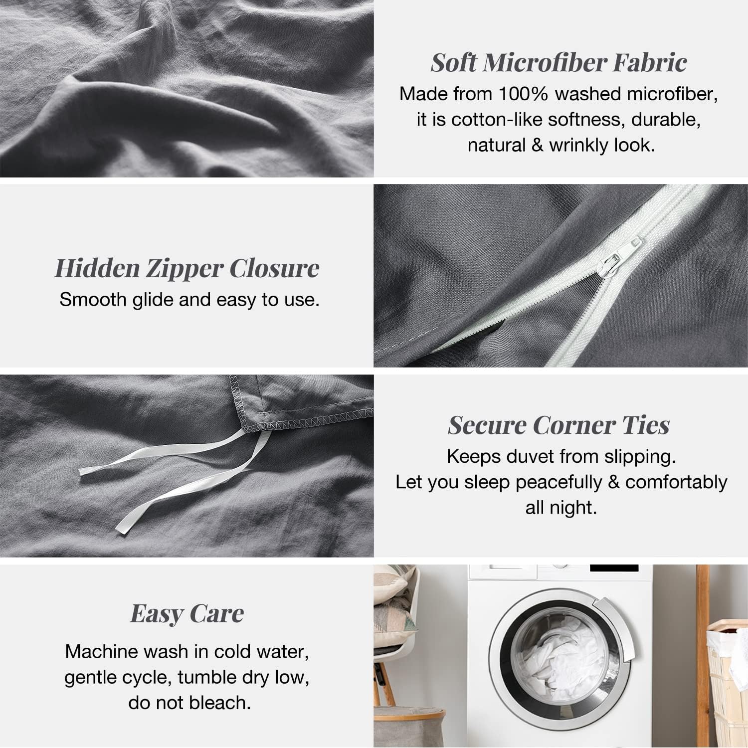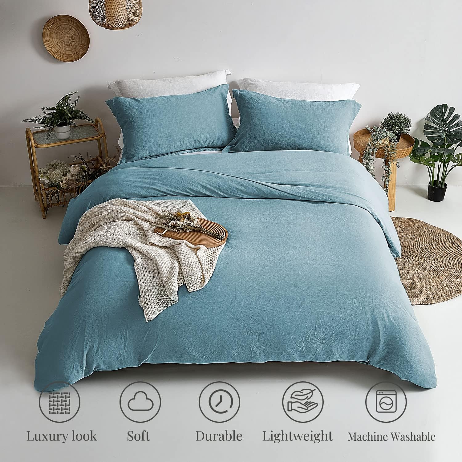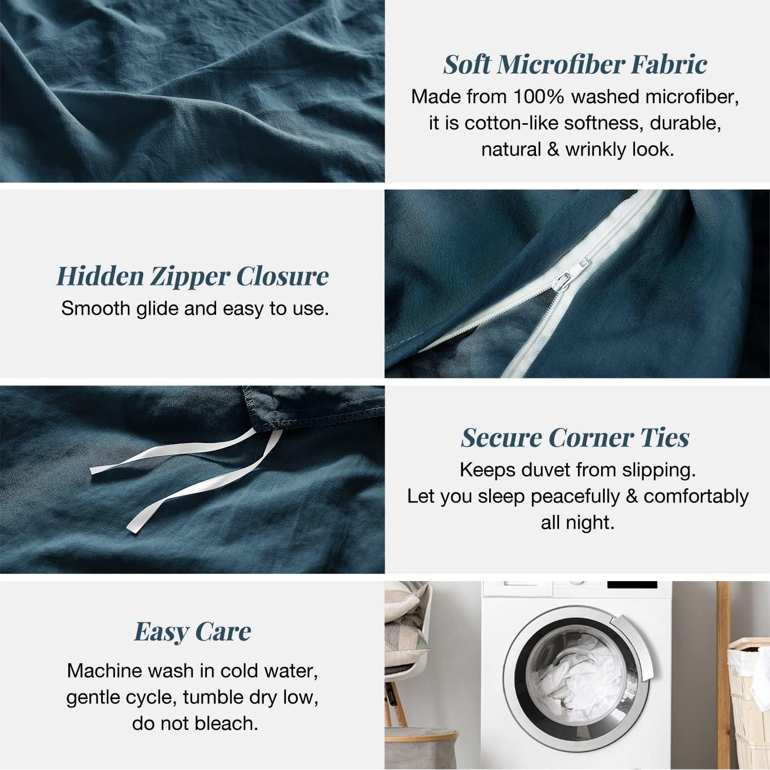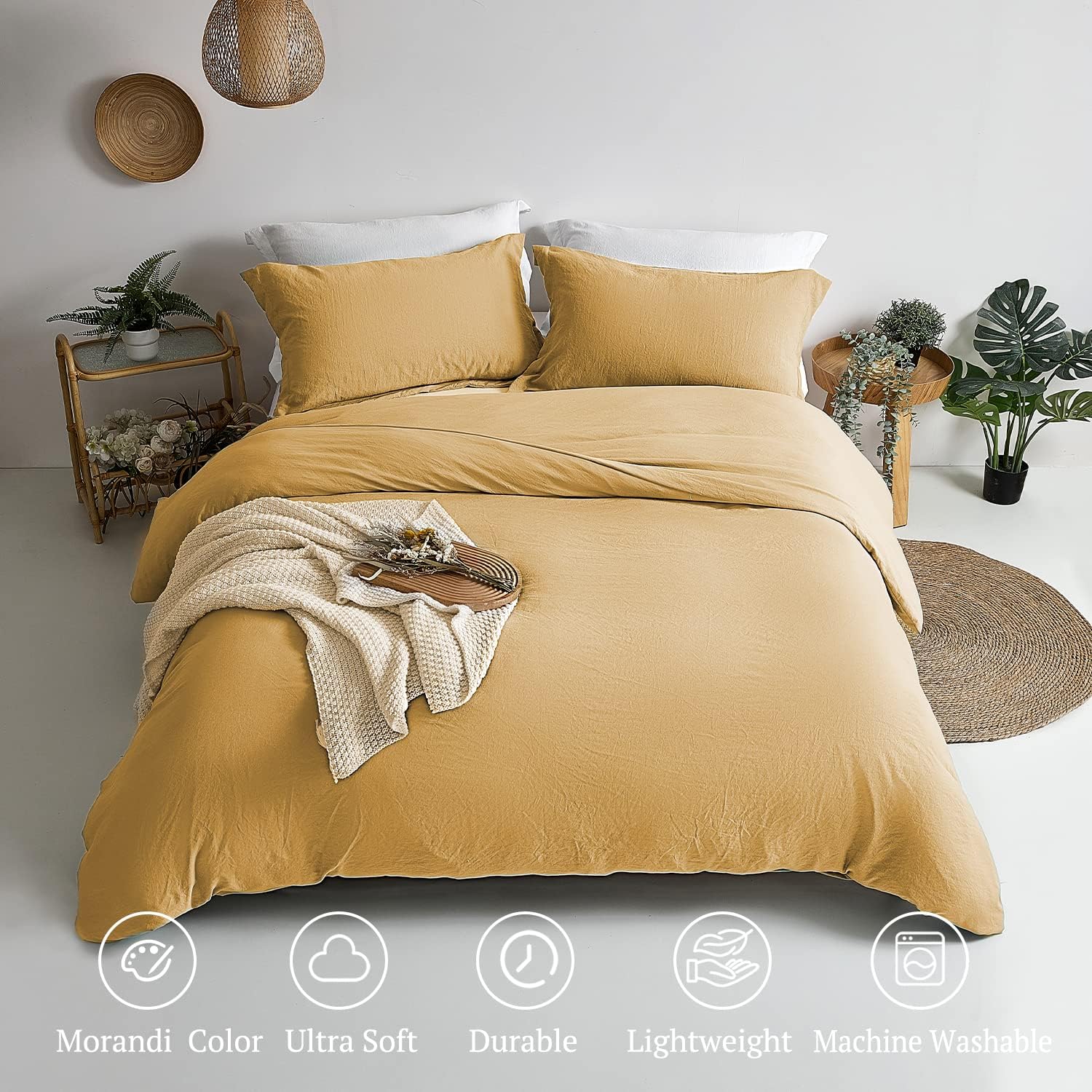 - ⭐【ULTRA SOFT & COMFORTABLE】After being specially wash treated, MILDLY washed duvet cover set is softer and more comfortable than almost fabric. And the wrinkled texture with trendy color offers an elegant, simple and stylish look for your bedroom. These duvet covers are available in a wide range of vibrant colors to match perfectly with any bedroom decor.