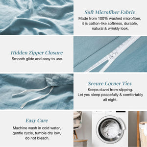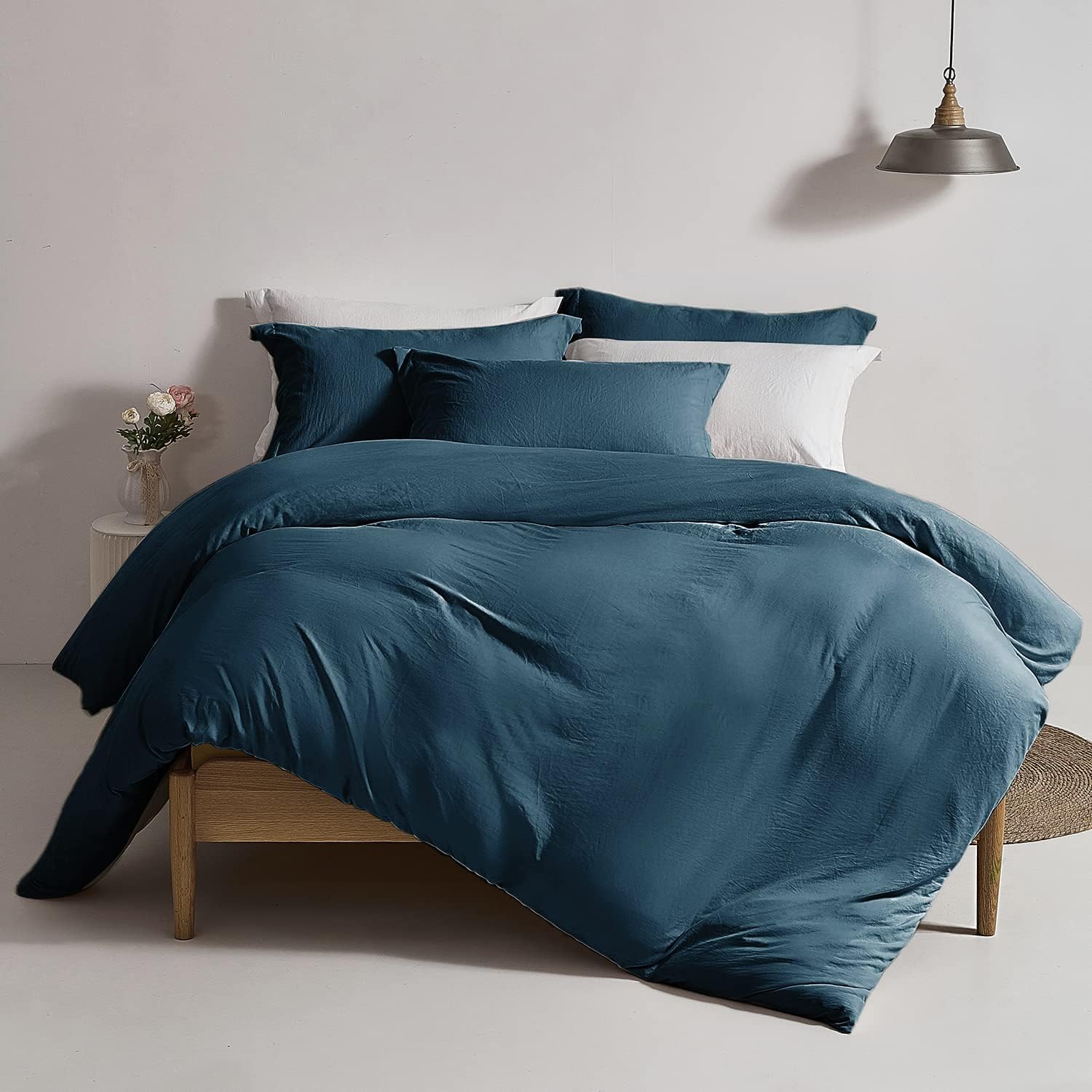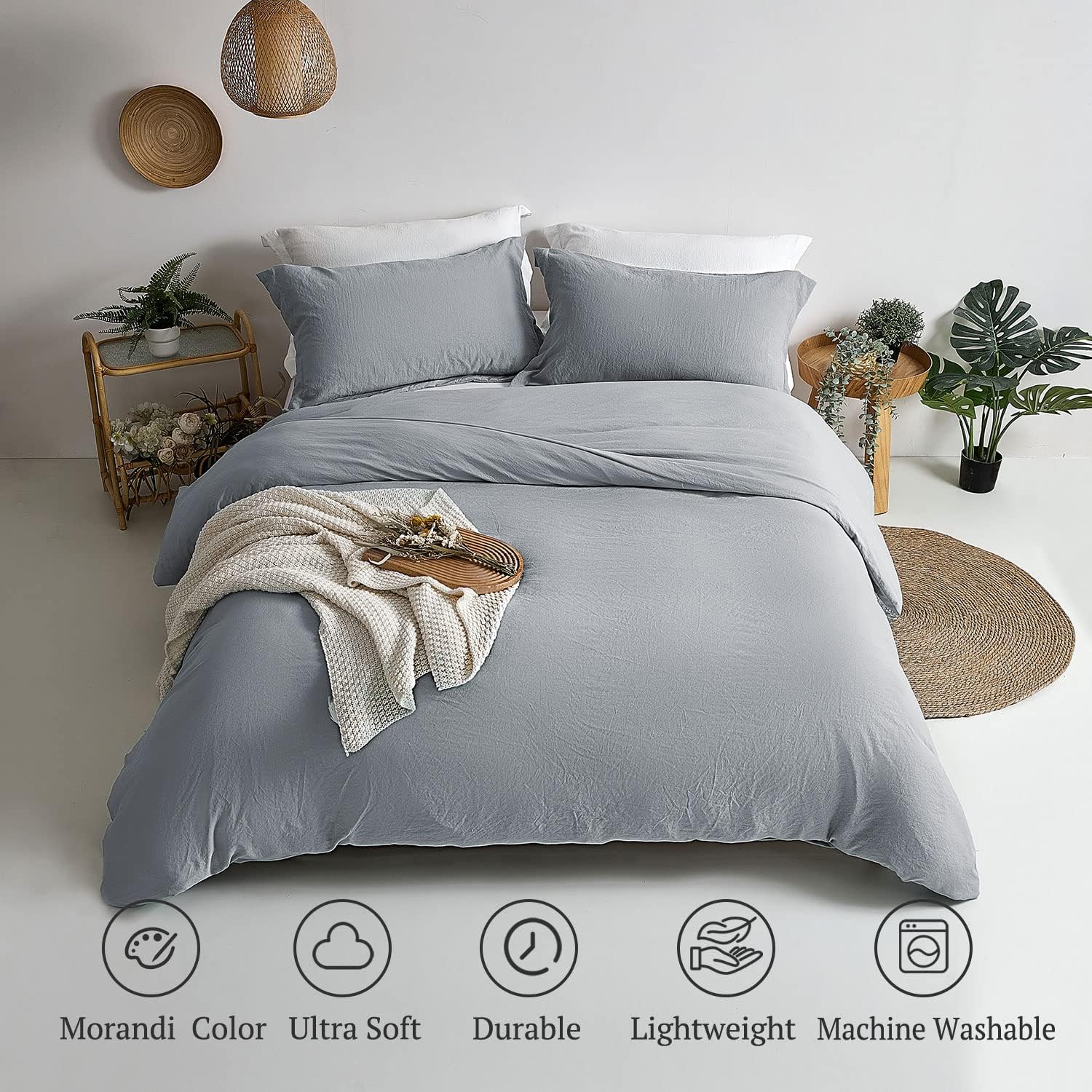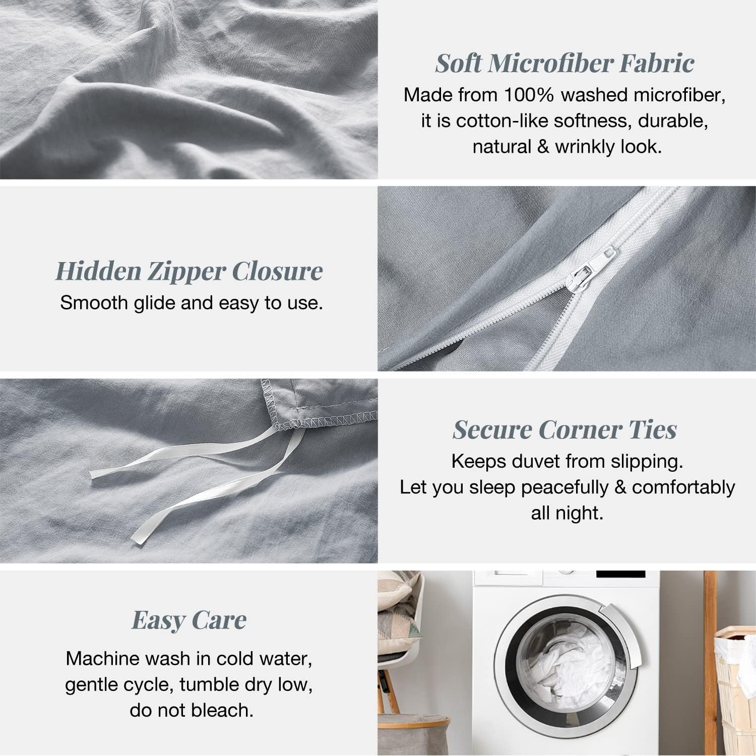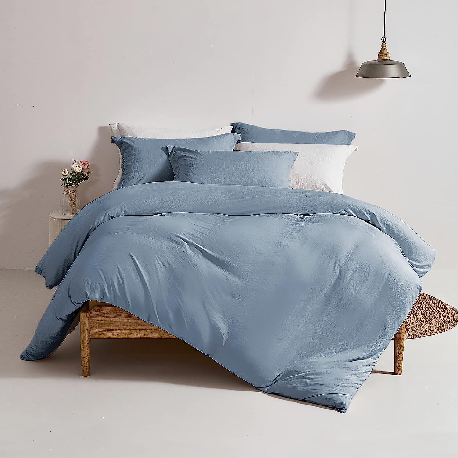 - ⭐【ULTRA SOFT & COMFORTABLE】After being specially wash treated, MILDLY washed duvet cover set is softer and more comfortable than almost fabric. And the wrinkled texture with trendy color offers an elegant, simple and stylish look for your bedroom. These duvet covers are available in a wide range of vibrant colors to match perfectly with any bedroom decor.