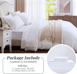 FULL 3 PIECE SET: Duvet cover measures 80” x 90”, pillow shams measure 20” x 26” with 1.5” flange