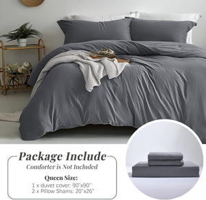 - ⭐【SIZE & PACKAGE】3 Pieces solid color duvet covet set; 1pcs queen size duvet cover: 90"x90" + 2pcs 20"x 26" pillow shams. (Note: Bedding Sheet or Comforter is not included) A GREAT GIFT for weddings, birthdays, Christmas, holidays and more.