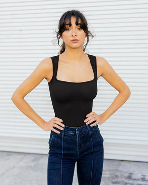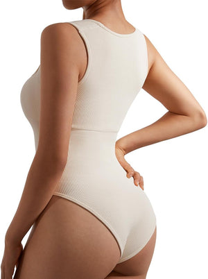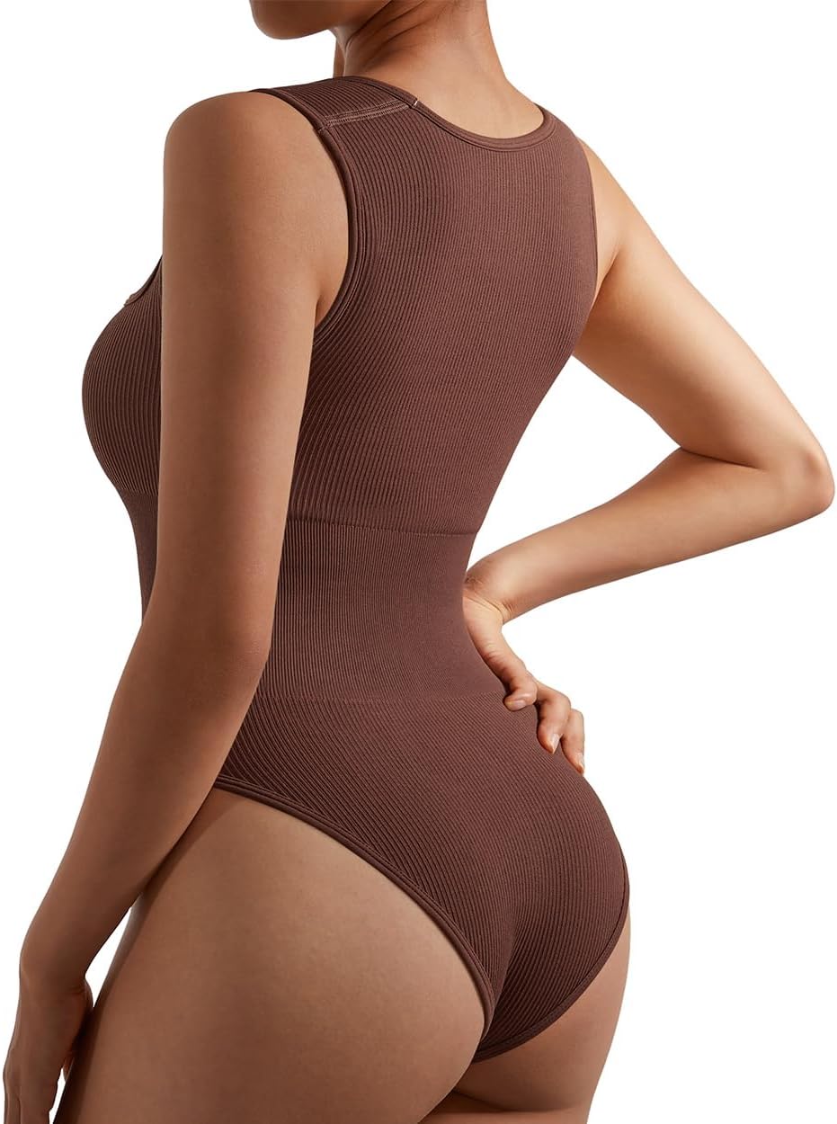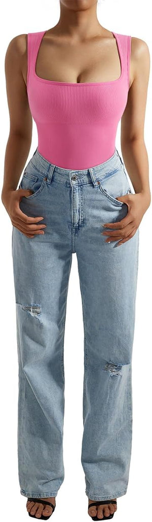 SUUKSESS Women Strappy Ribbed Square Neck Bodysuit Sleeveless Tank Tops