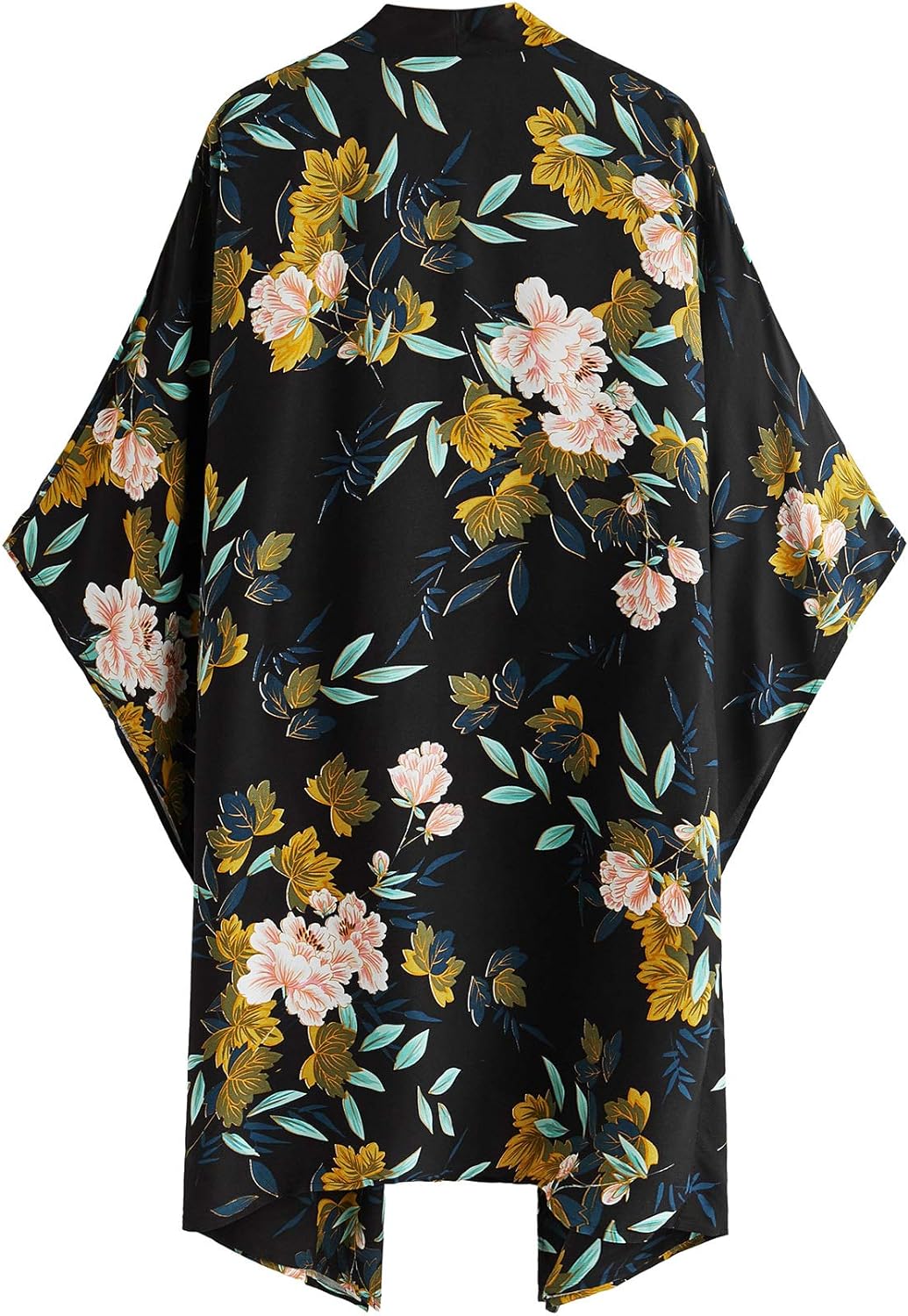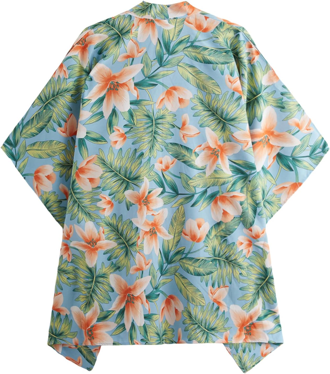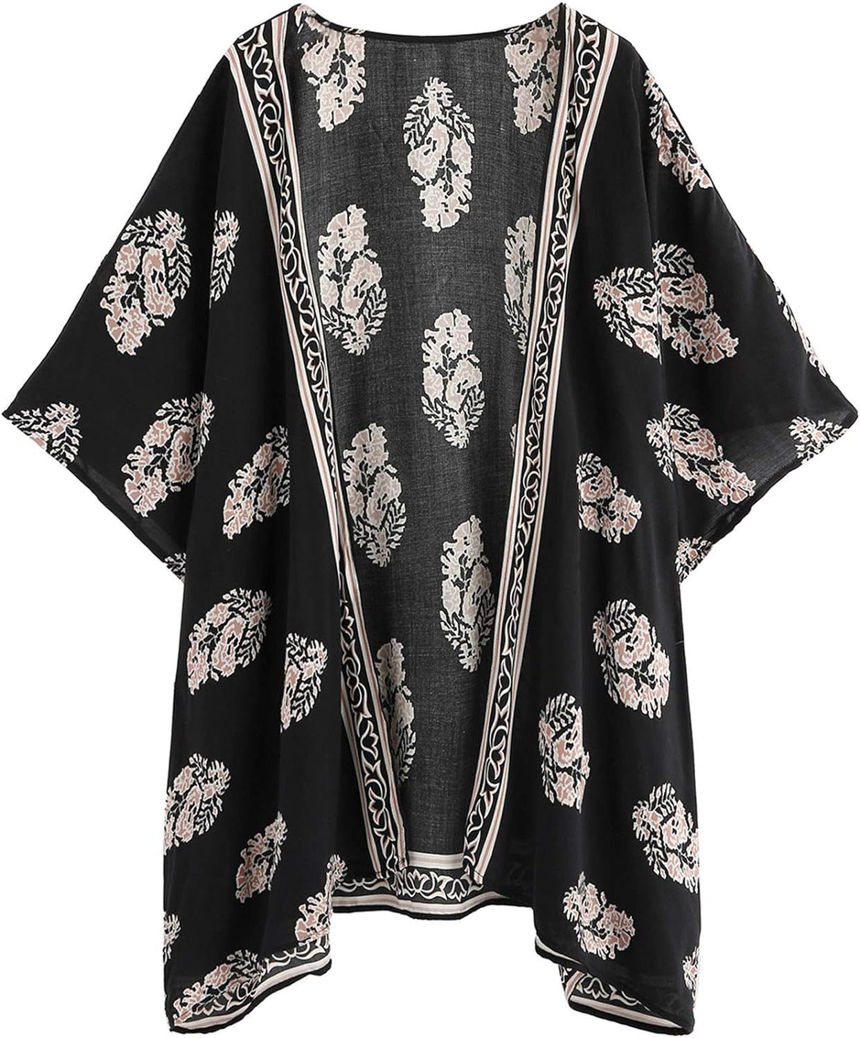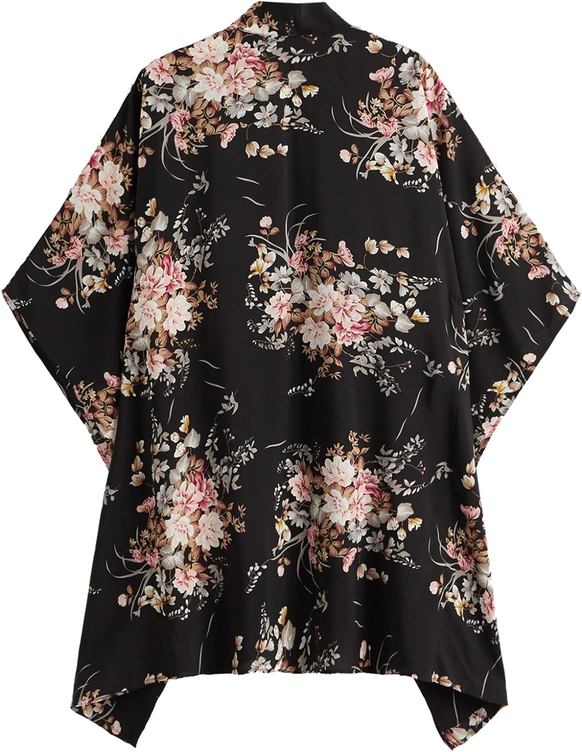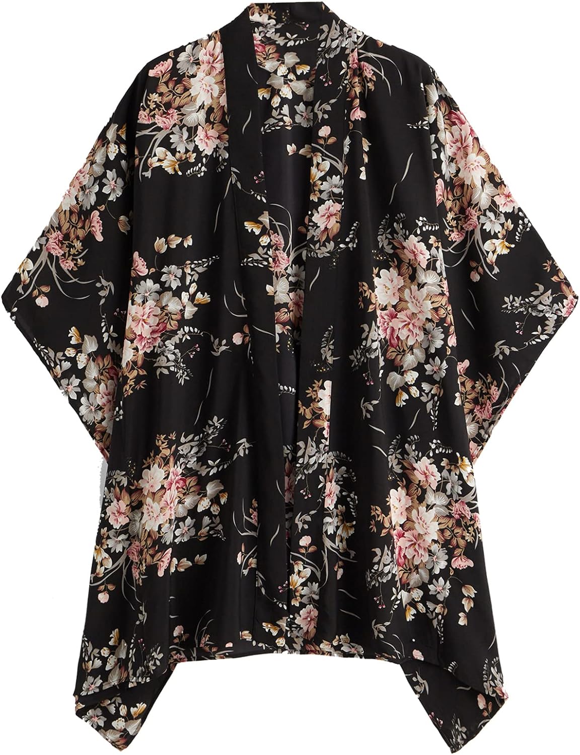 SweatyRocks Women Kimono Vintage Floral Beach Cover Up