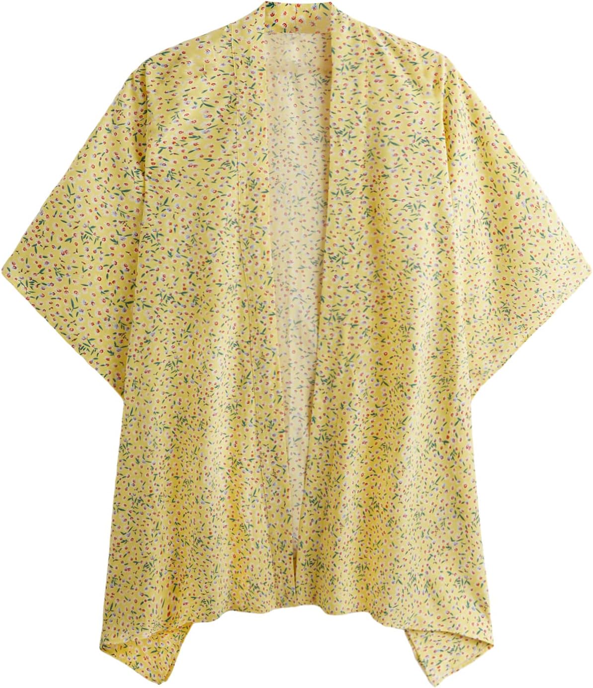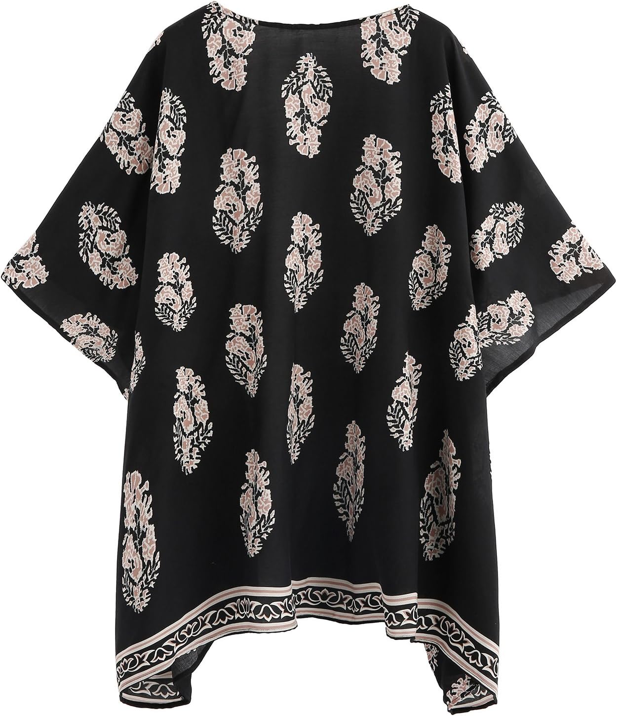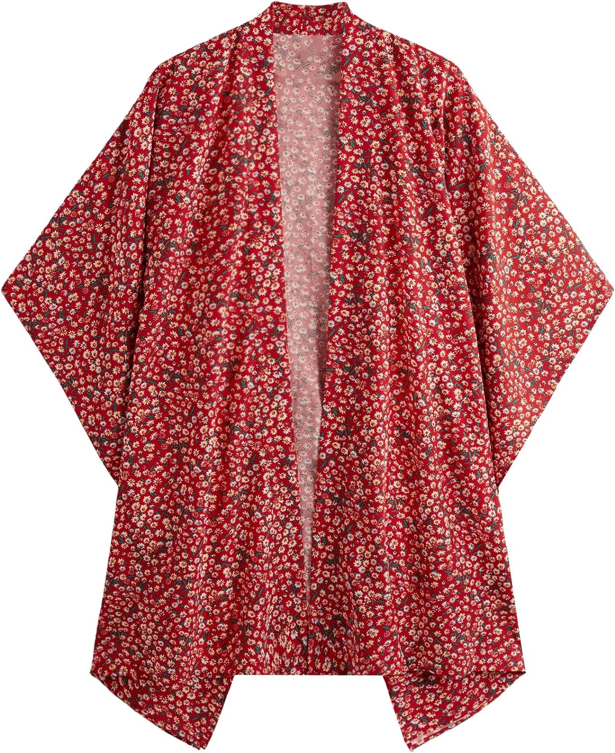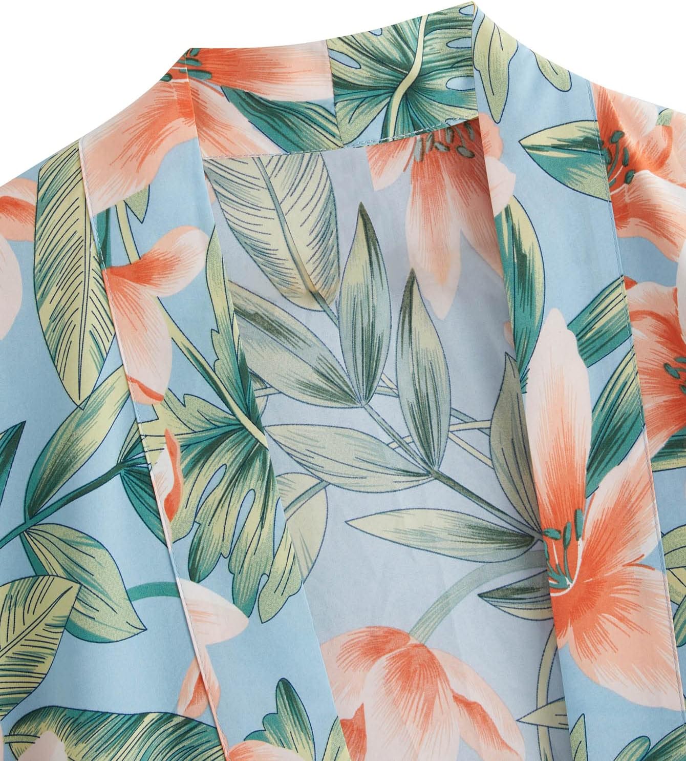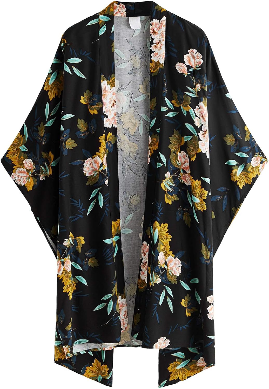 SweatyRocks Women Kimono Vintage Floral Beach Cover Up