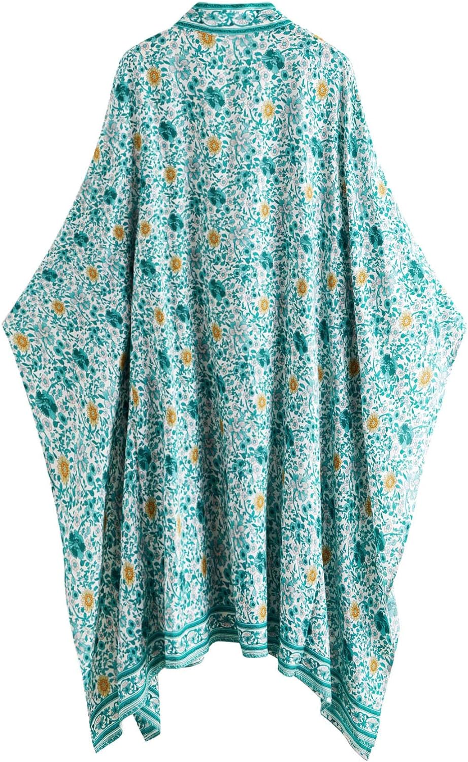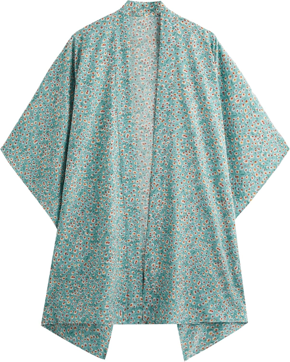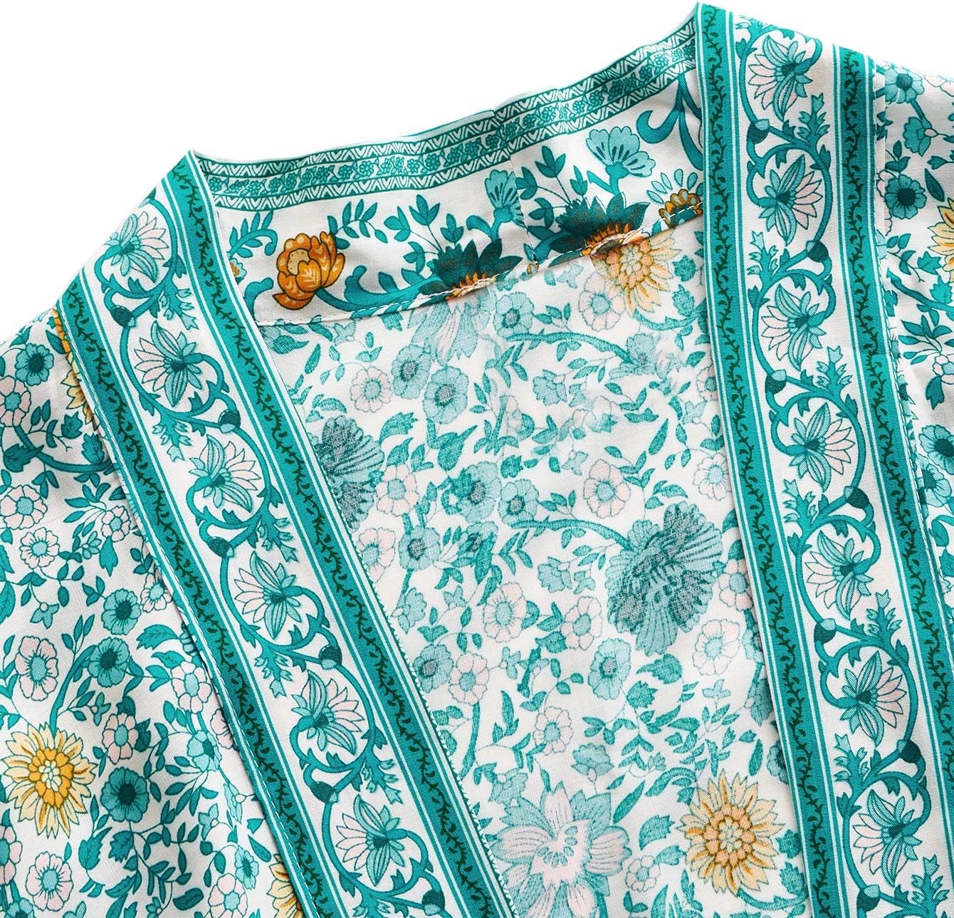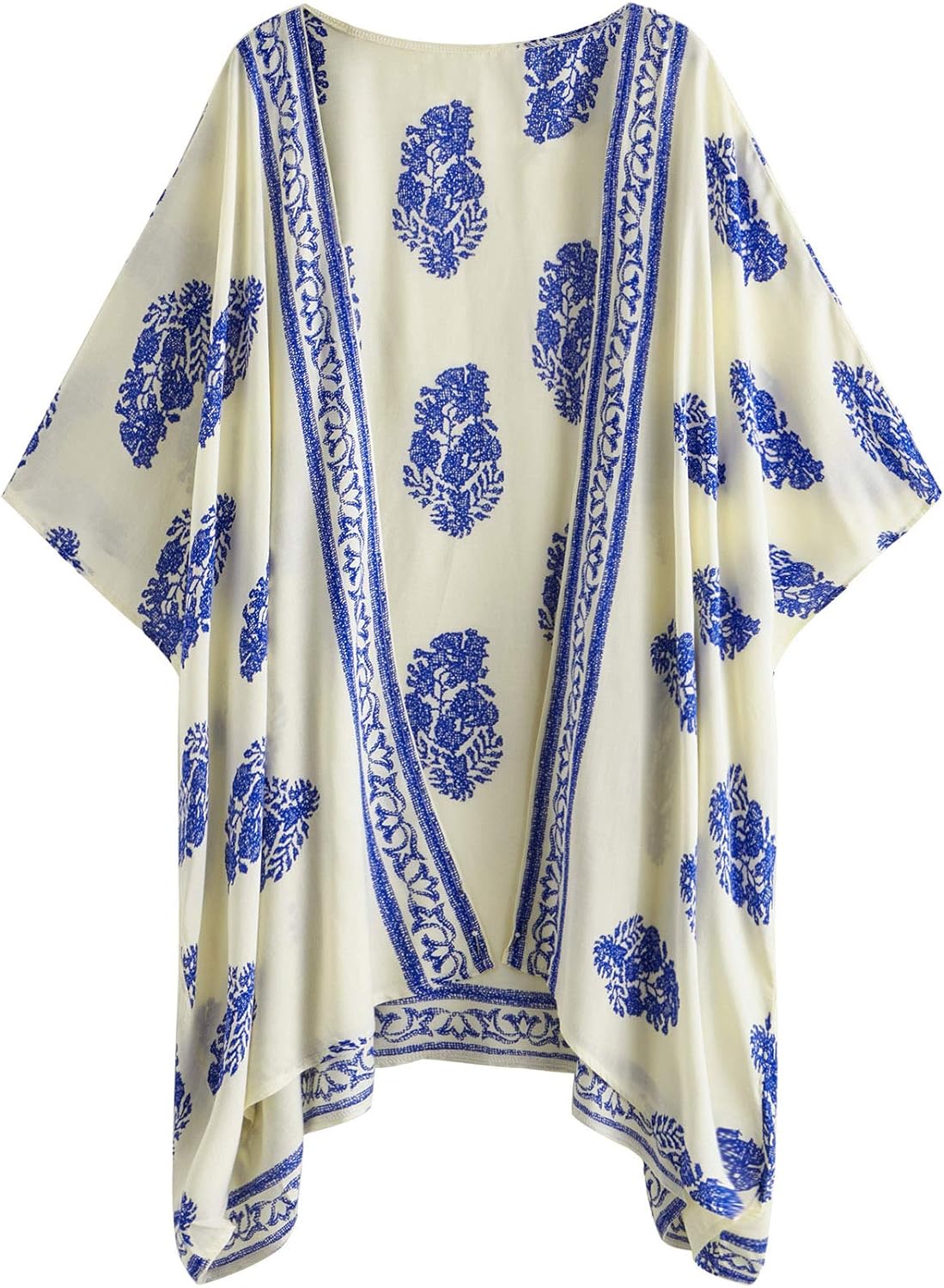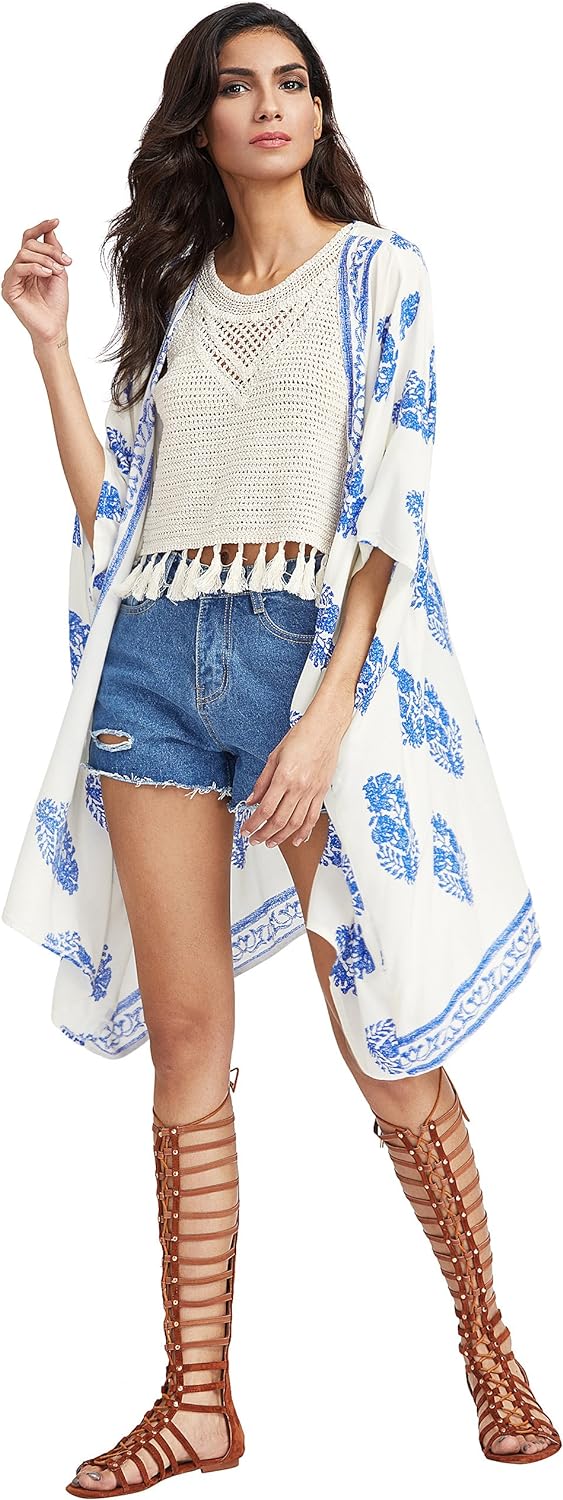 SweatyRocks Women Kimono Vintage Floral Beach Cover Up