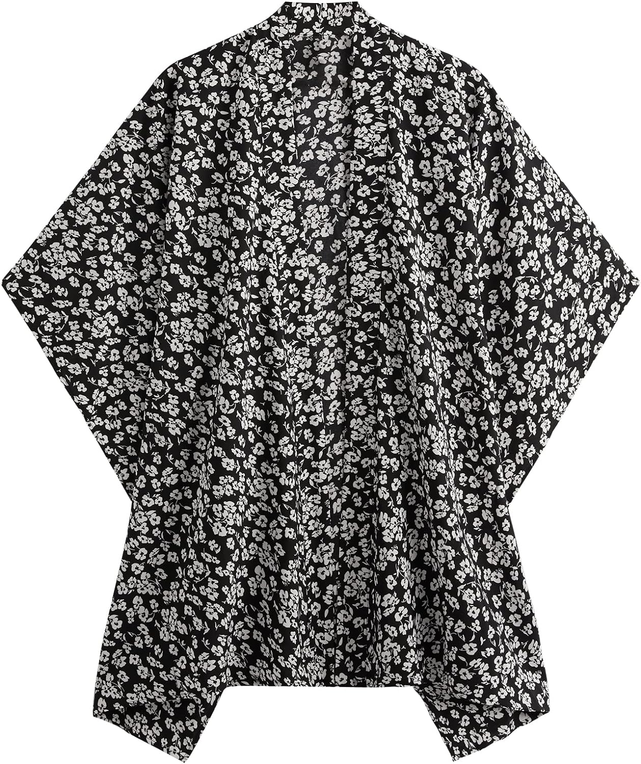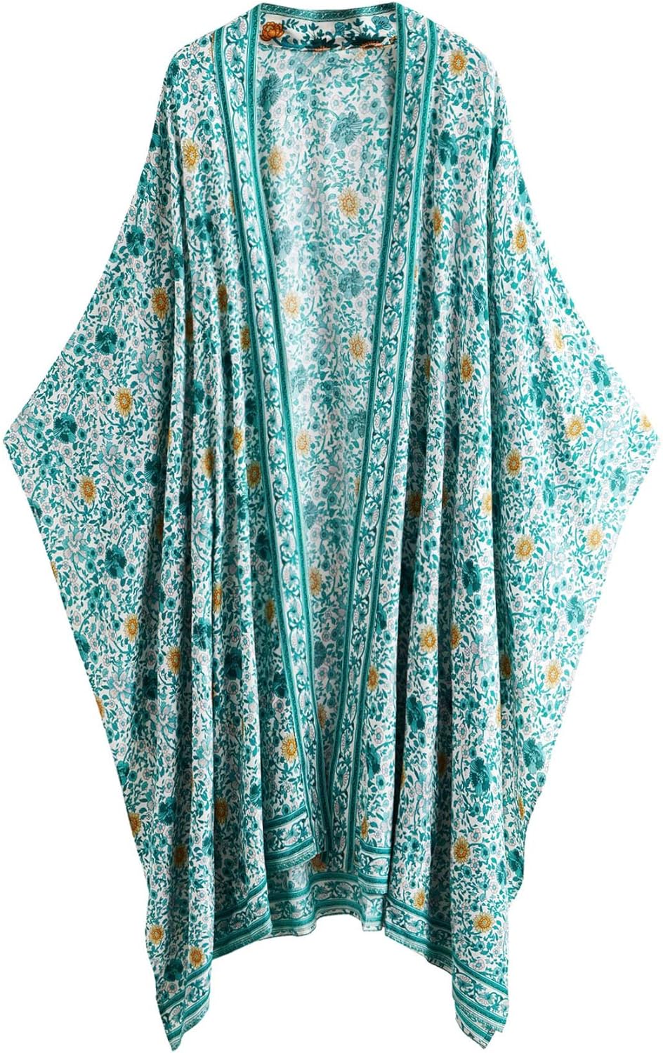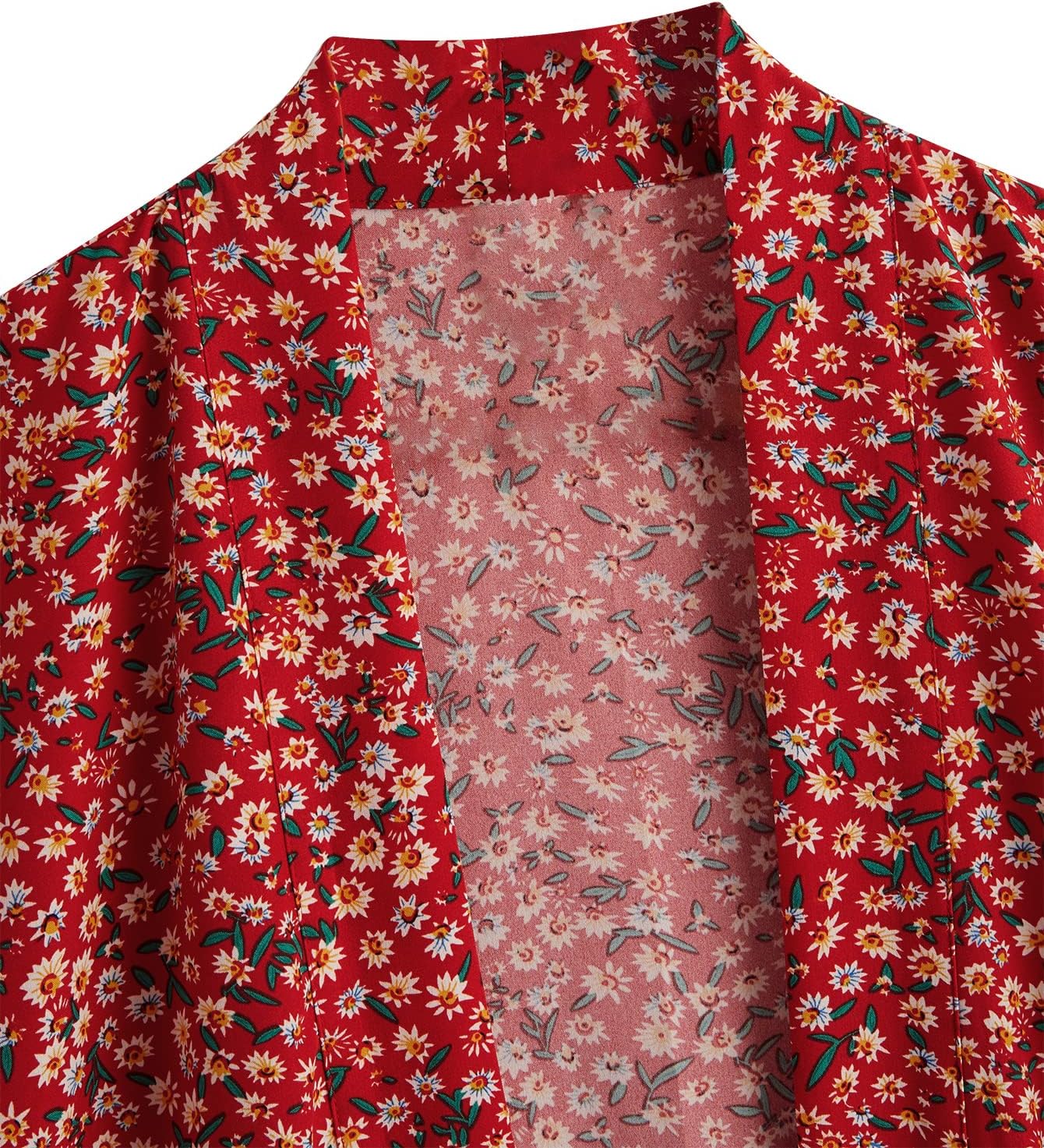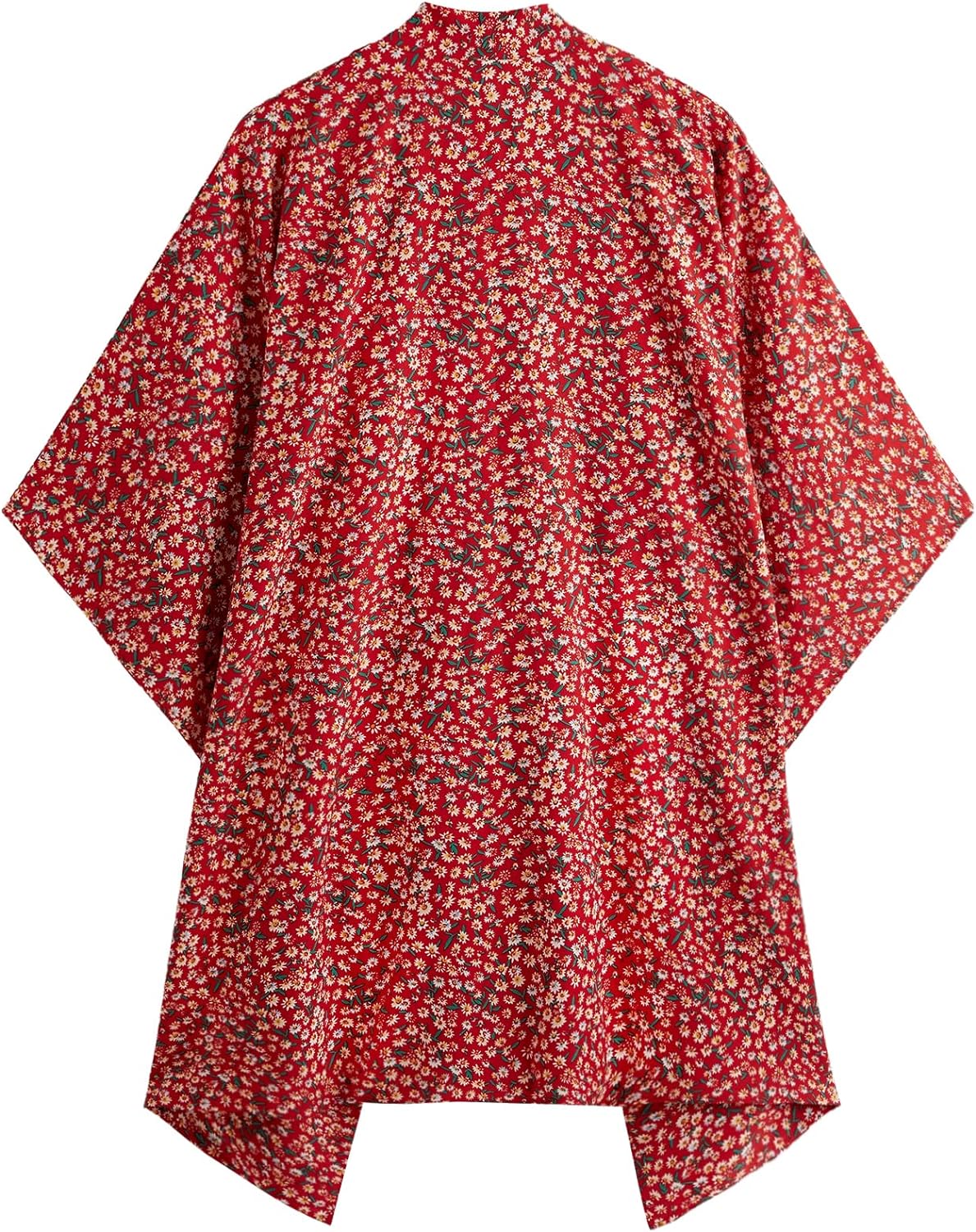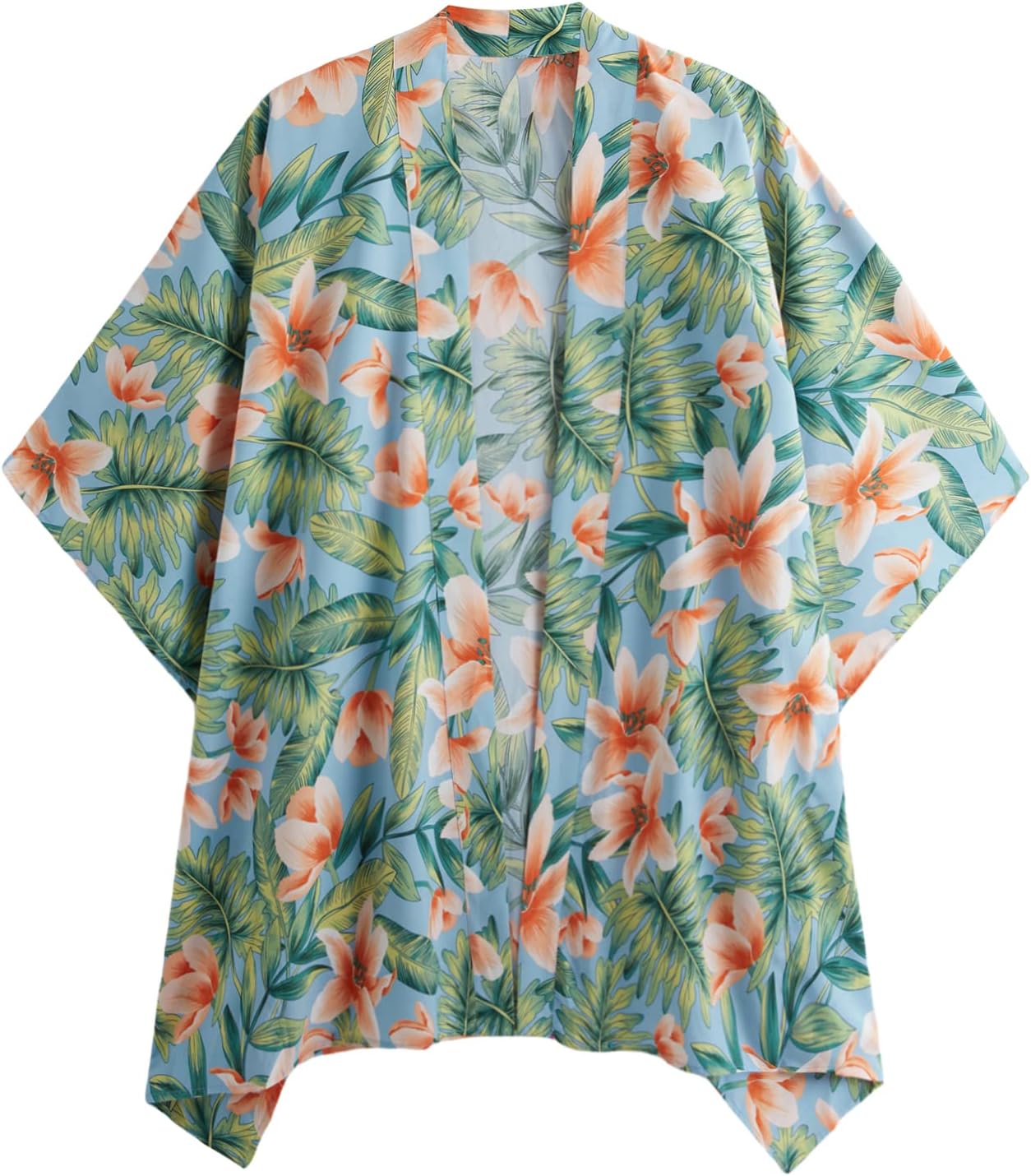SweatyRocks Women Kimono Vintage Floral Beach Cover Up