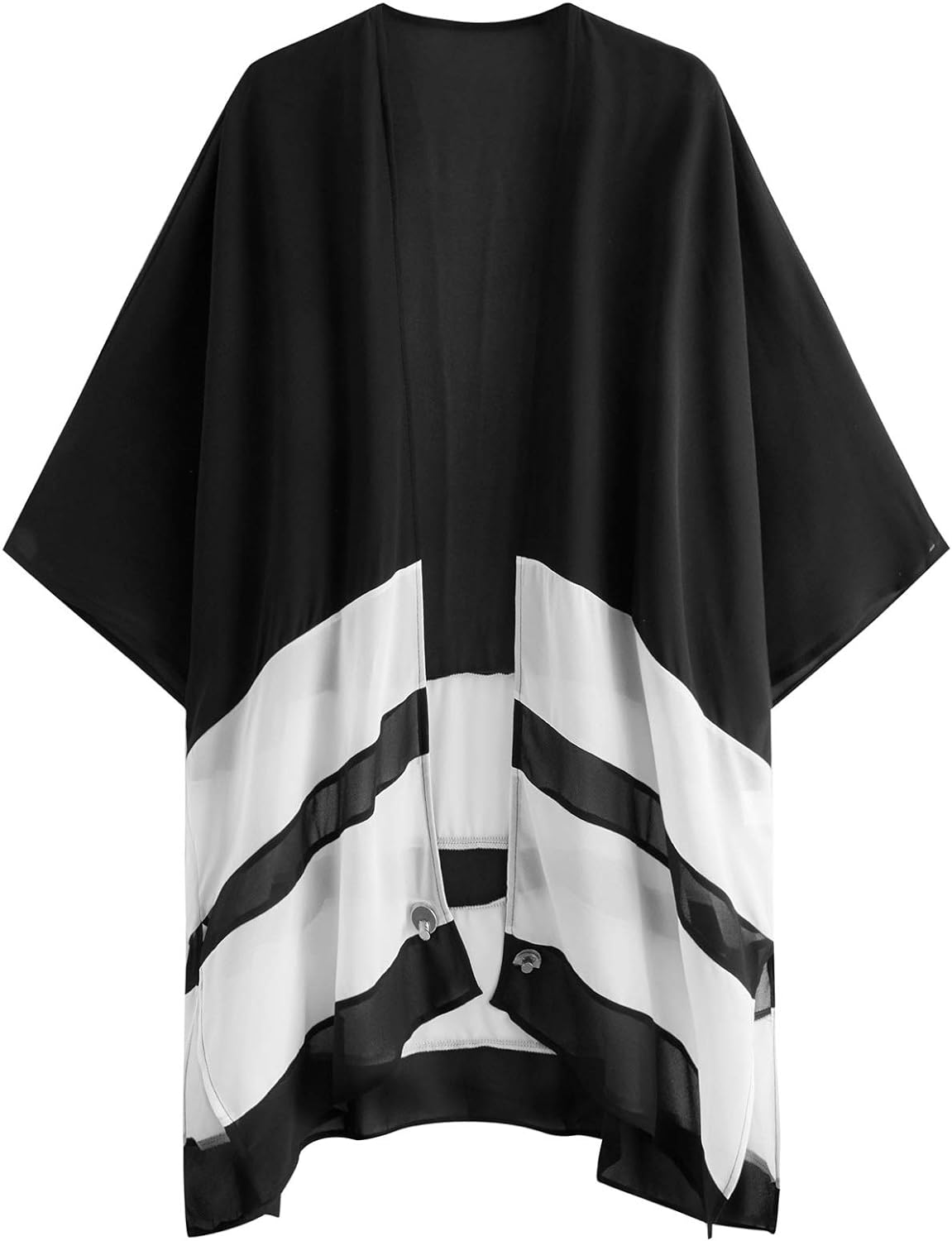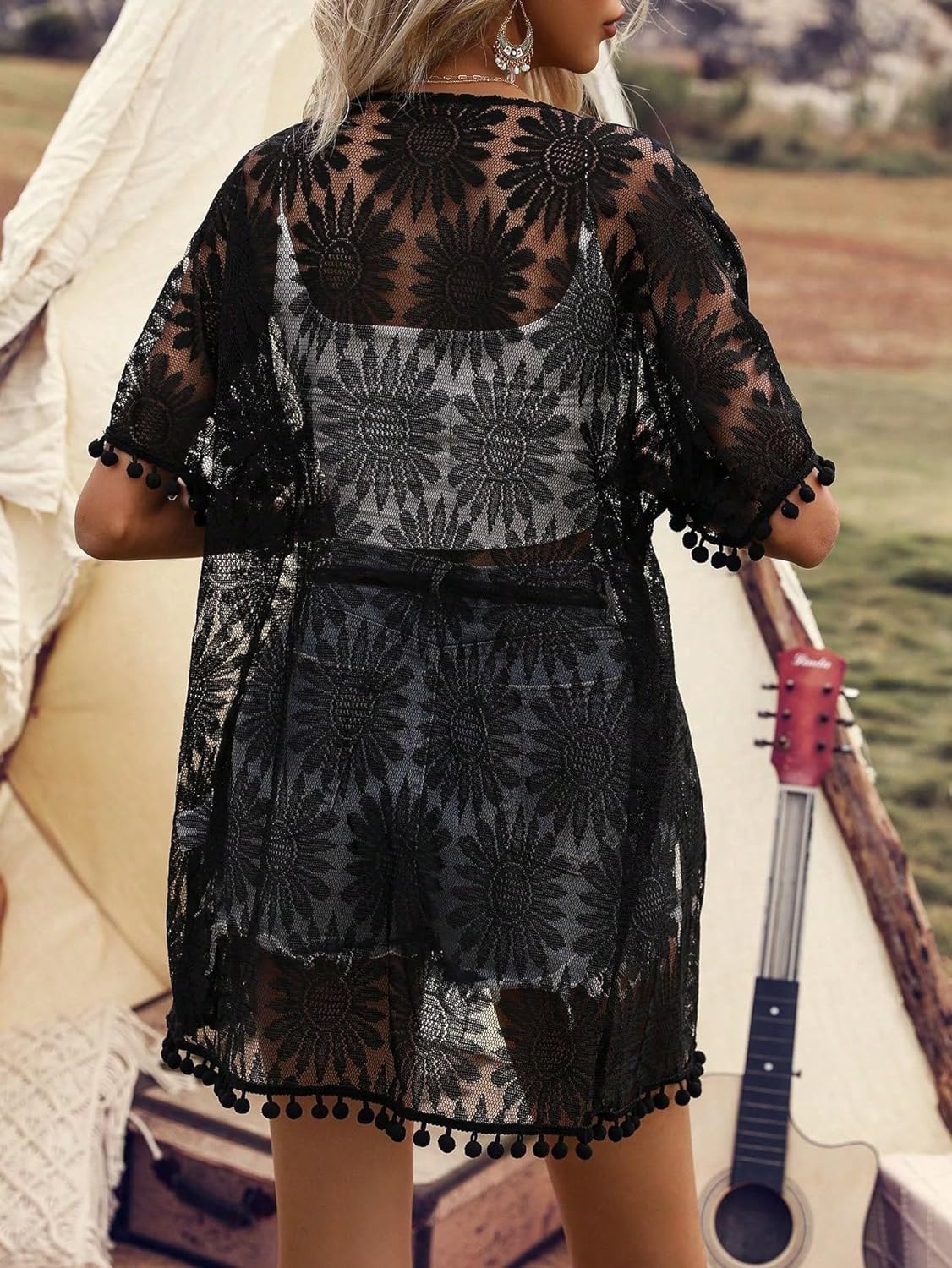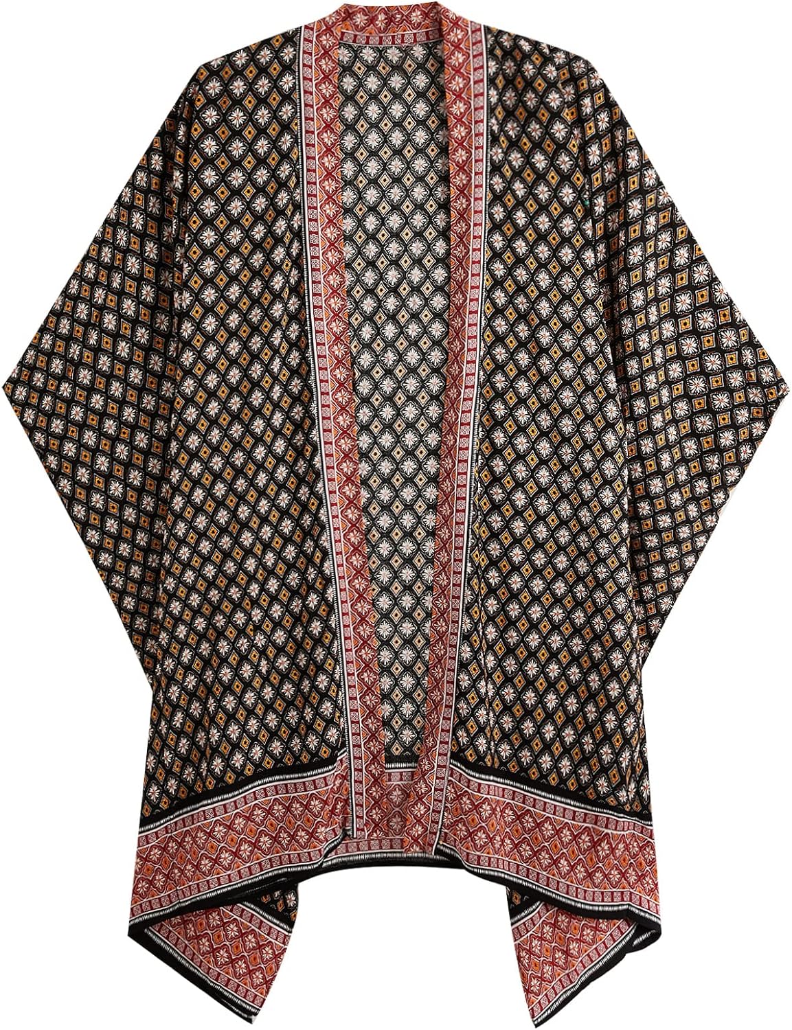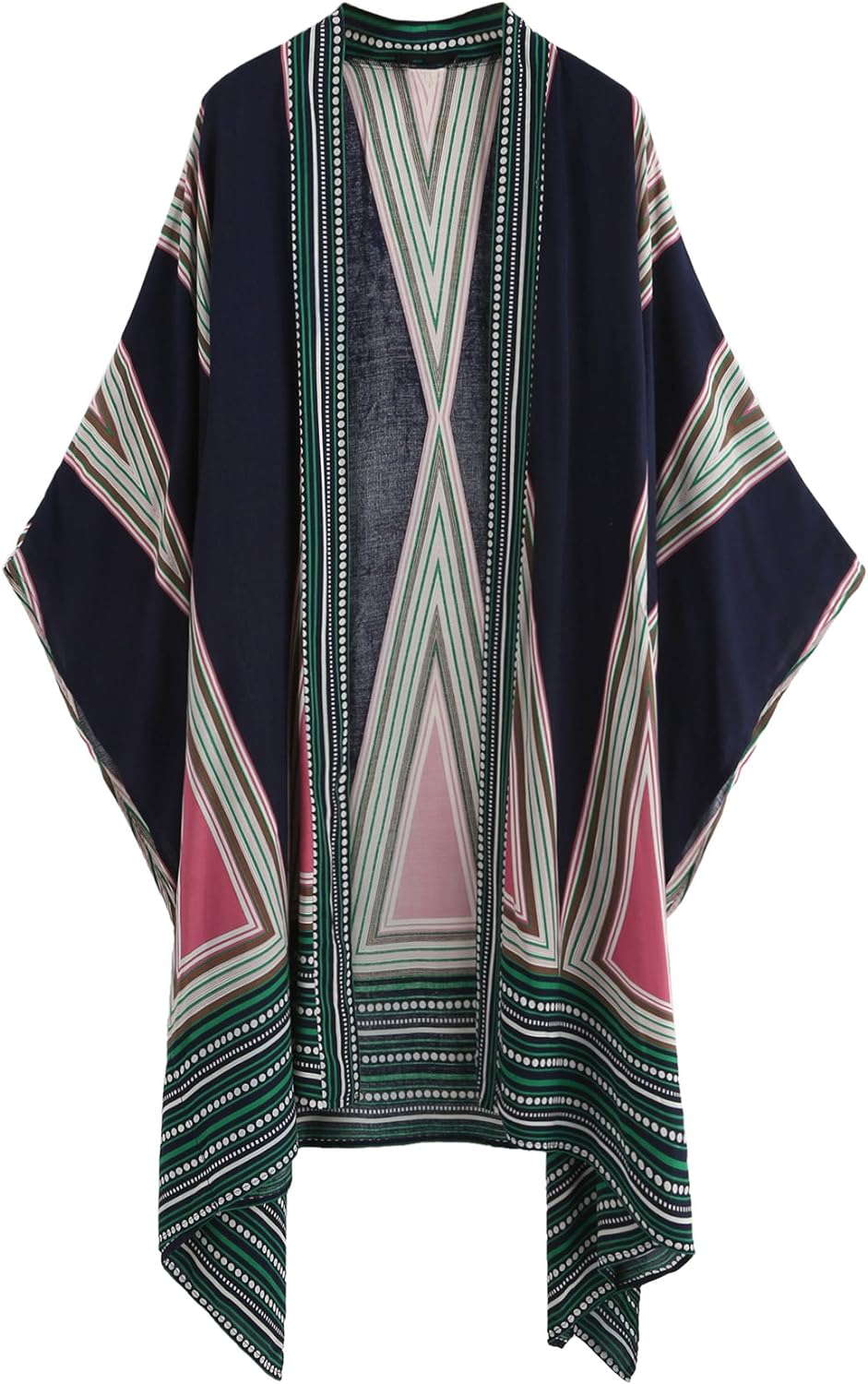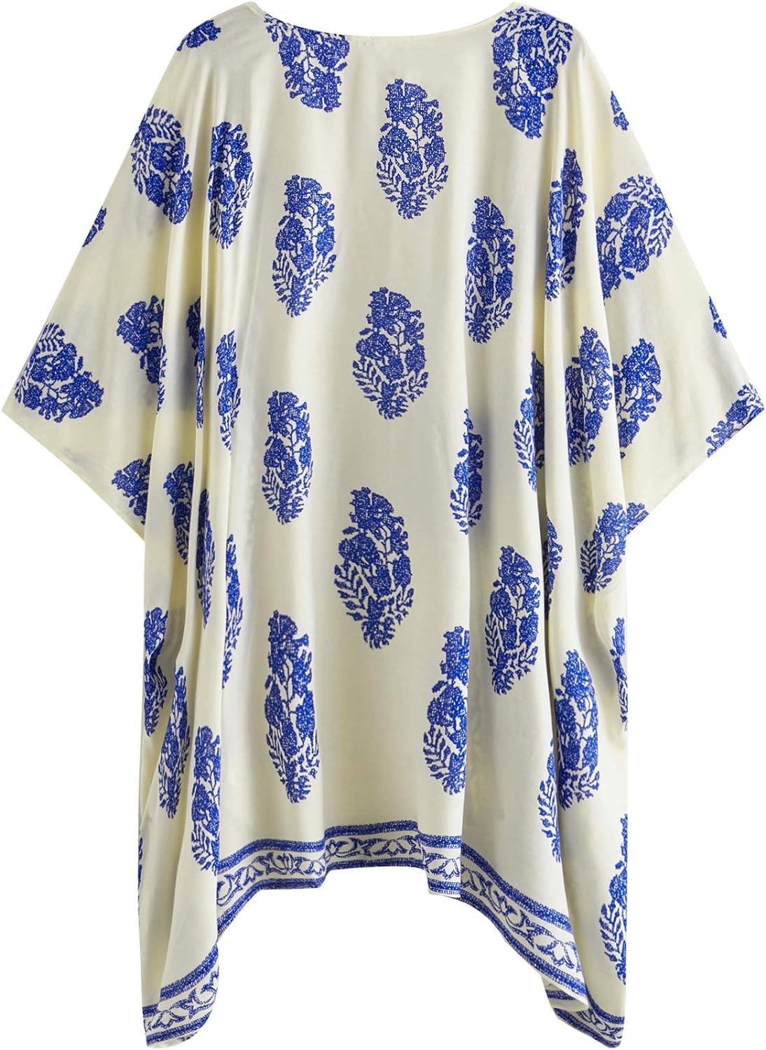 SweatyRocks Women Kimono Vintage Floral Beach Cover Up