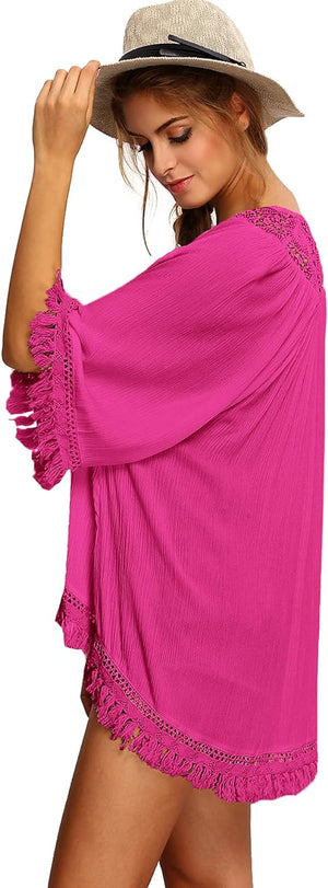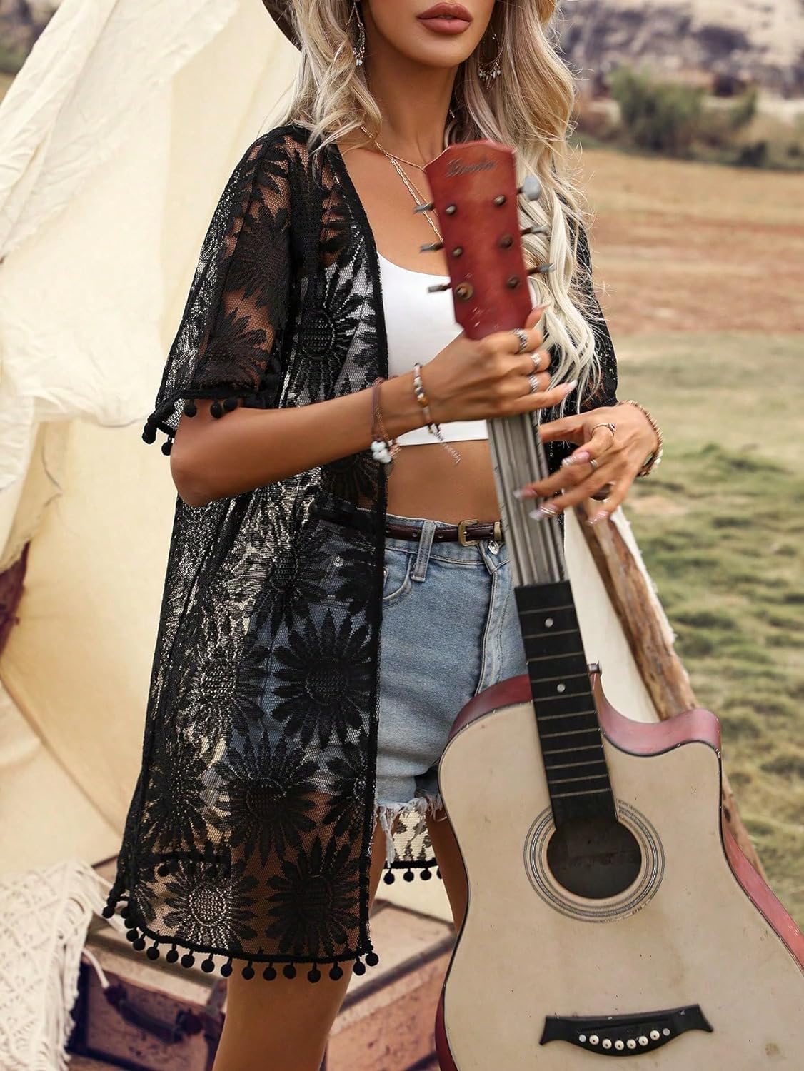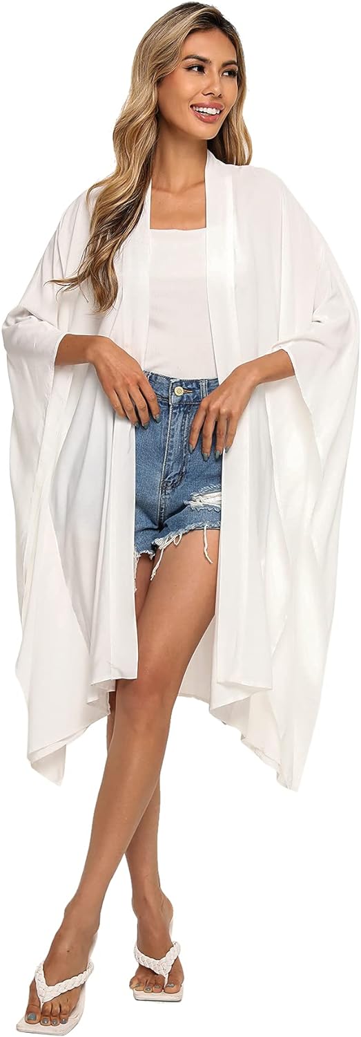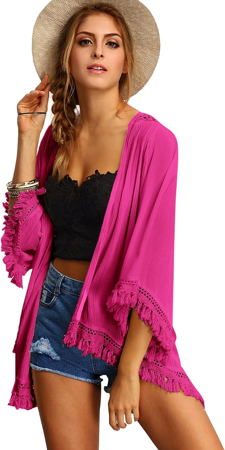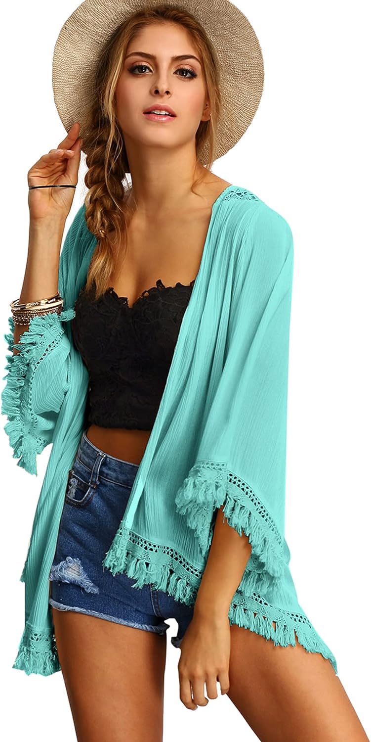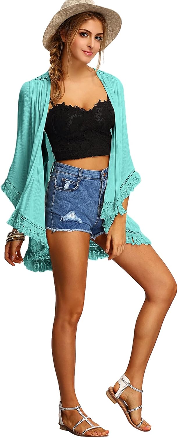 SweatyRocks Women Kimono Vintage Floral Beach Cover Up