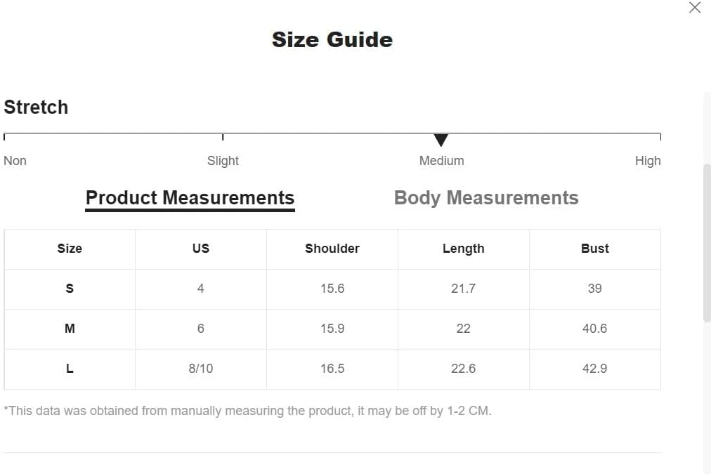 Medium: Shoulder:15.9", Length:22", Bust:40.6"