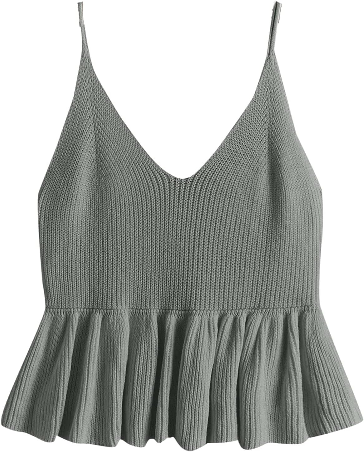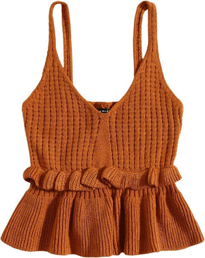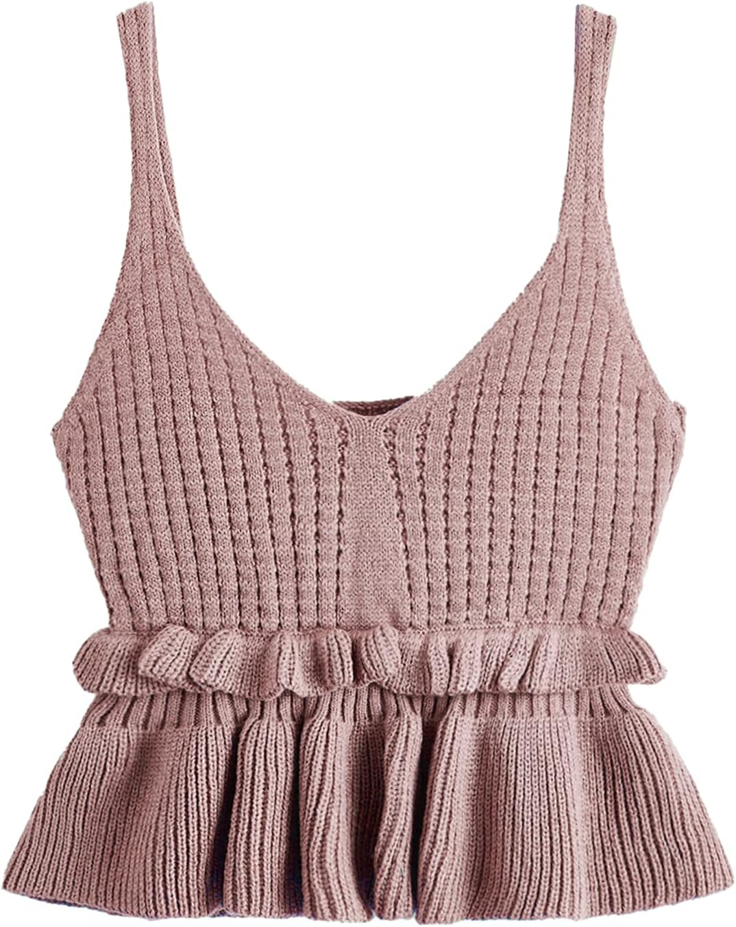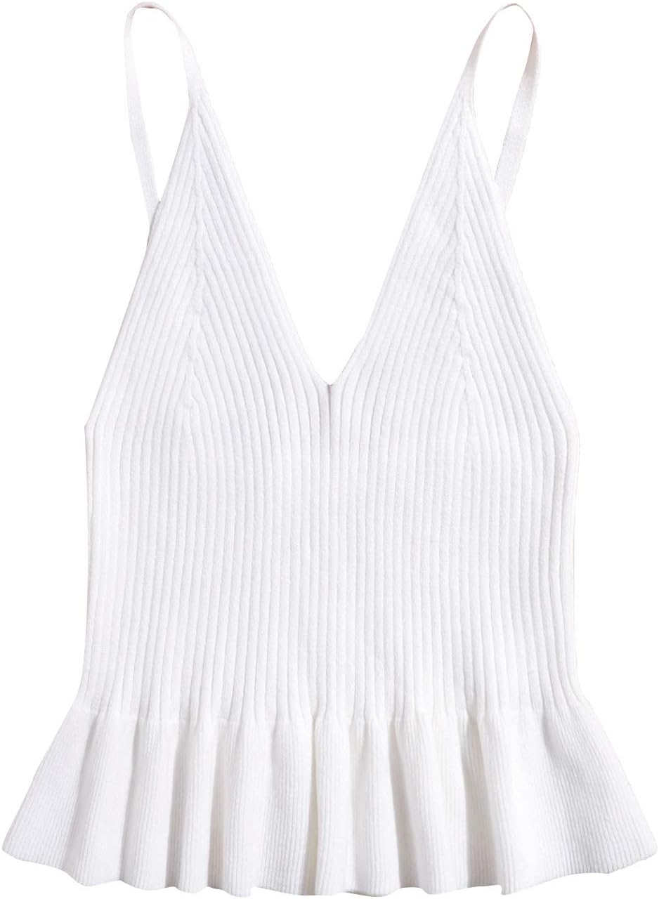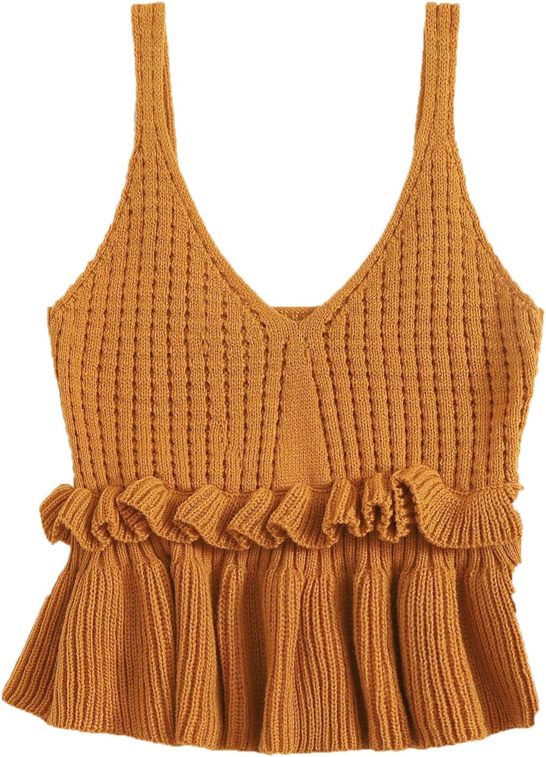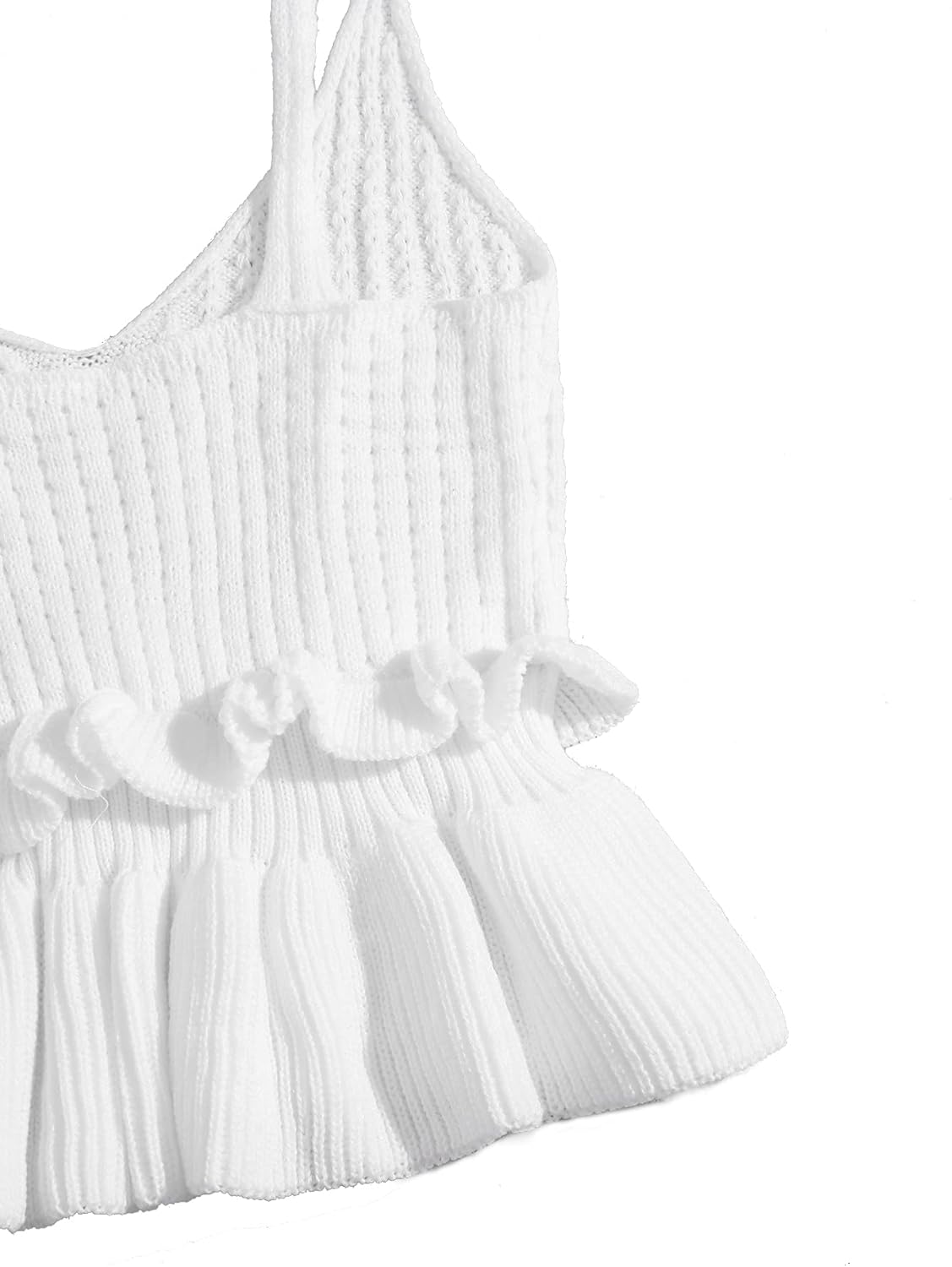SweatyRocks Women's Casual Knit Top Sleeveless Ruffle Hem V Neck Peplum Crop Tank Top