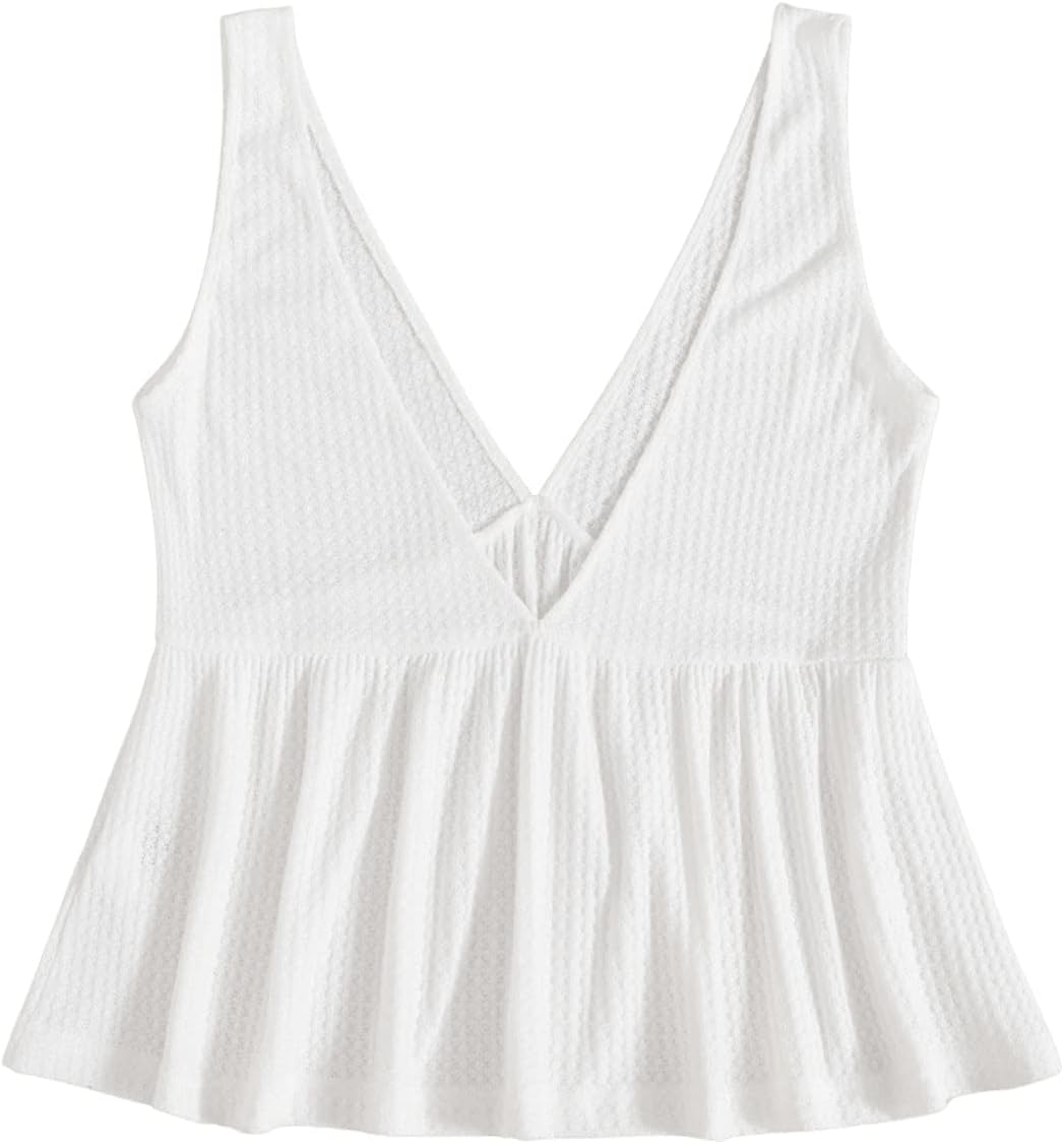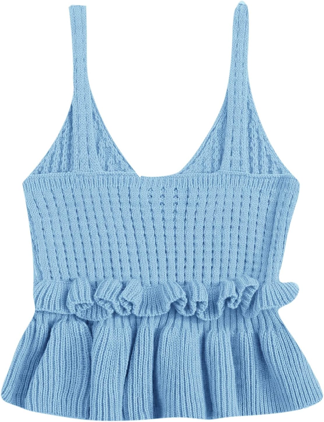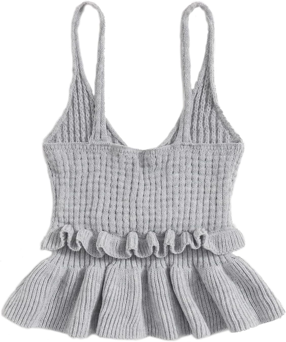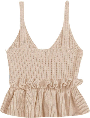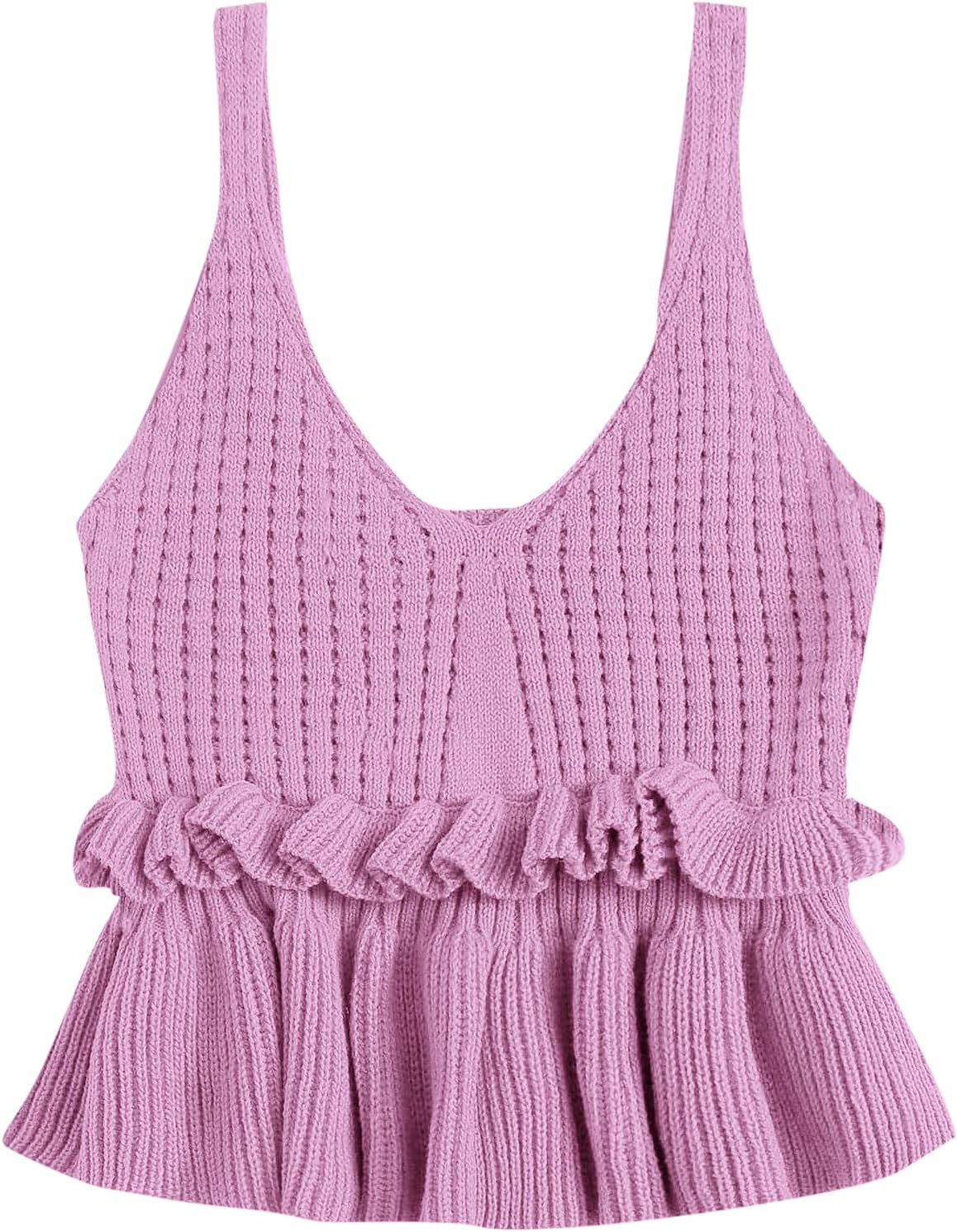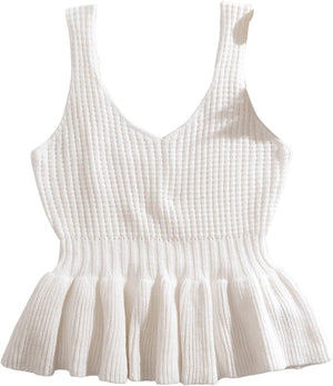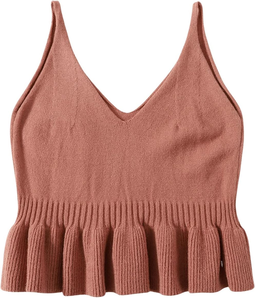 SweatyRocks Women's Casual Knit Top Sleeveless Ruffle Hem V Neck Peplum Crop Tank Top