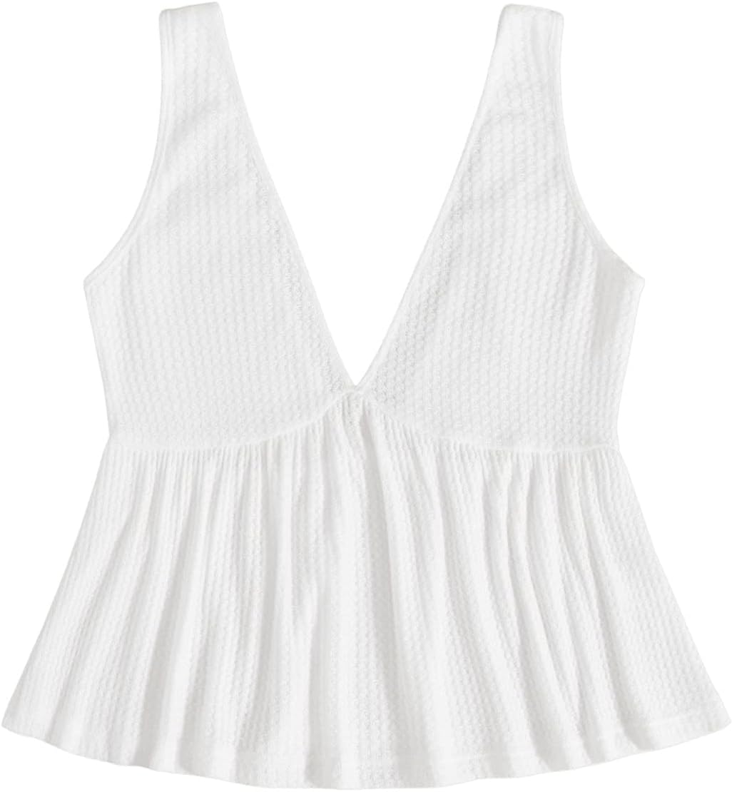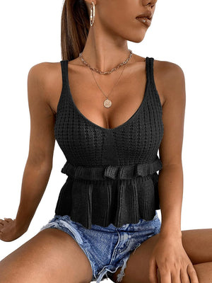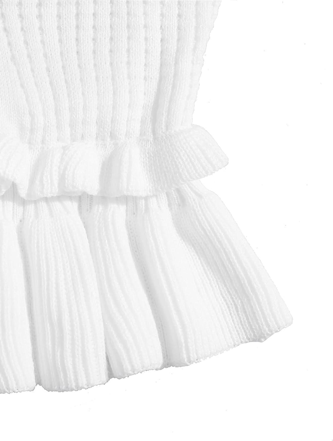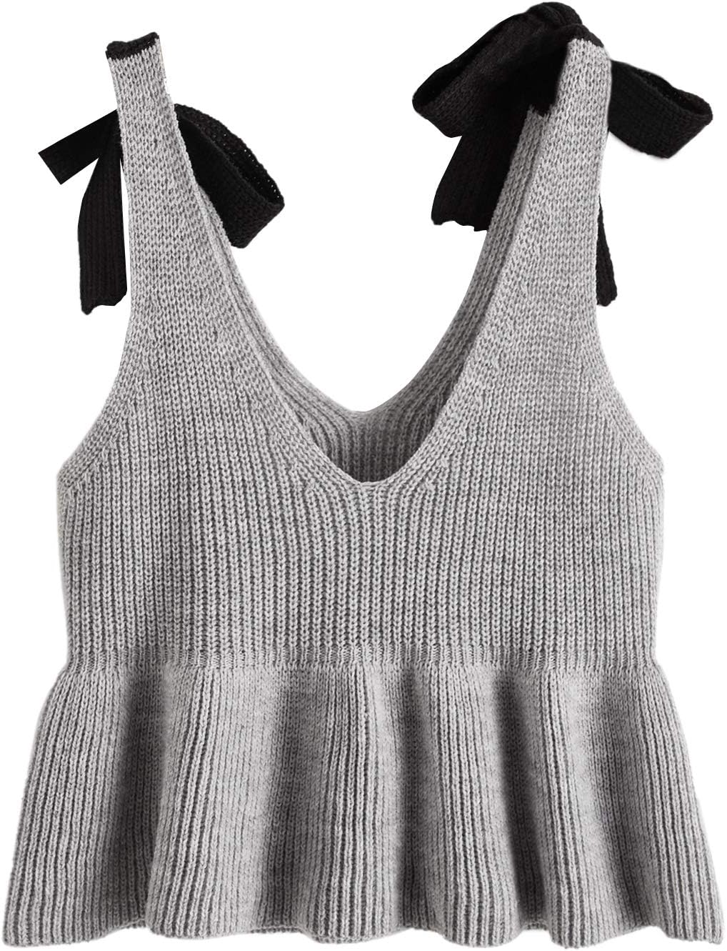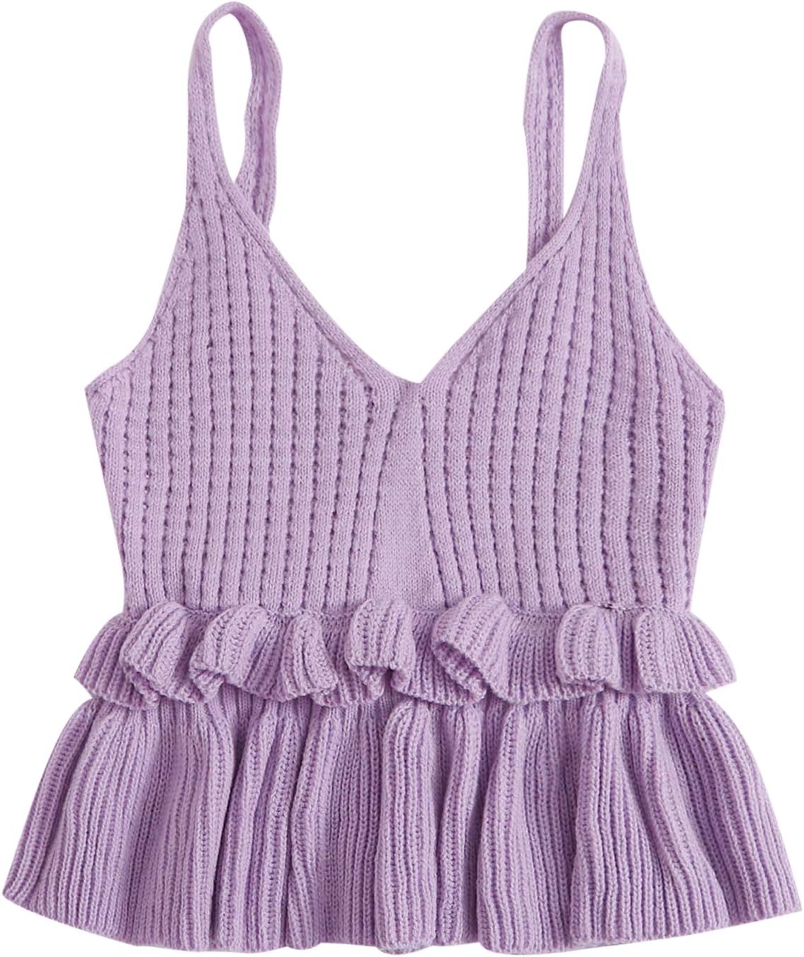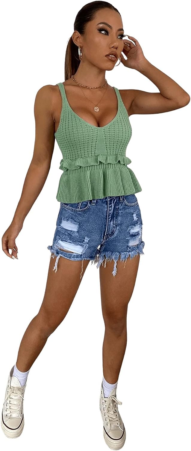 SweatyRocks Women's Casual Knit Top Sleeveless Ruffle Hem V Neck Peplum Crop Tank Top