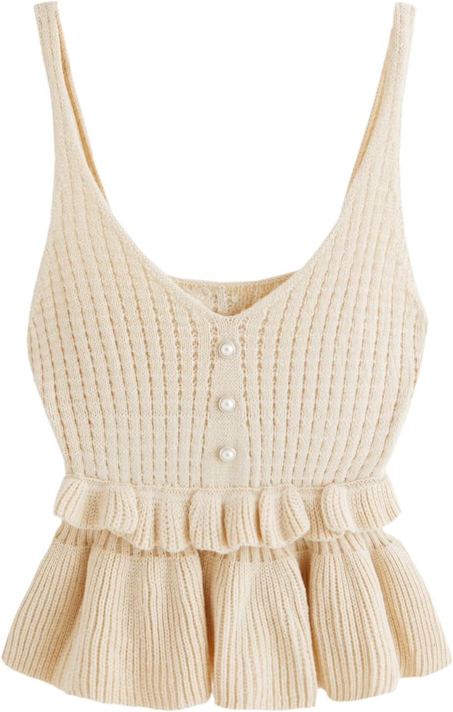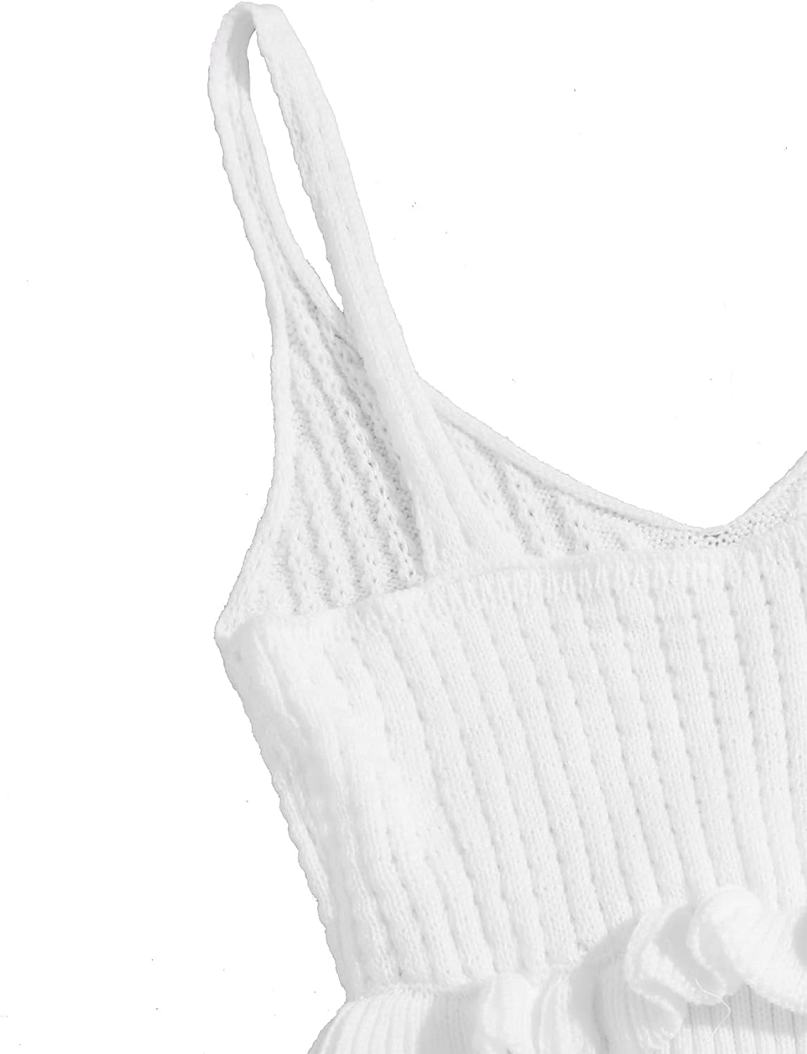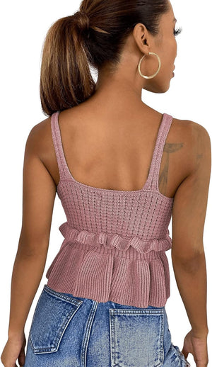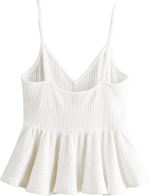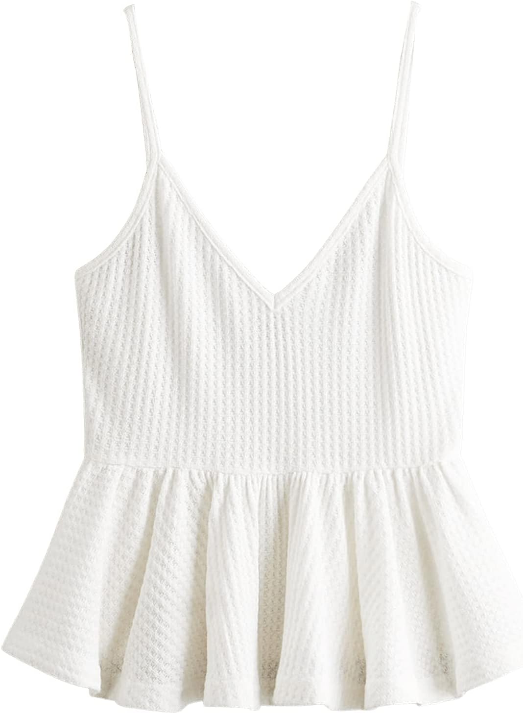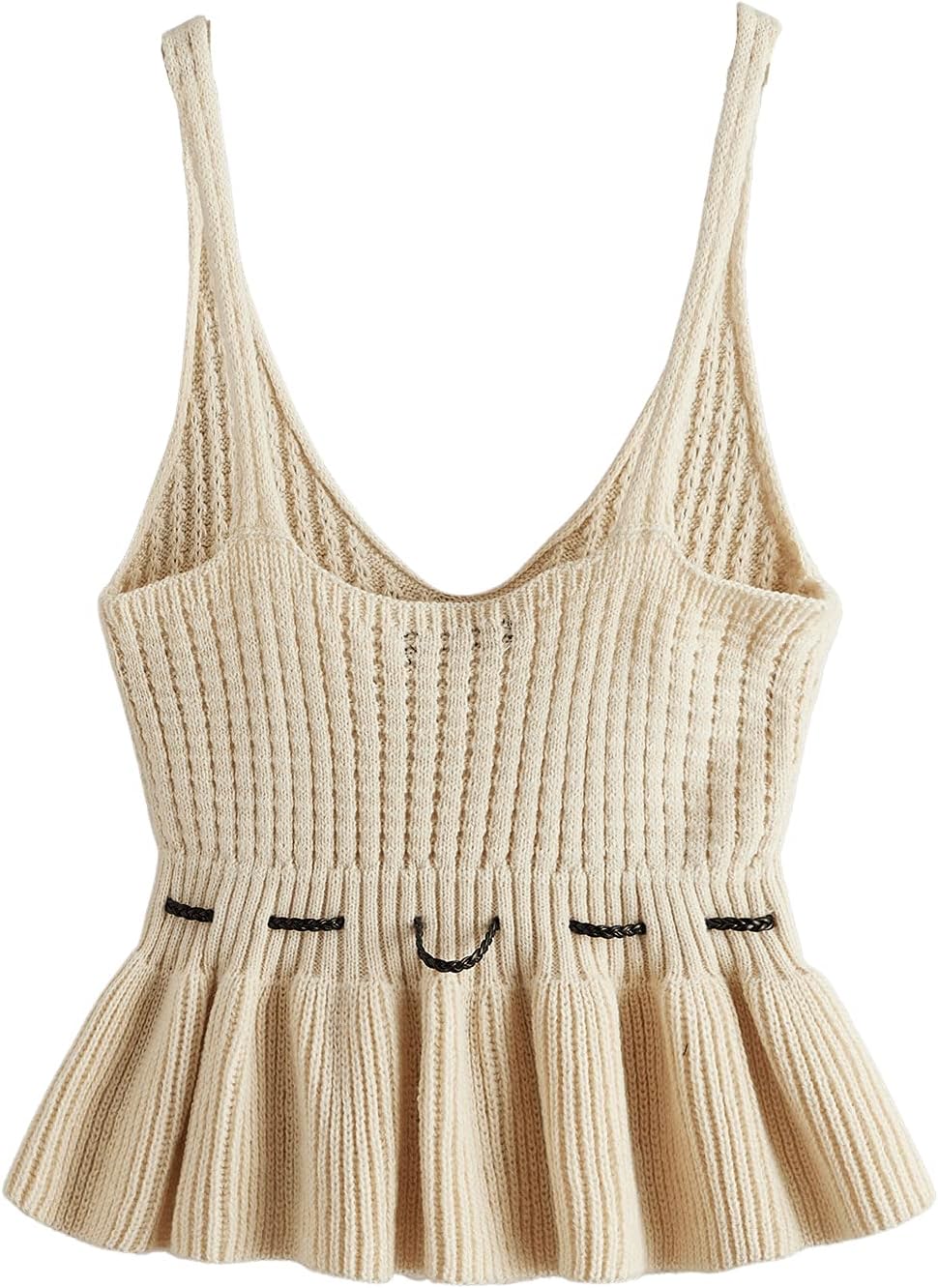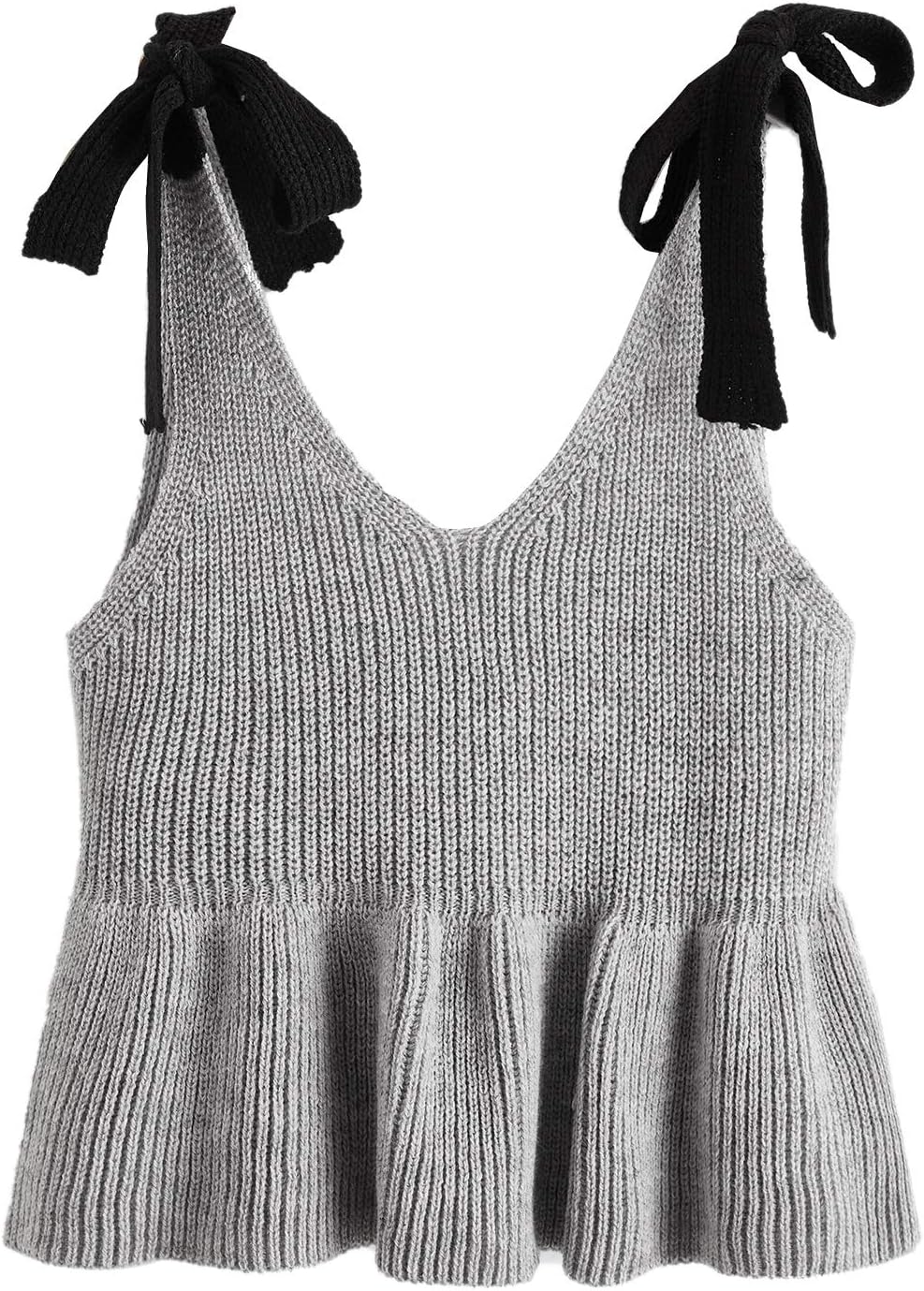 SweatyRocks Women's Casual Knit Top Sleeveless Ruffle Hem V Neck Peplum Crop Tank Top