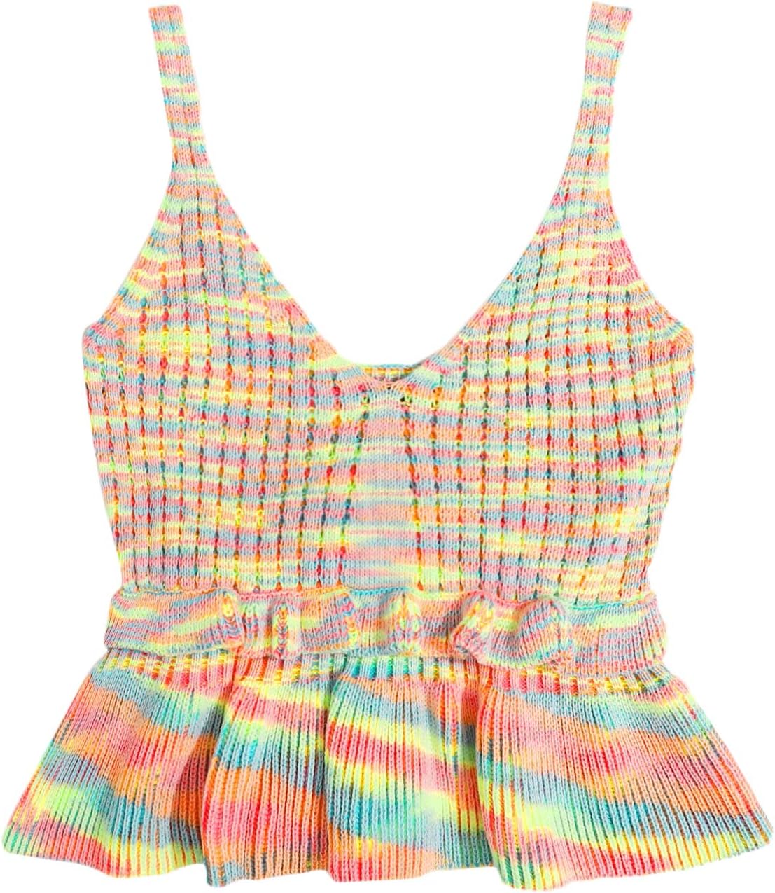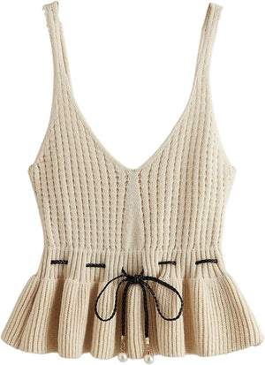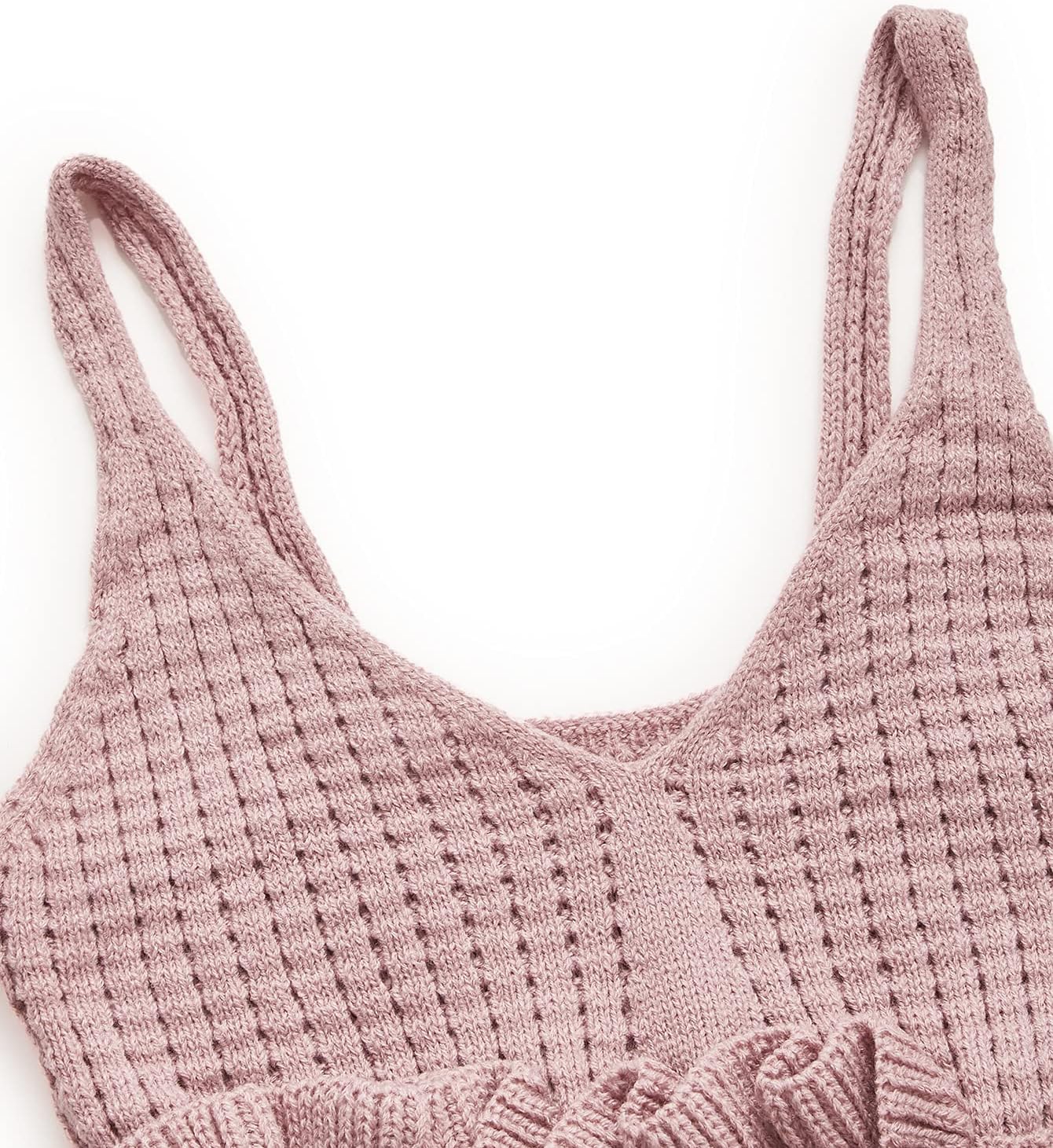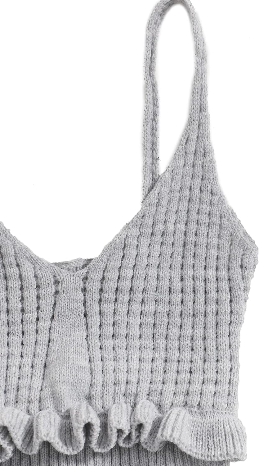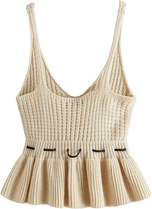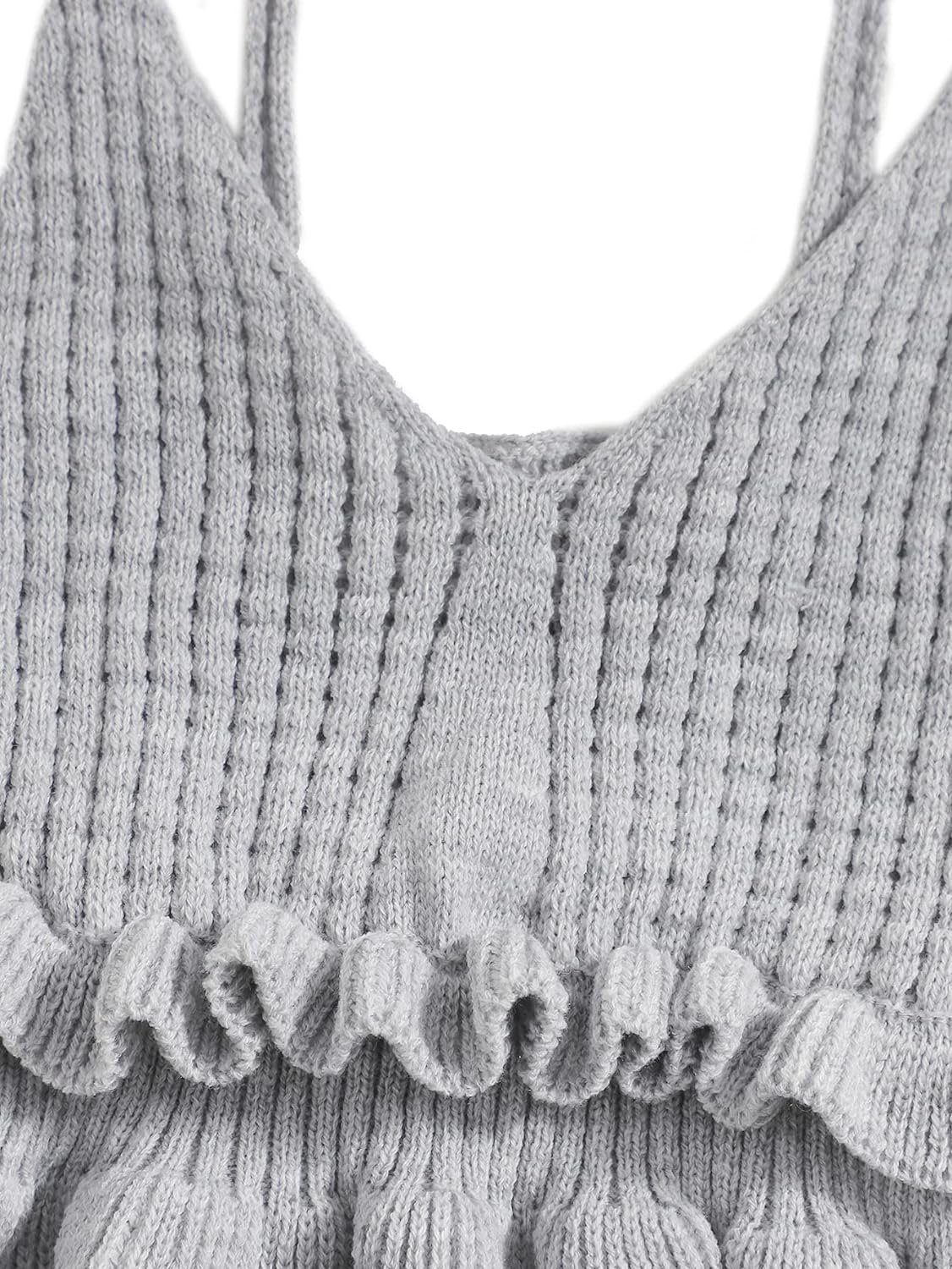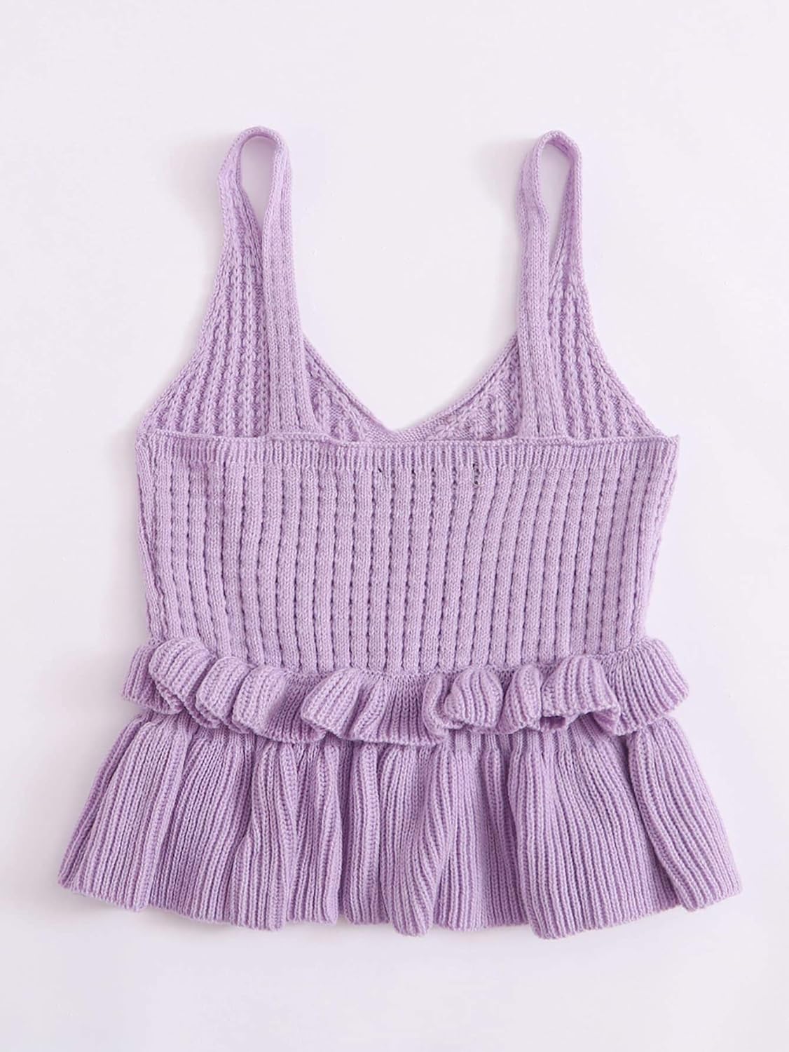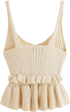 SweatyRocks Women's Casual Knit Top Sleeveless Ruffle Hem V Neck Peplum Crop Tank Top