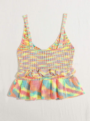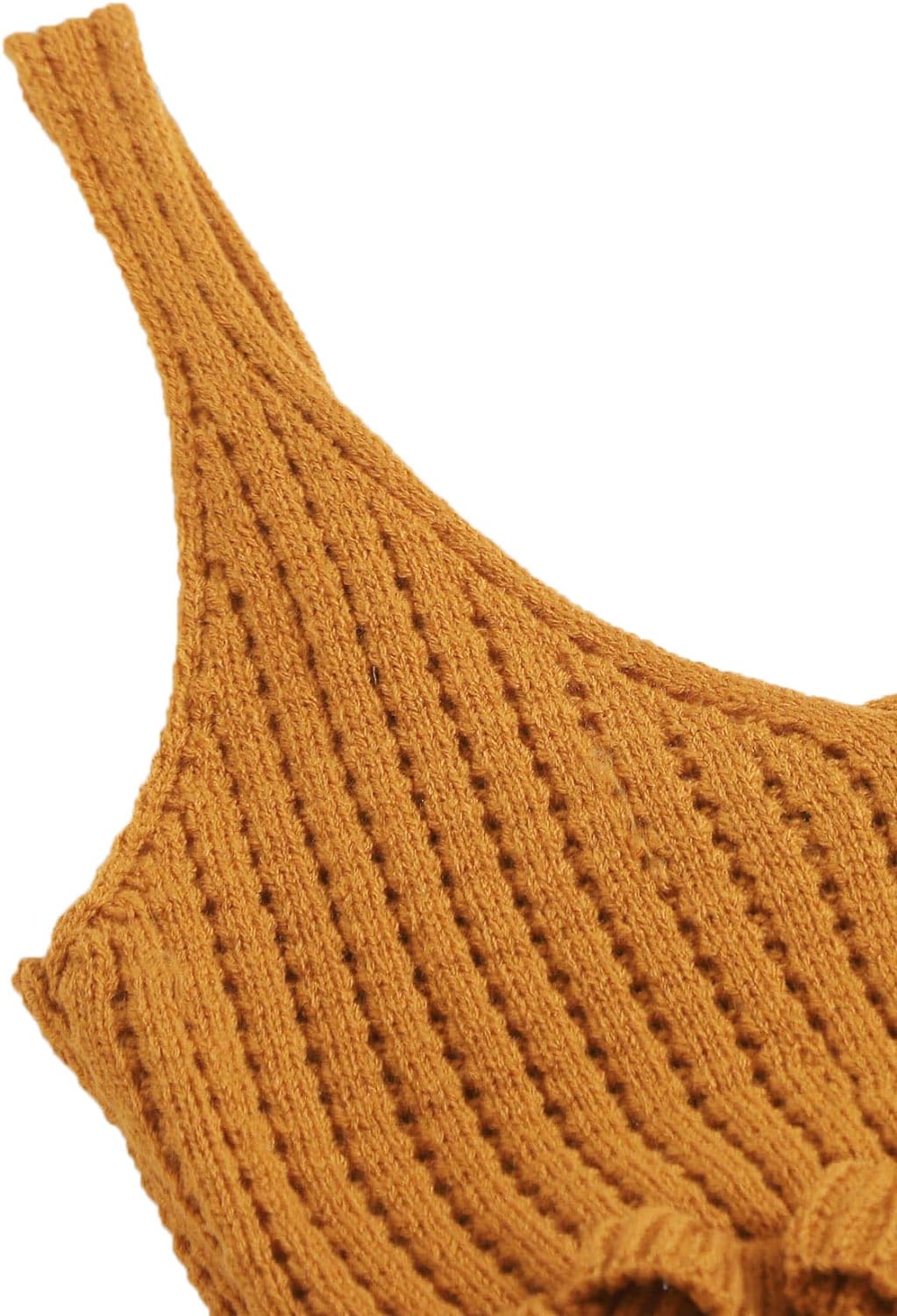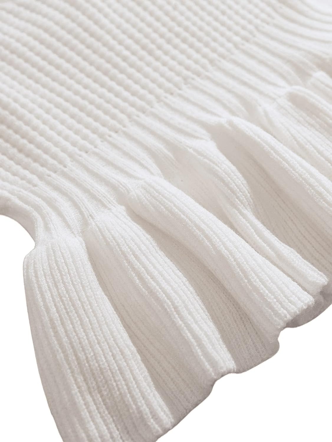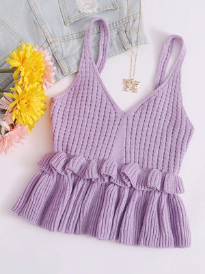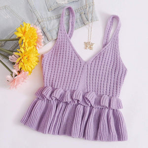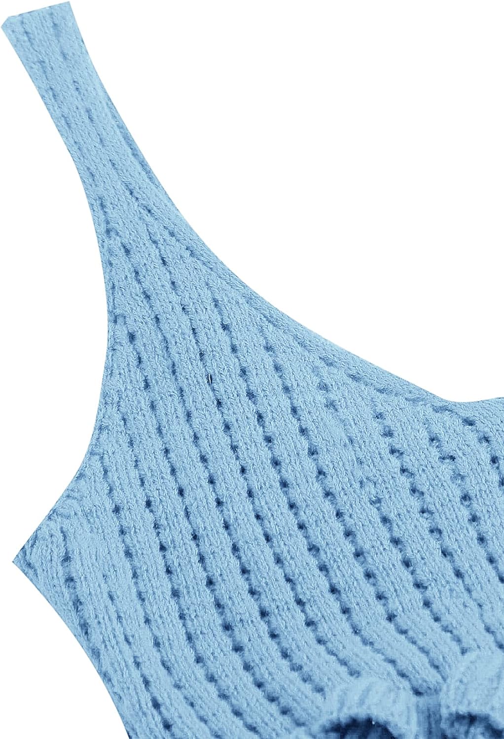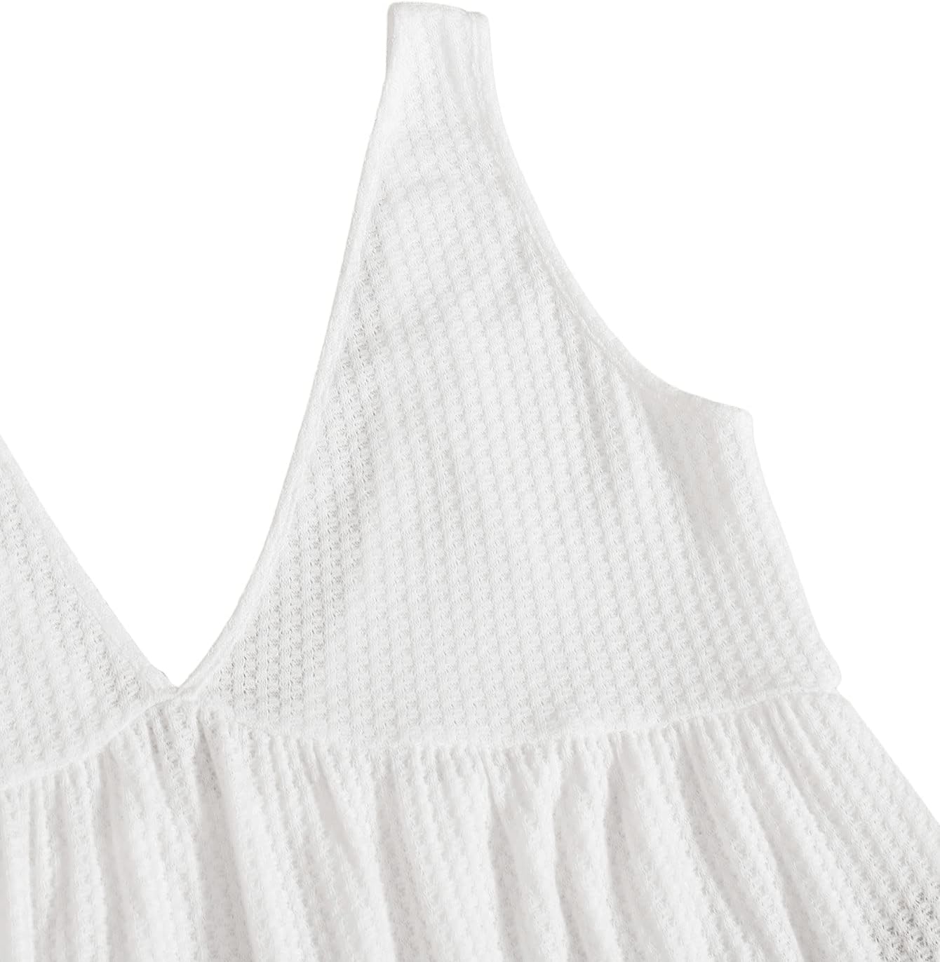 SweatyRocks Women's Casual Knit Top Sleeveless Ruffle Hem V Neck Peplum Crop Tank Top