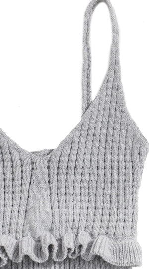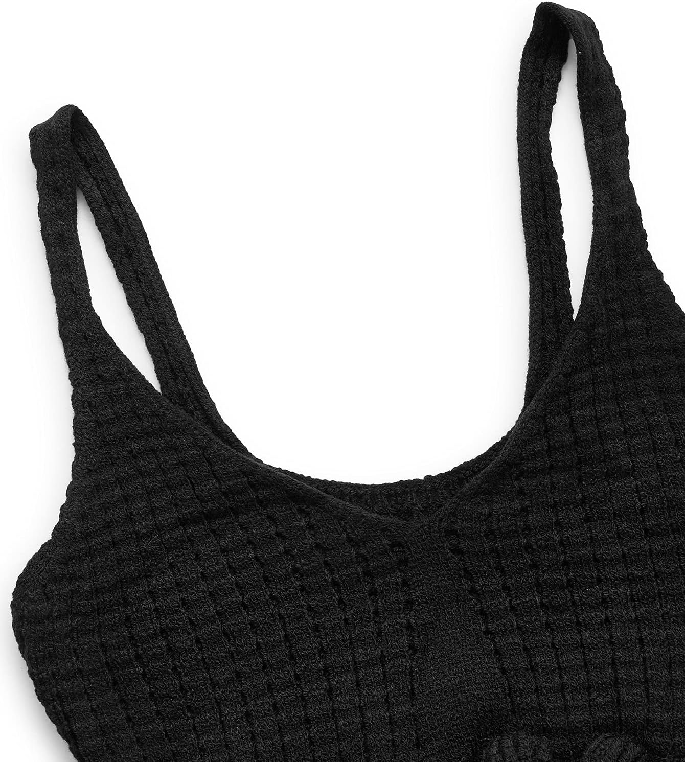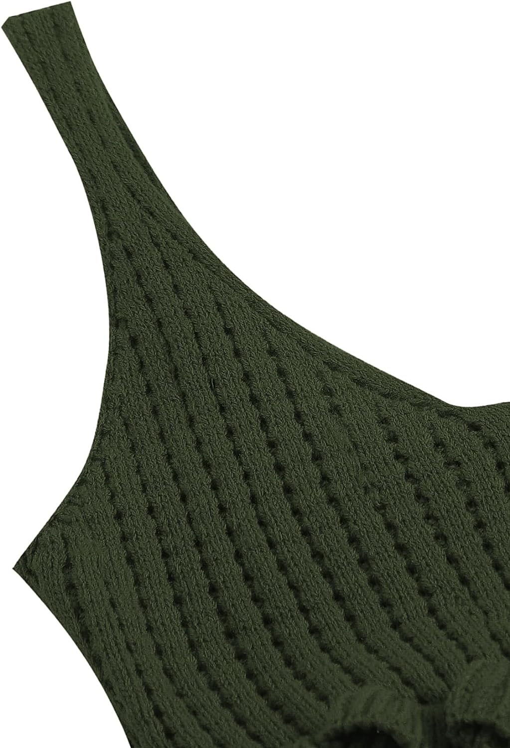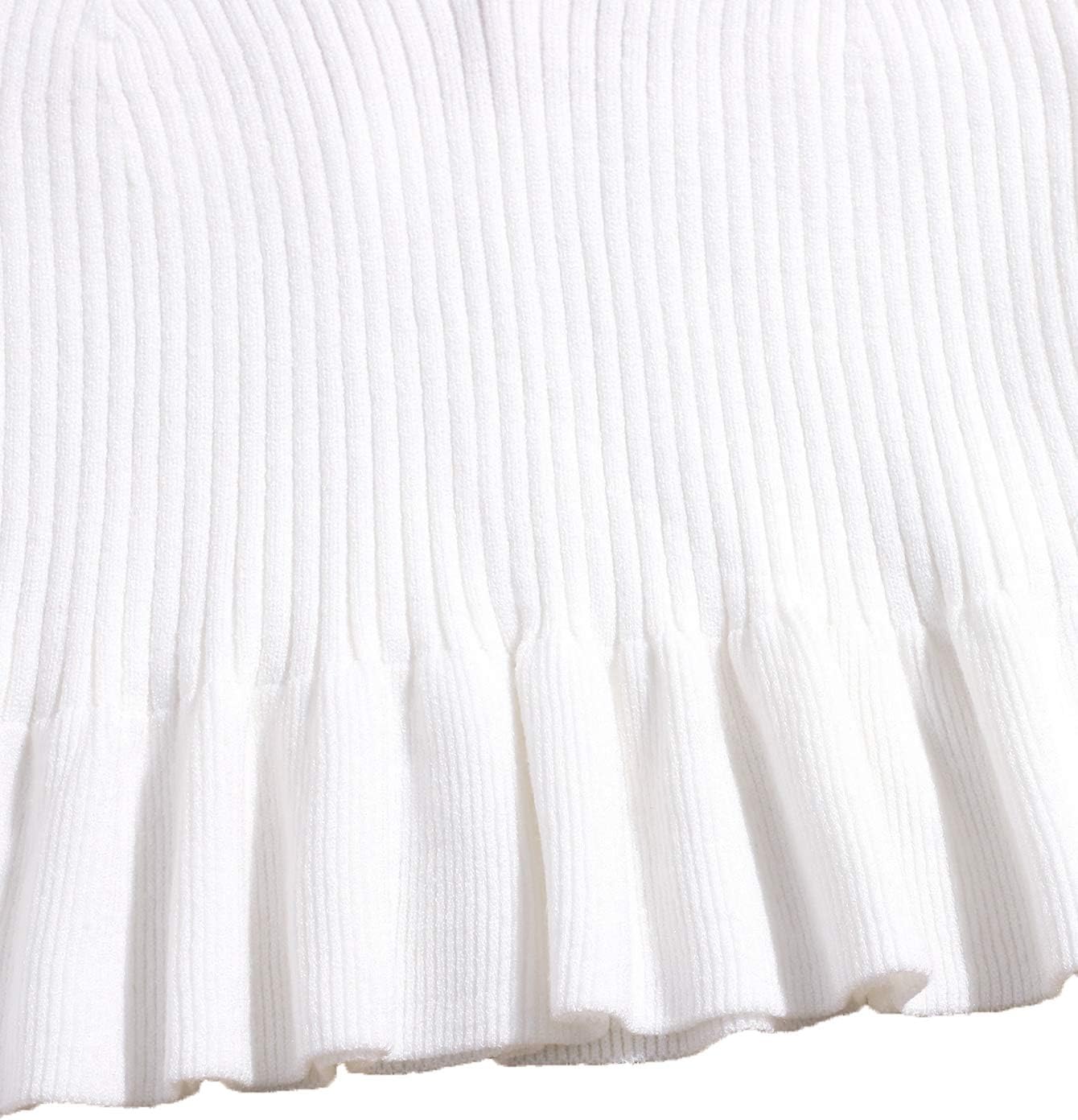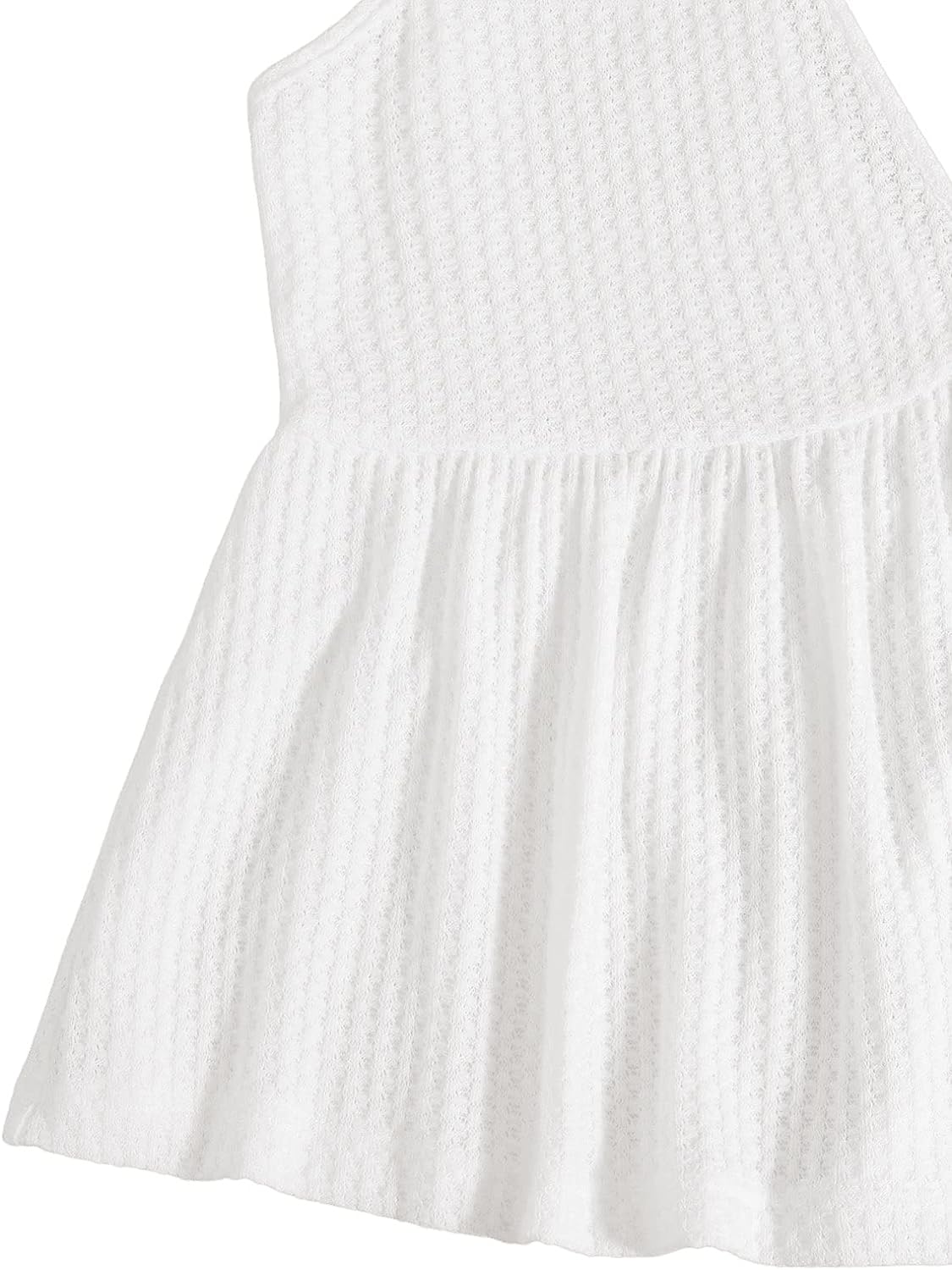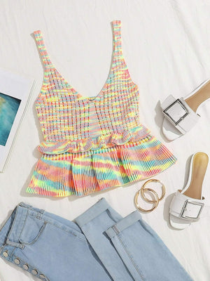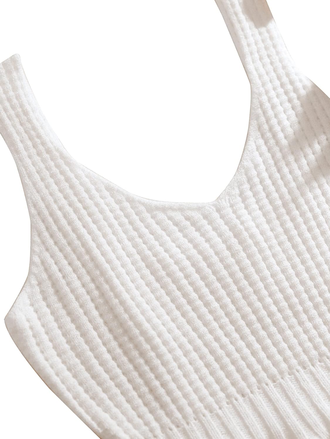 SweatyRocks Women's Casual Knit Top Sleeveless Ruffle Hem V Neck Peplum Crop Tank Top