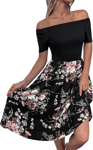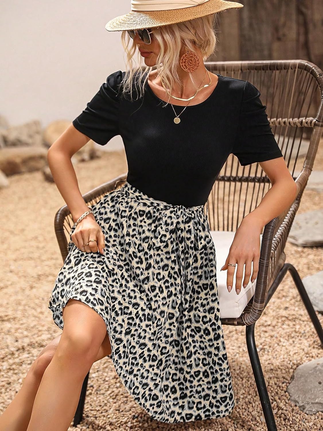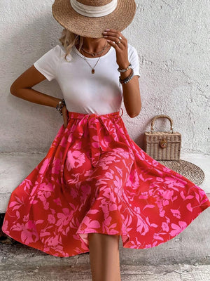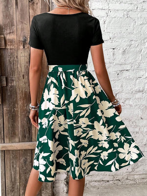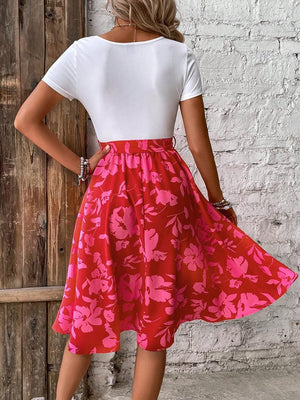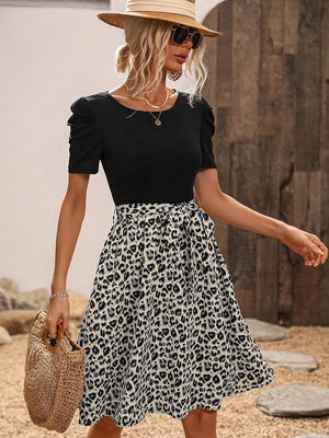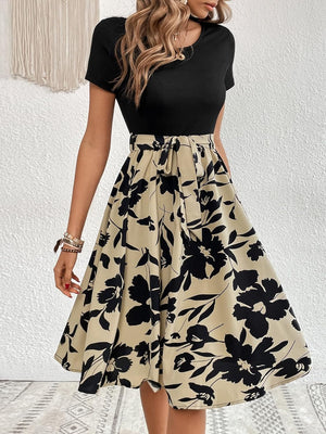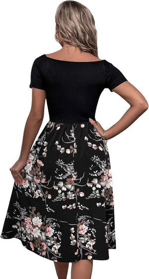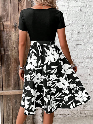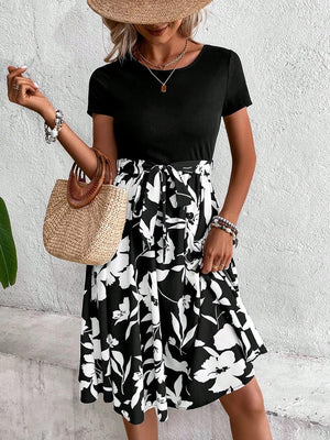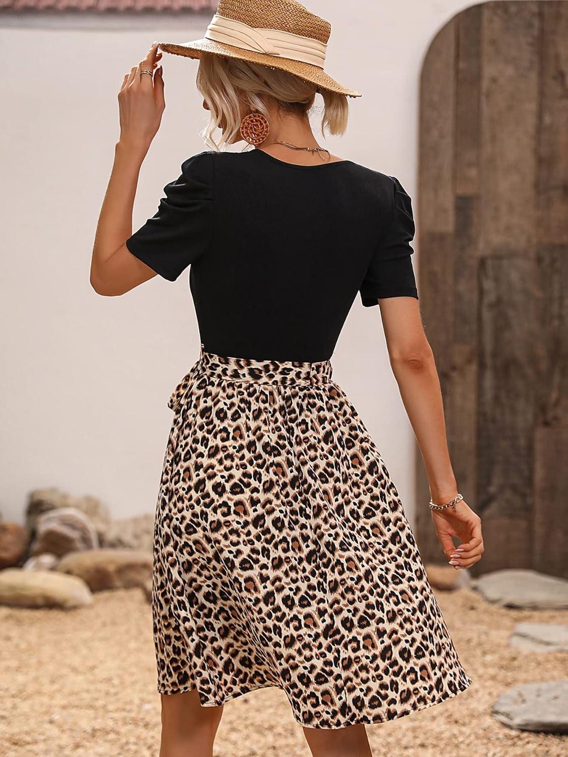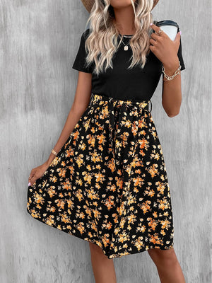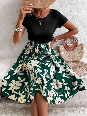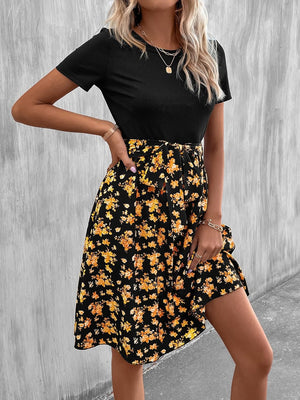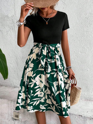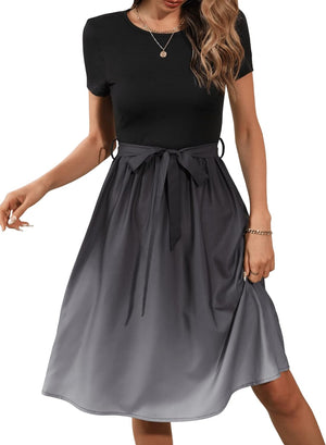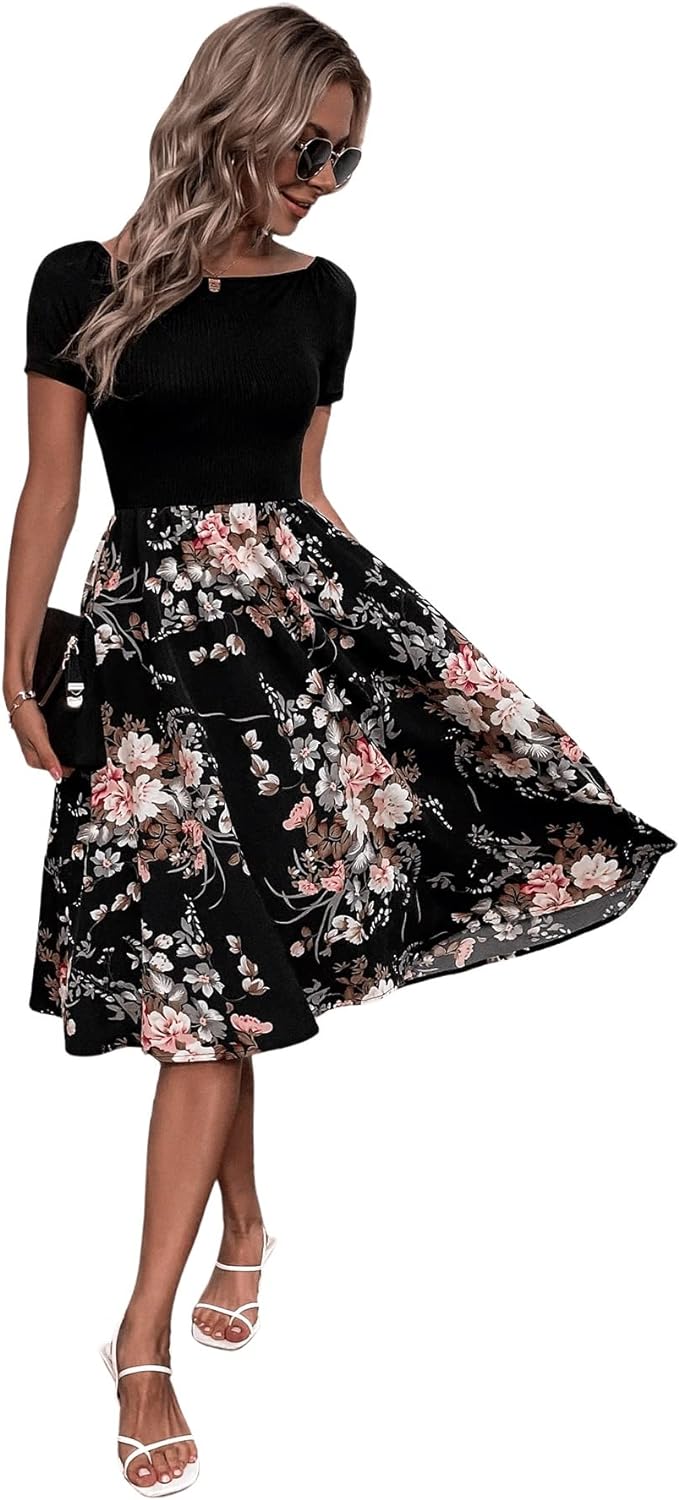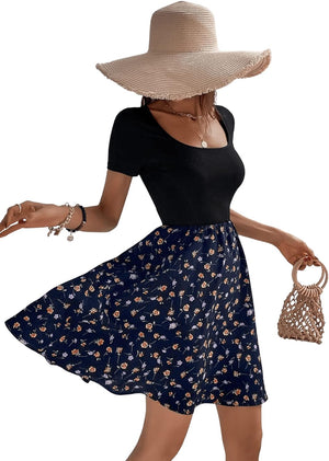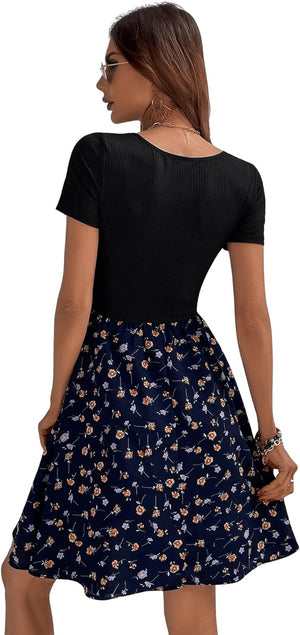 SweatyRocks Women's Graphic Short Sleeve Belted Mini Dress A Line Flared Skater Dresses