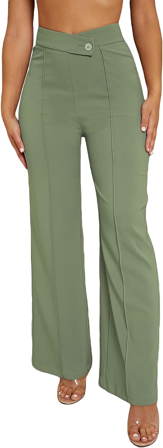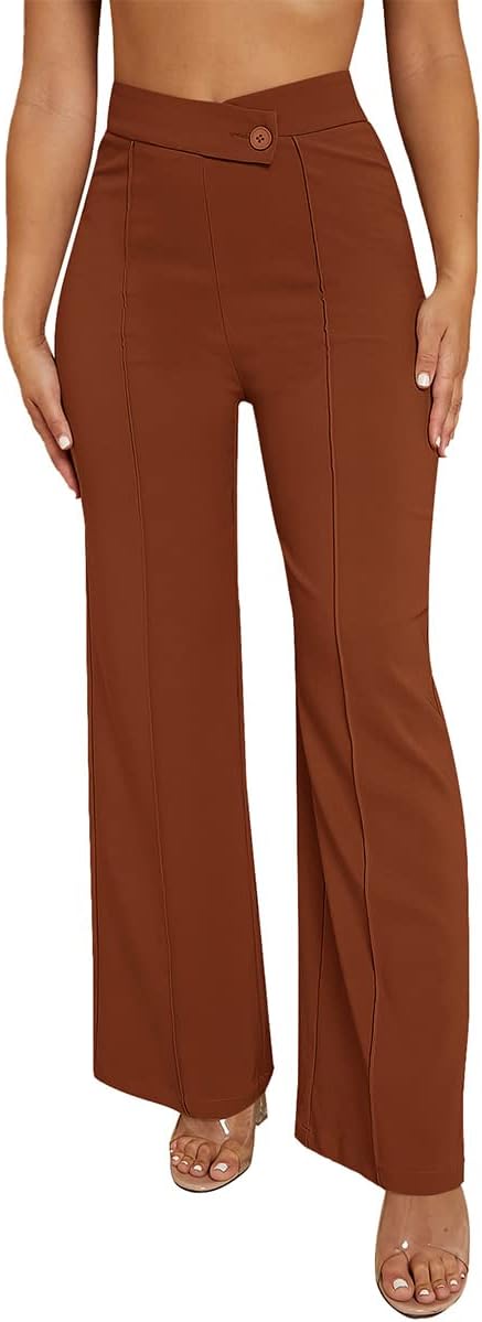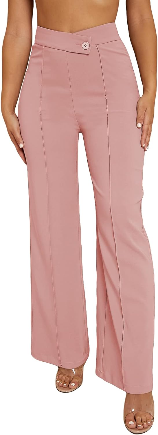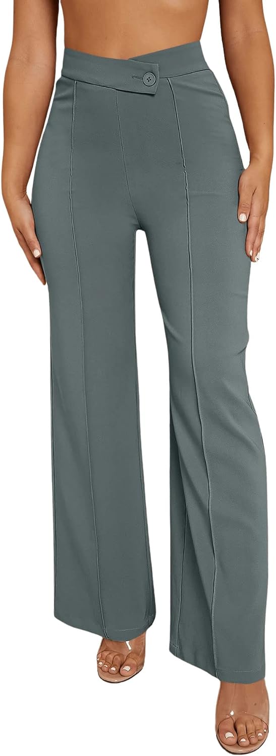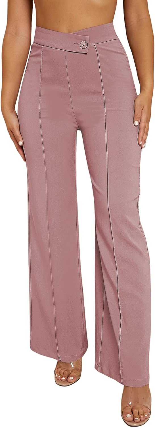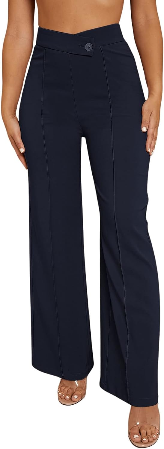 SweatyRocks Women's Overlap Waist Seam Front Palazzo Wide Leg Pants High Waist Long Pant Casual Trousers