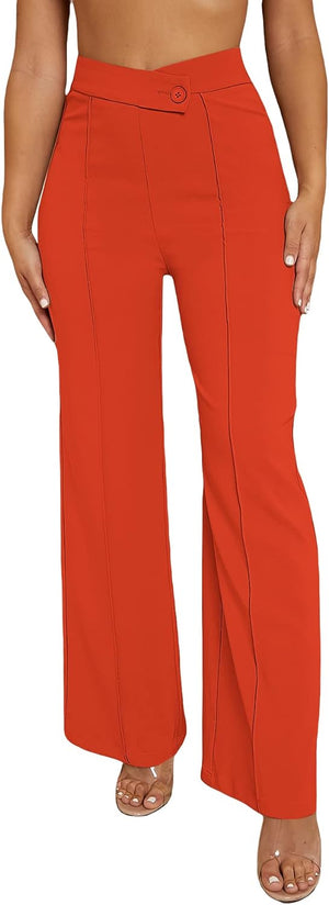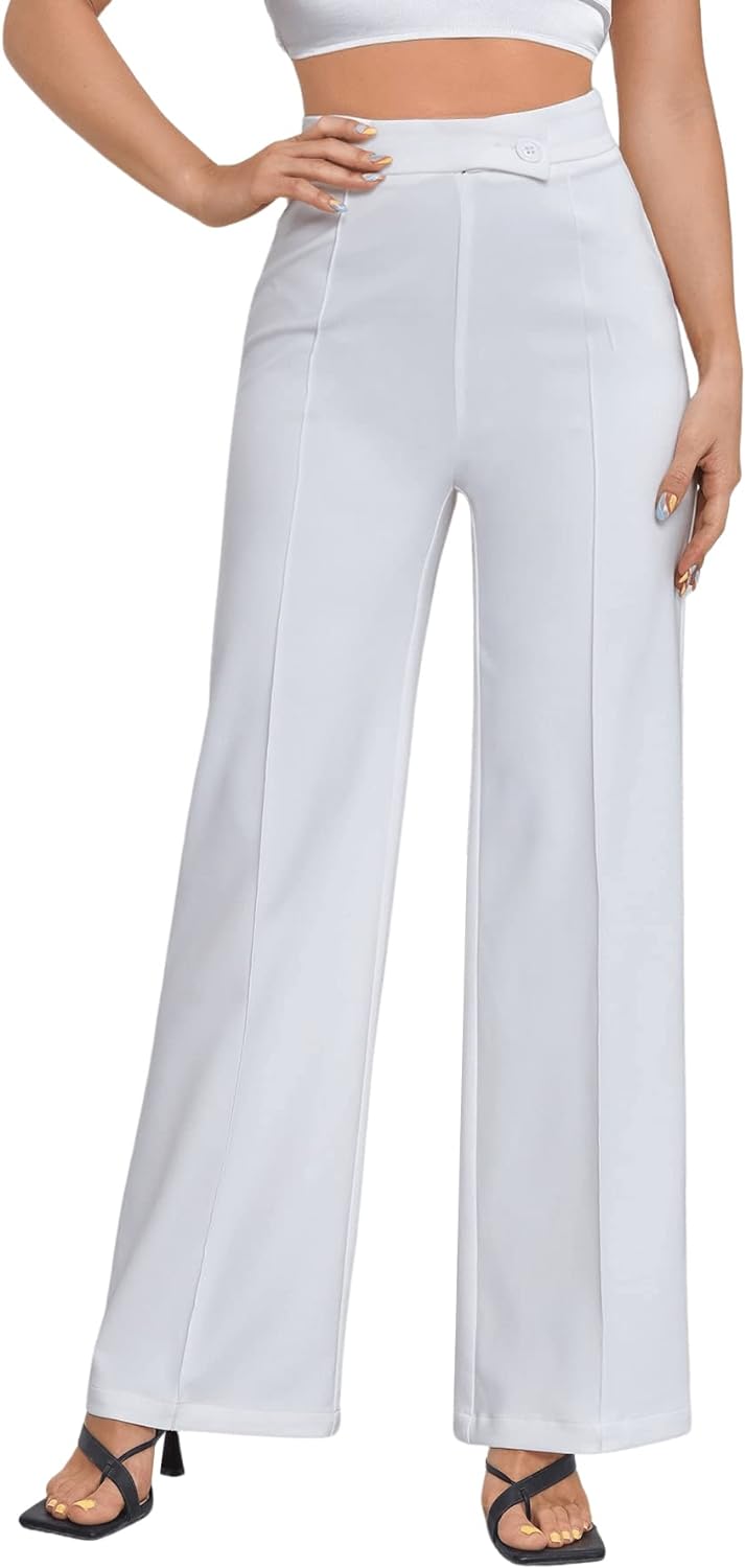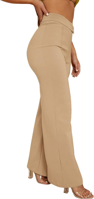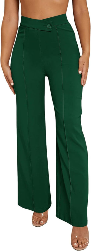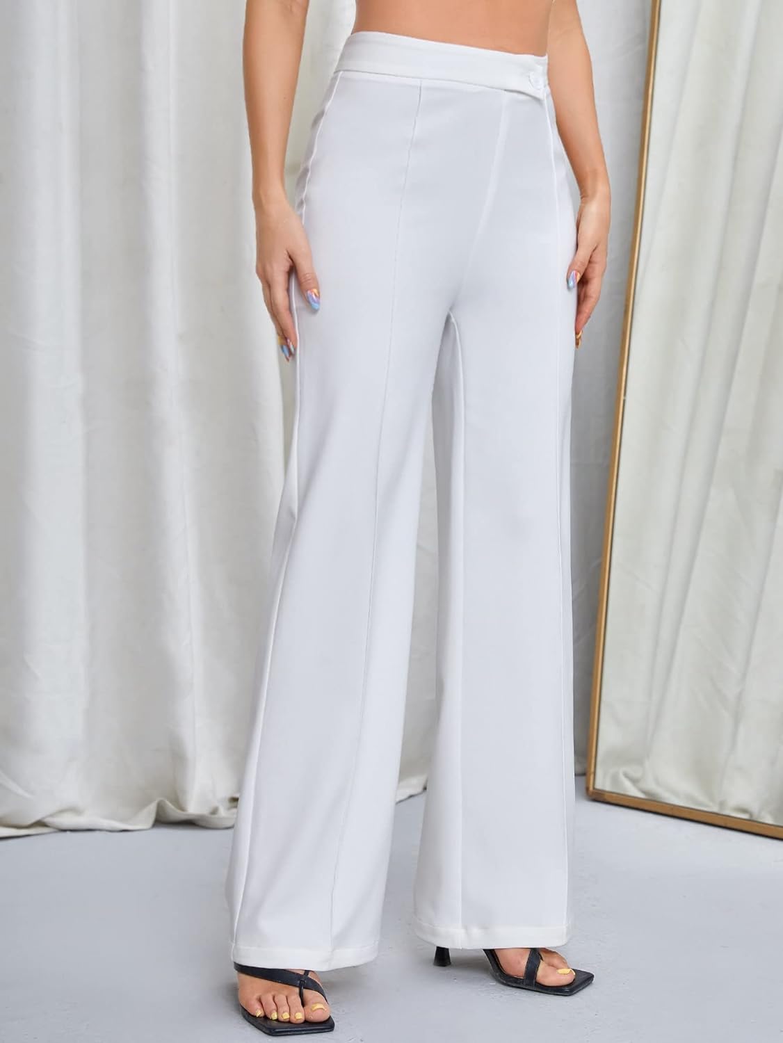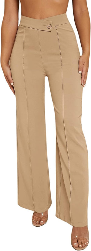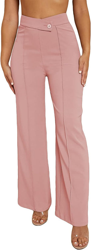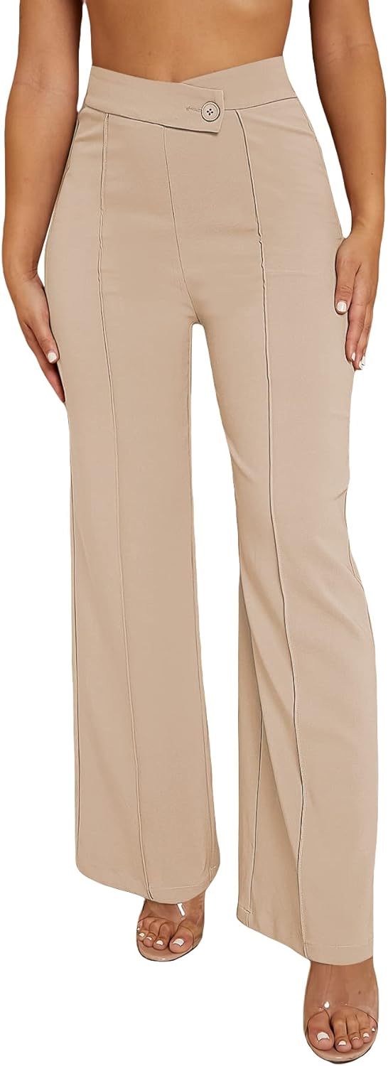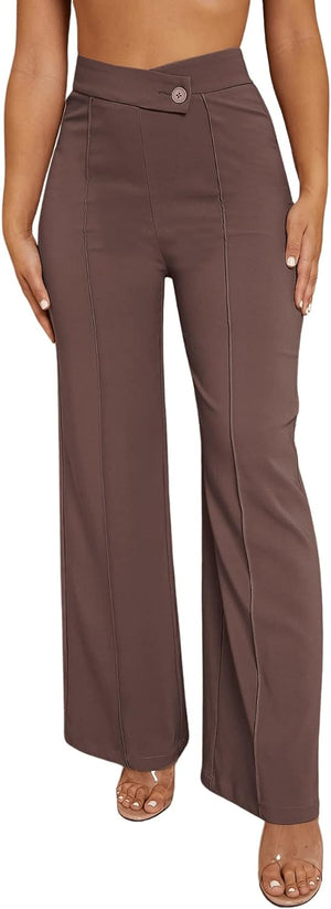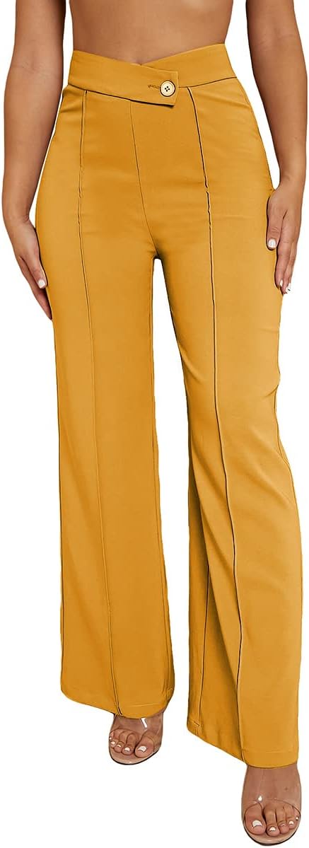 SweatyRocks Women's Overlap Waist Seam Front Palazzo Wide Leg Pants High Waist Long Pant Casual Trousers