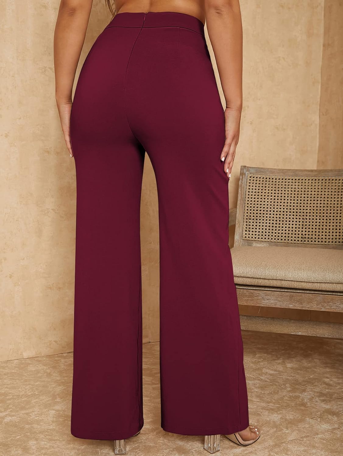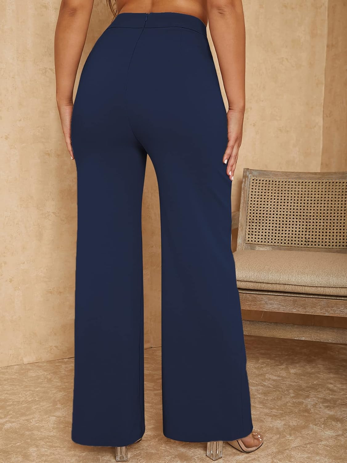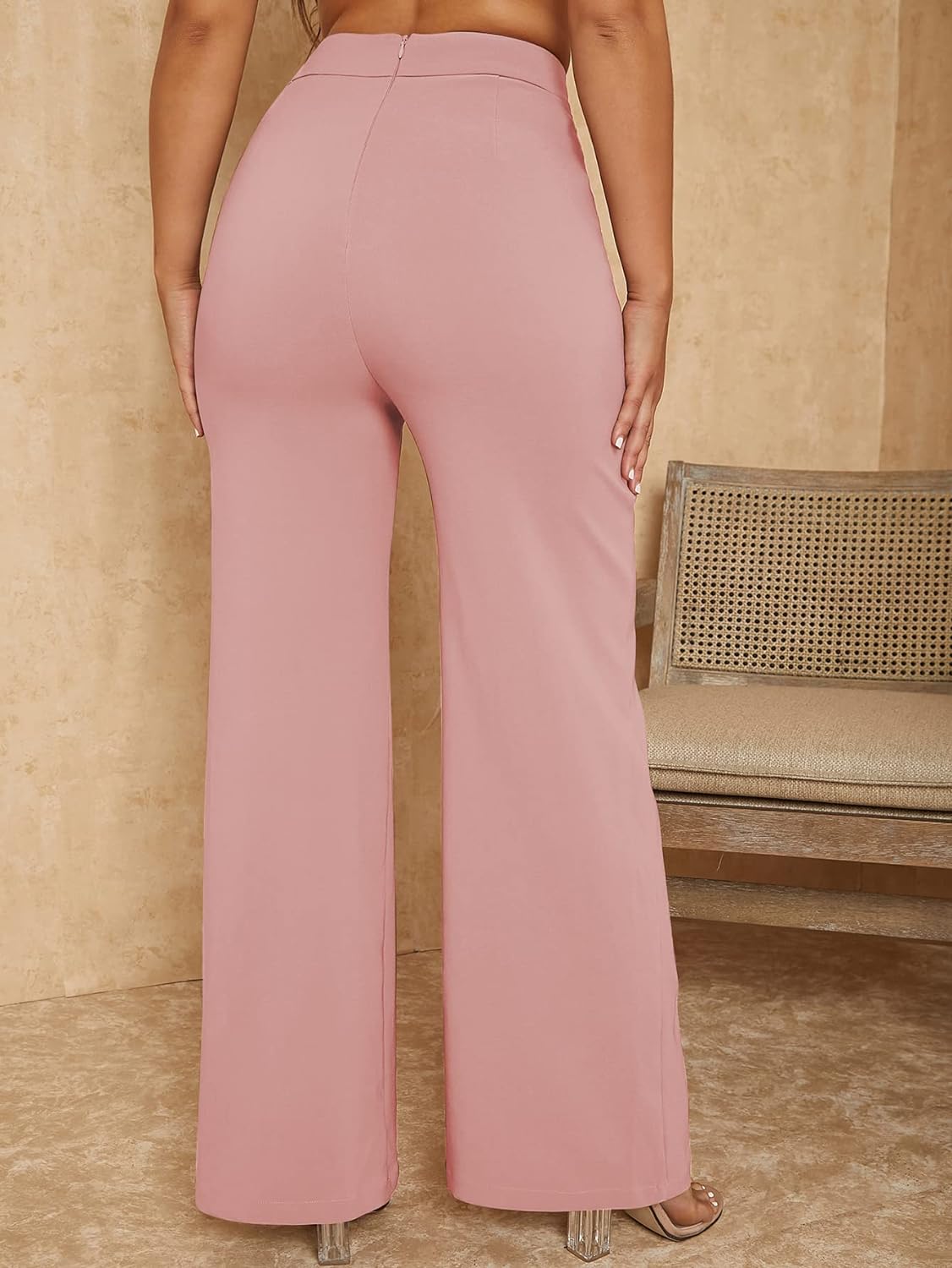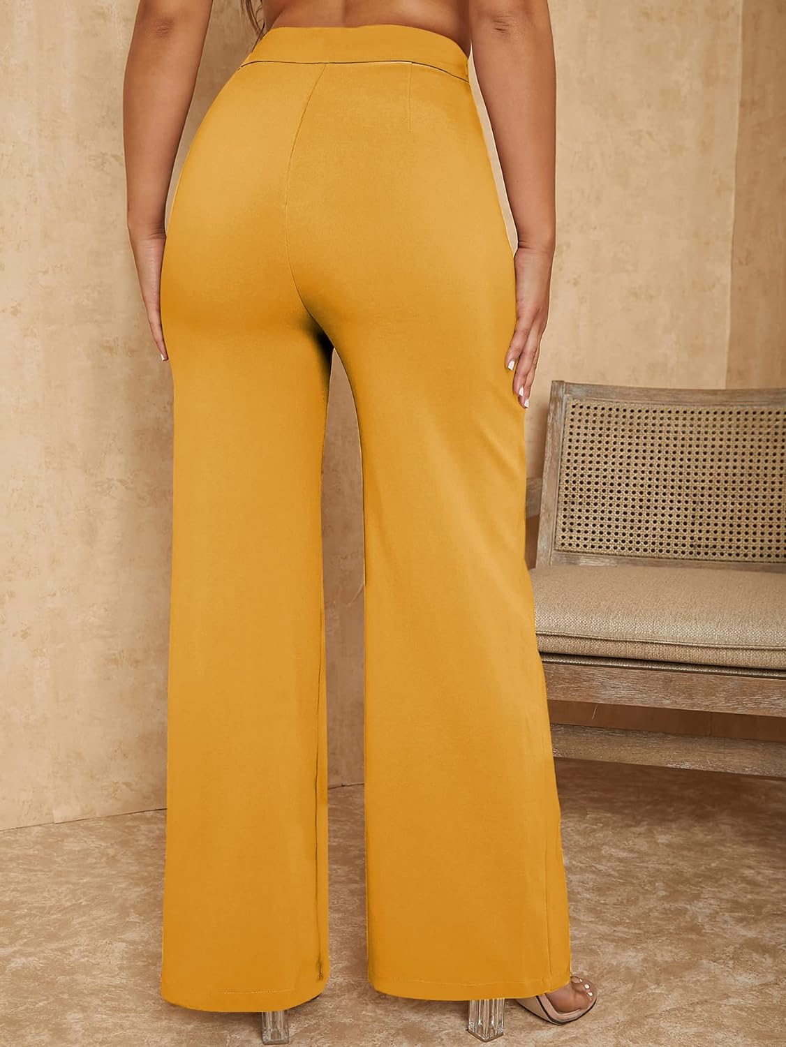 SweatyRocks Women's Overlap Waist Seam Front Palazzo Wide Leg Pants High Waist Long Pant Casual Trousers