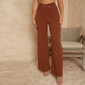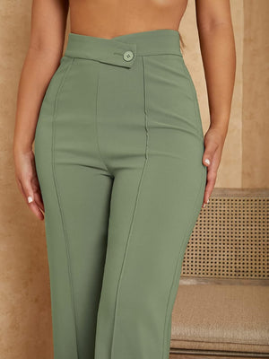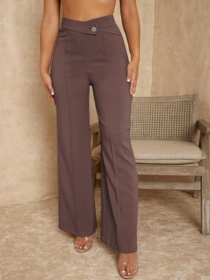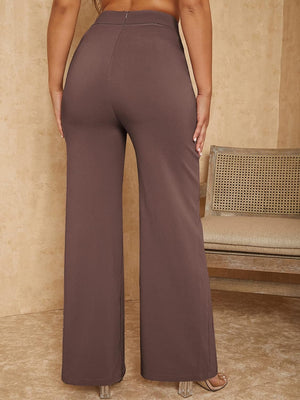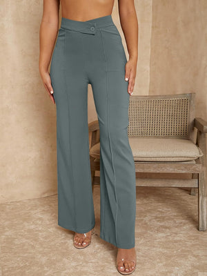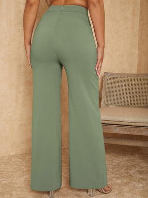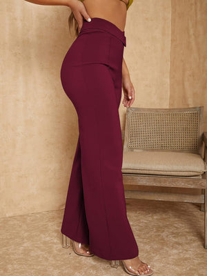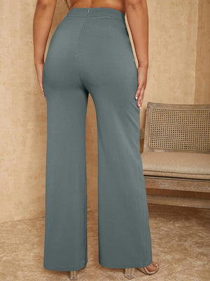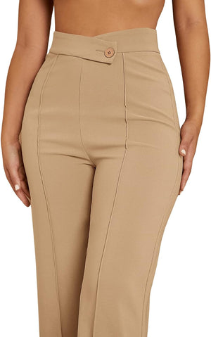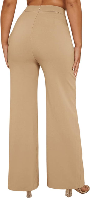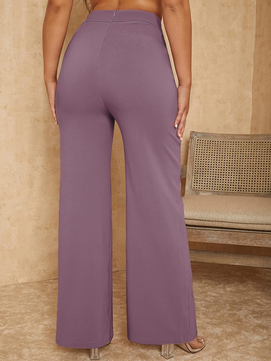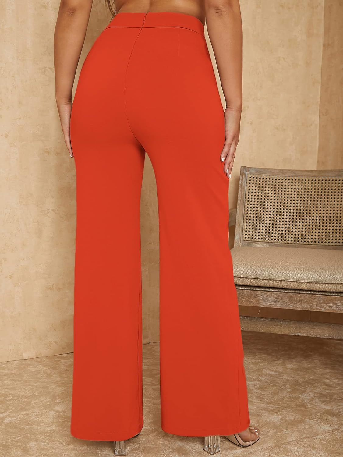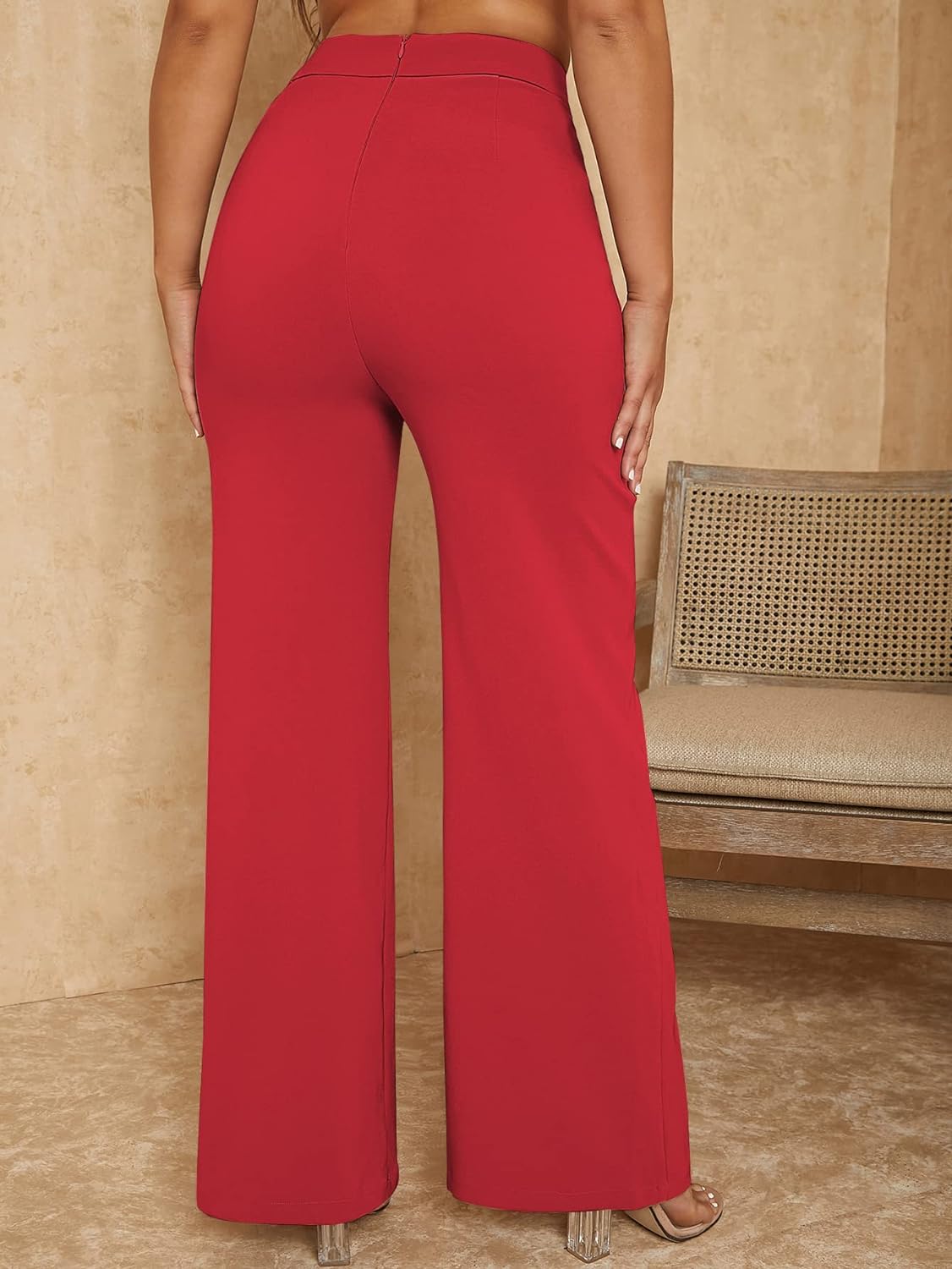 SweatyRocks Women's Overlap Waist Seam Front Palazzo Wide Leg Pants High Waist Long Pant Casual Trousers