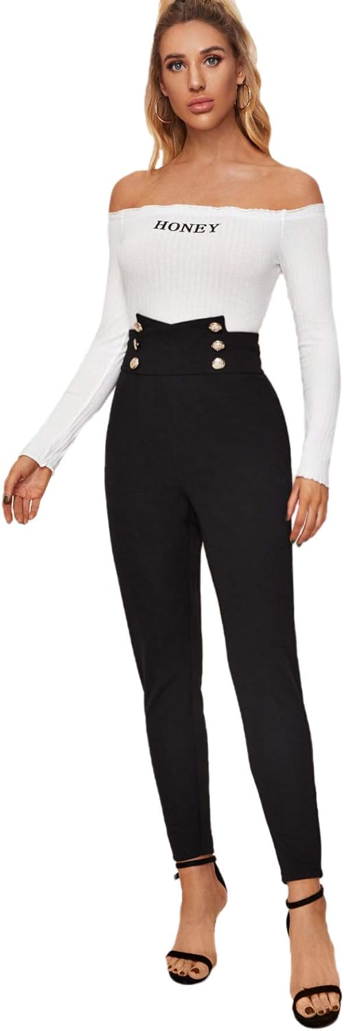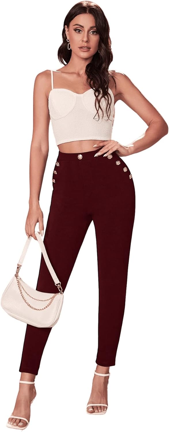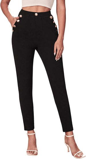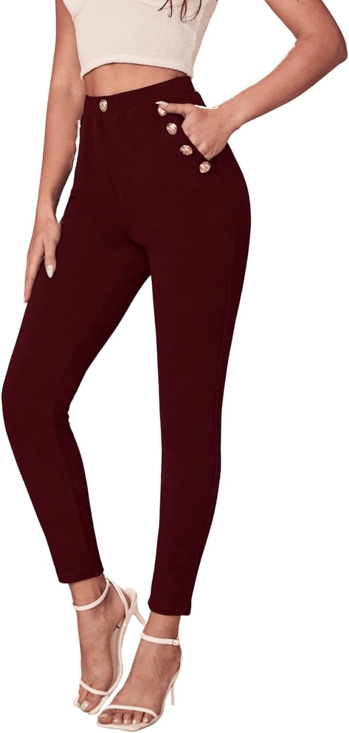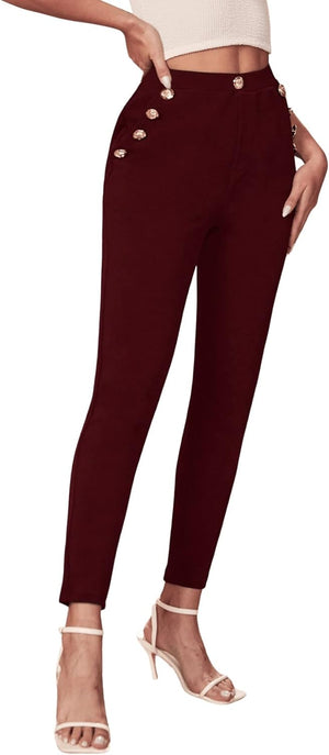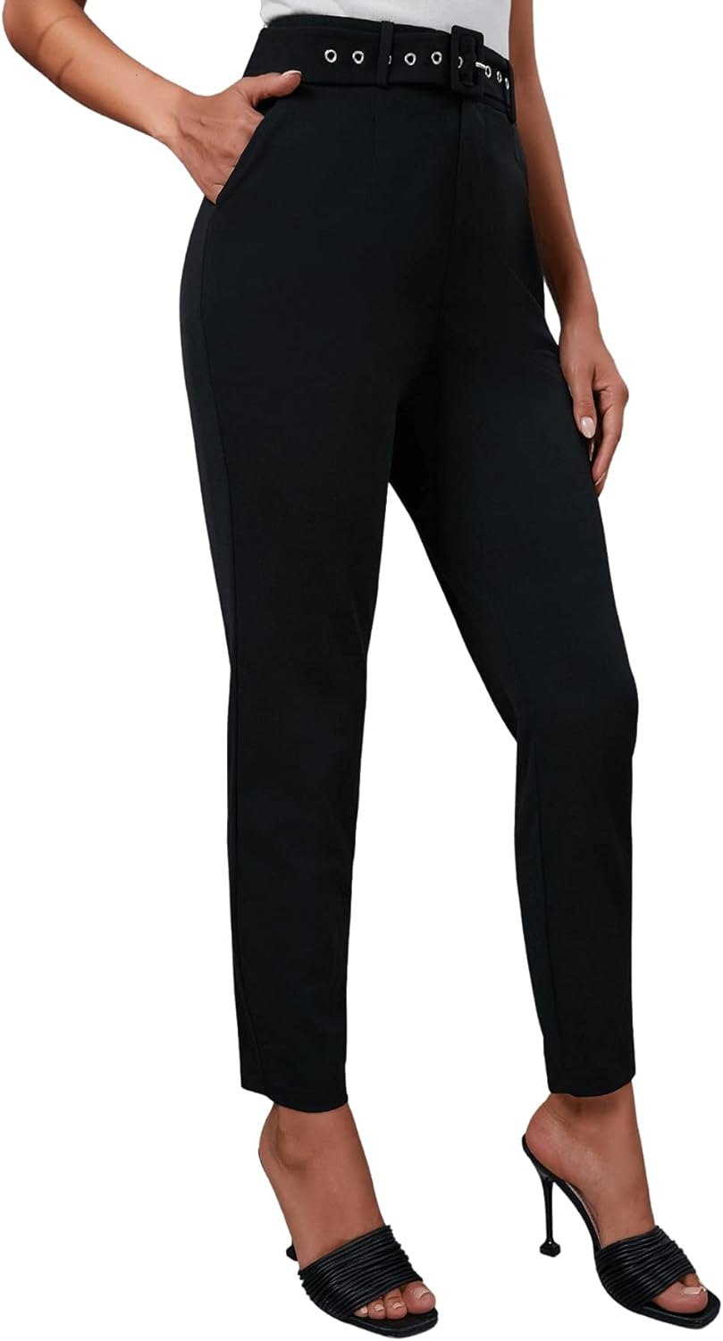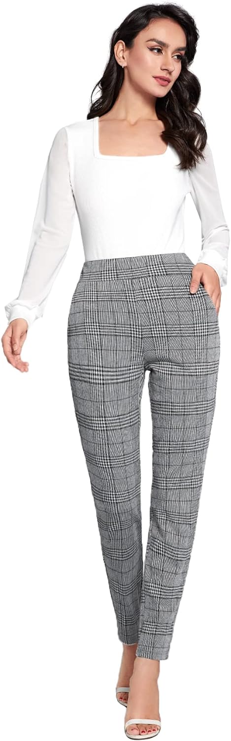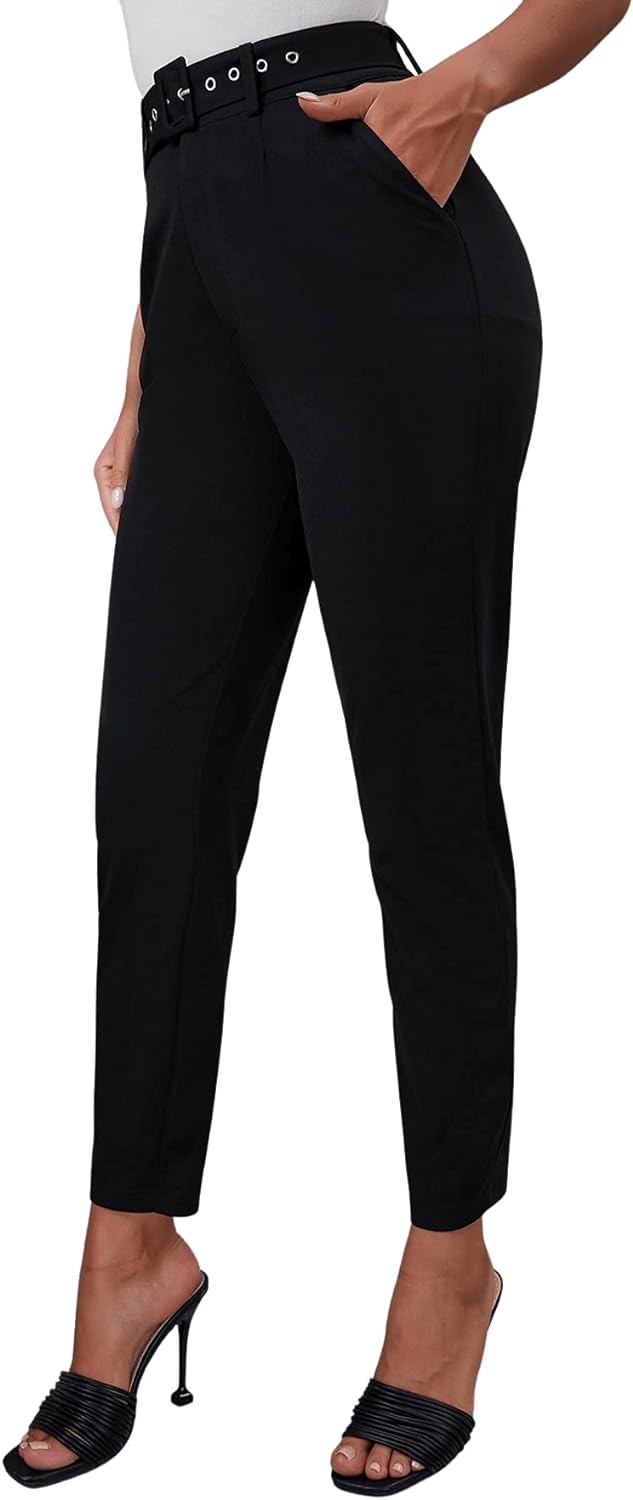 SweatyRocks Women's Stretch Work Pants High Waist Casual Slim Fit Pants
