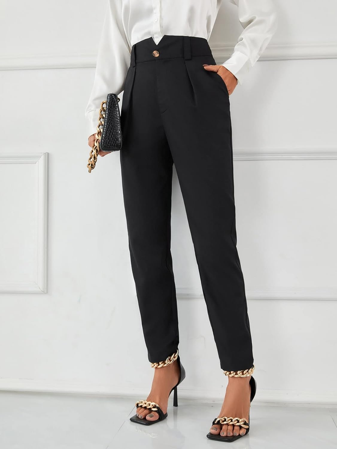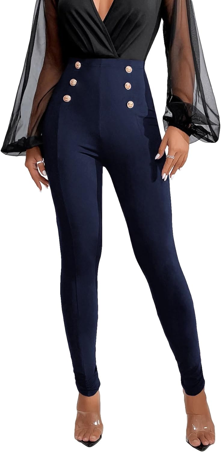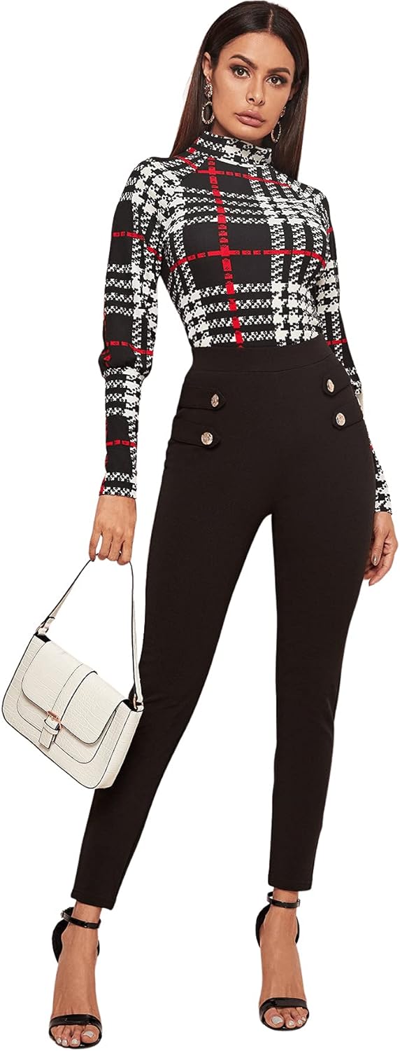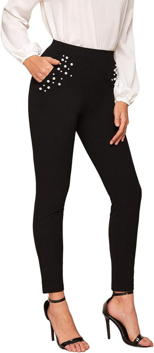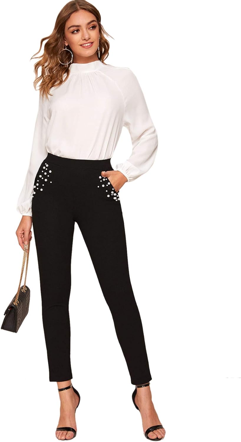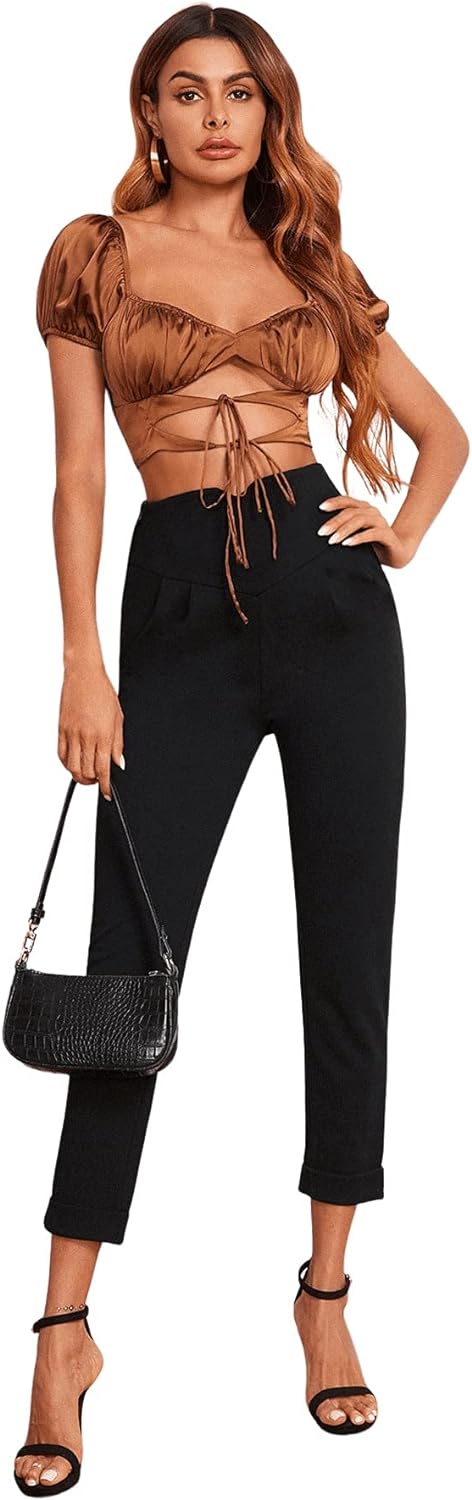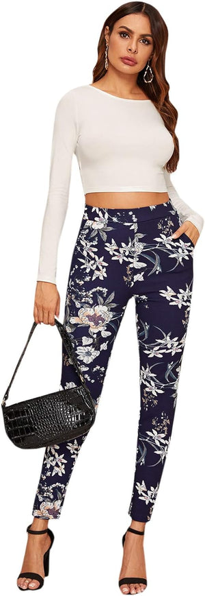 SweatyRocks Women's Stretch Work Pants High Waist Casual Slim Fit Pants