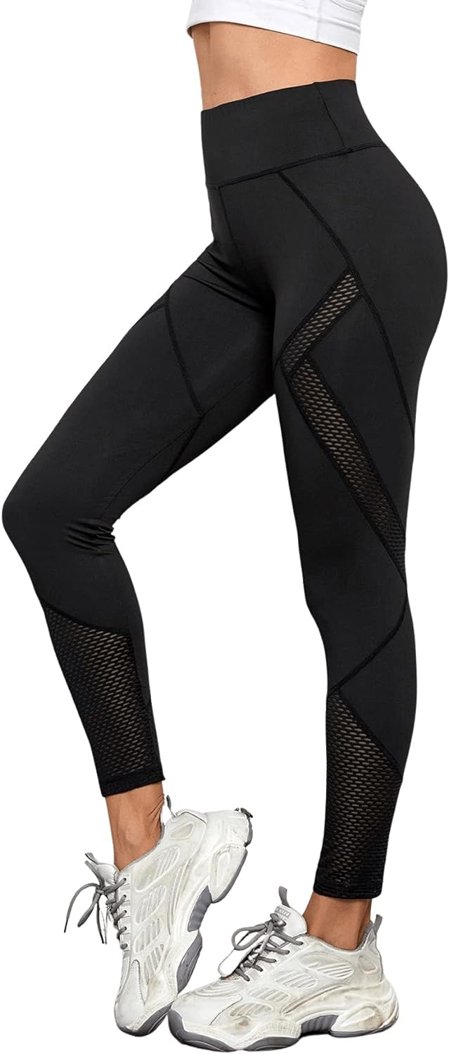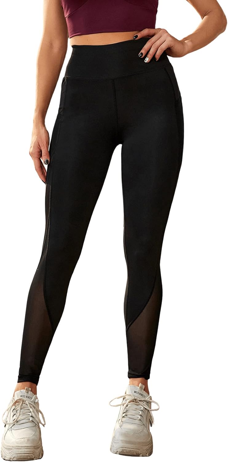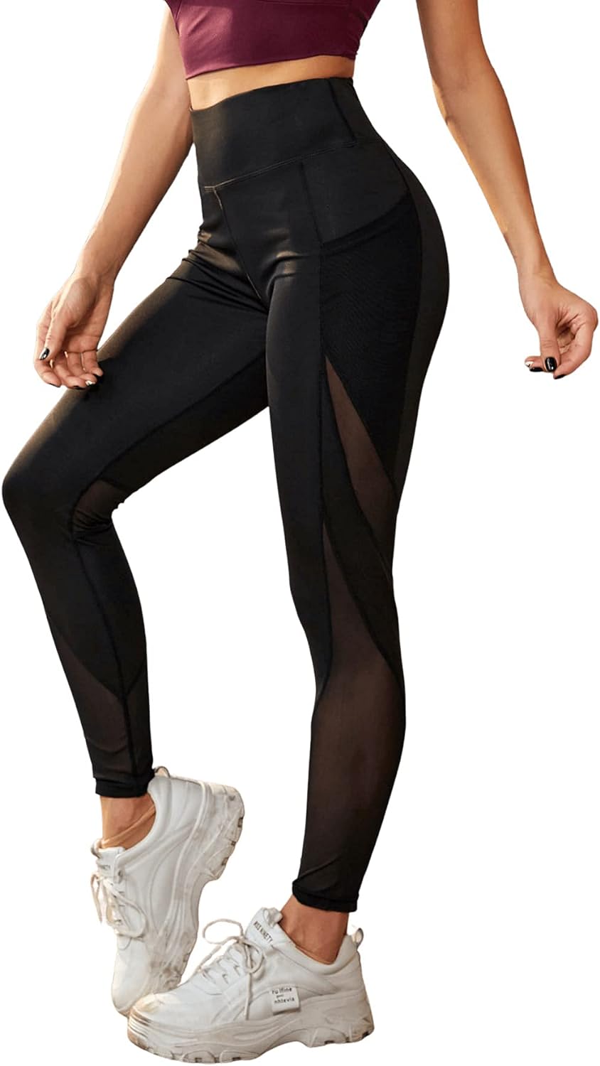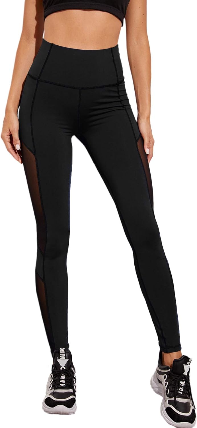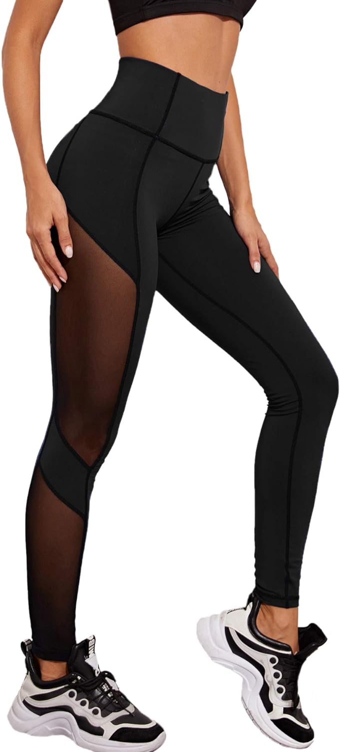 SweatyRocks Women's Stretchy Skinny Sheer Mesh Insert Workout Leggings Yoga Tights