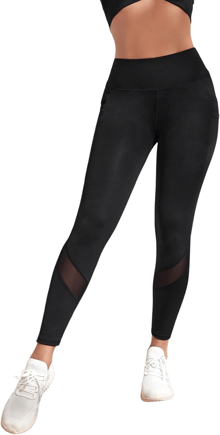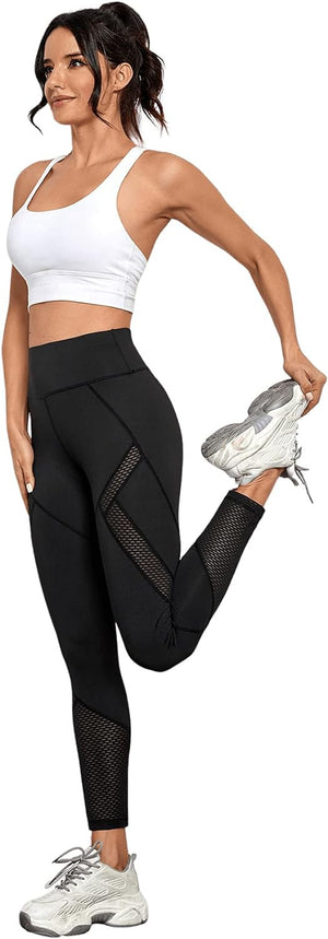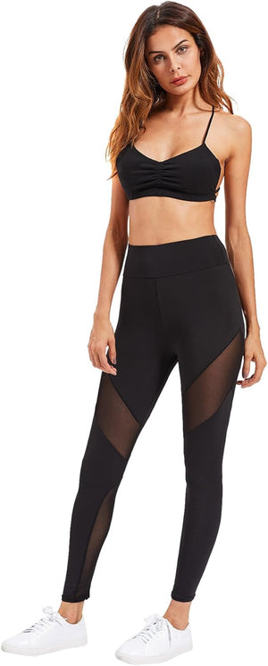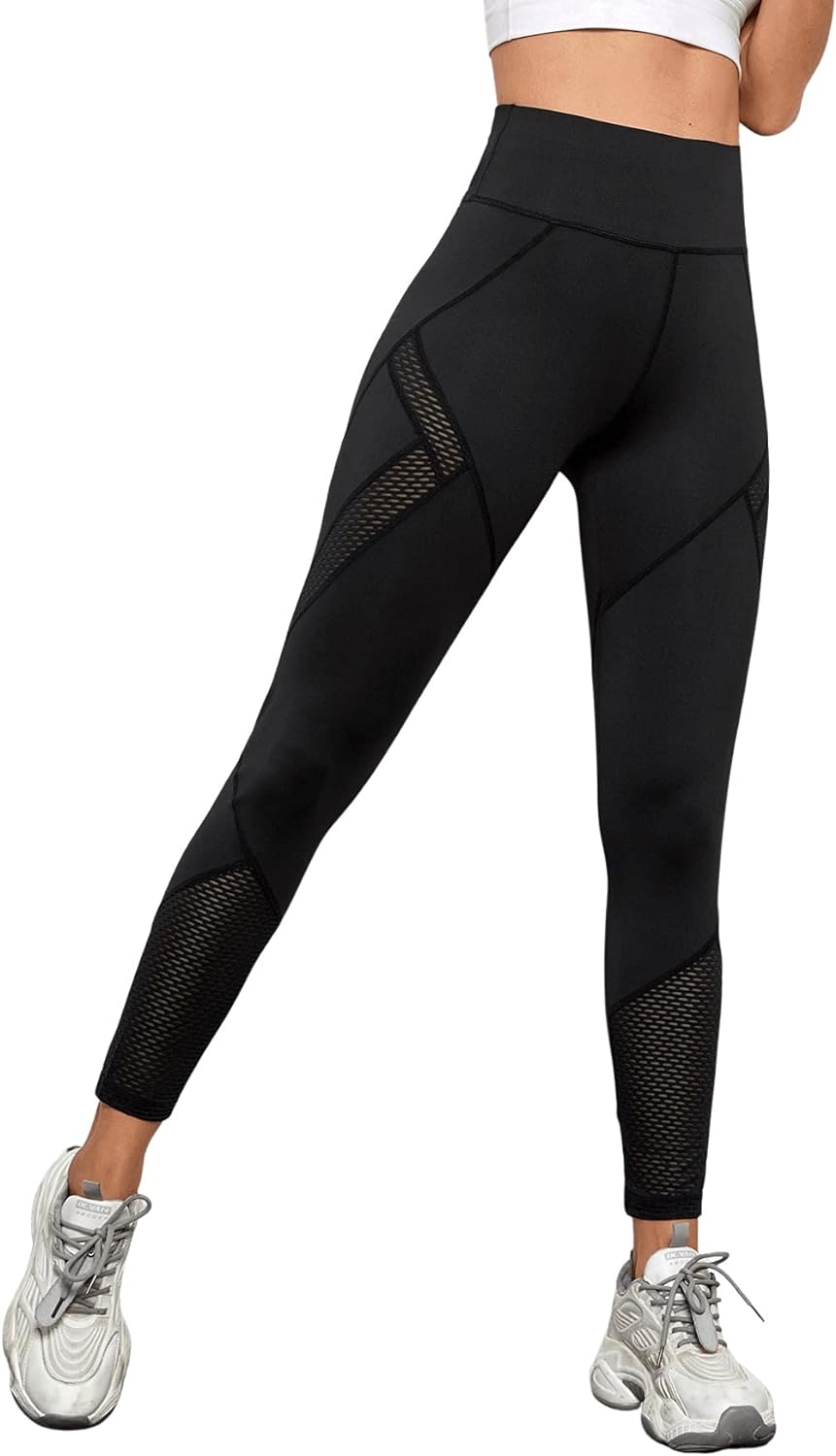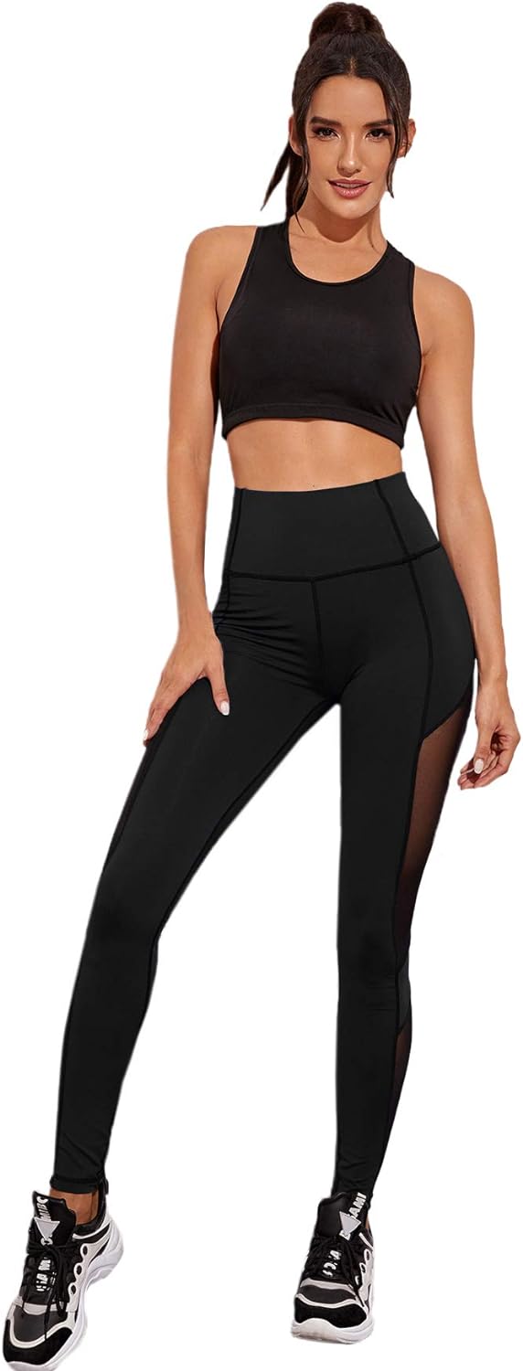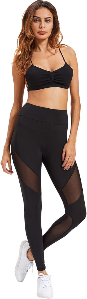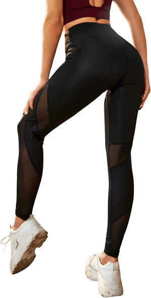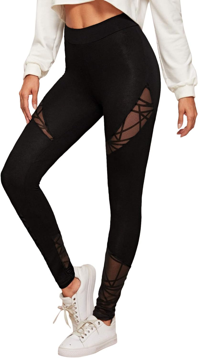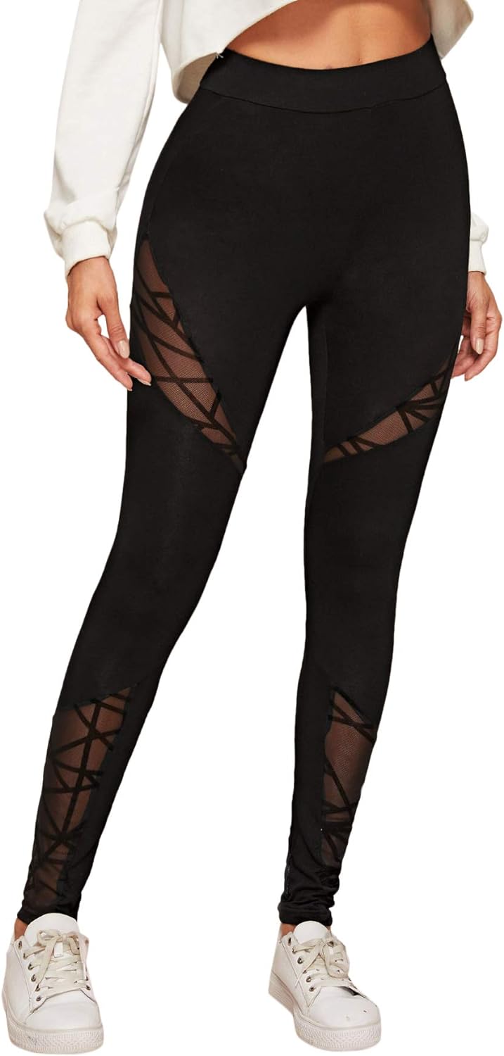 SweatyRocks Women's Stretchy Skinny Sheer Mesh Insert Workout Leggings Yoga Tights