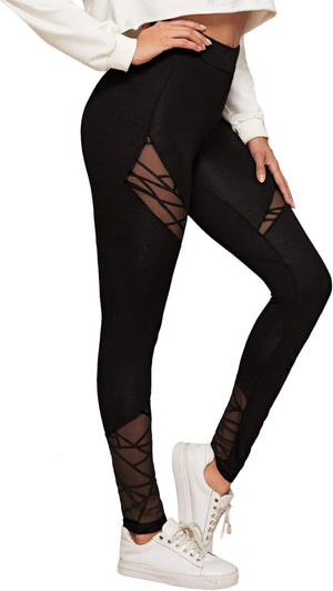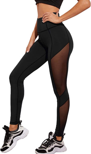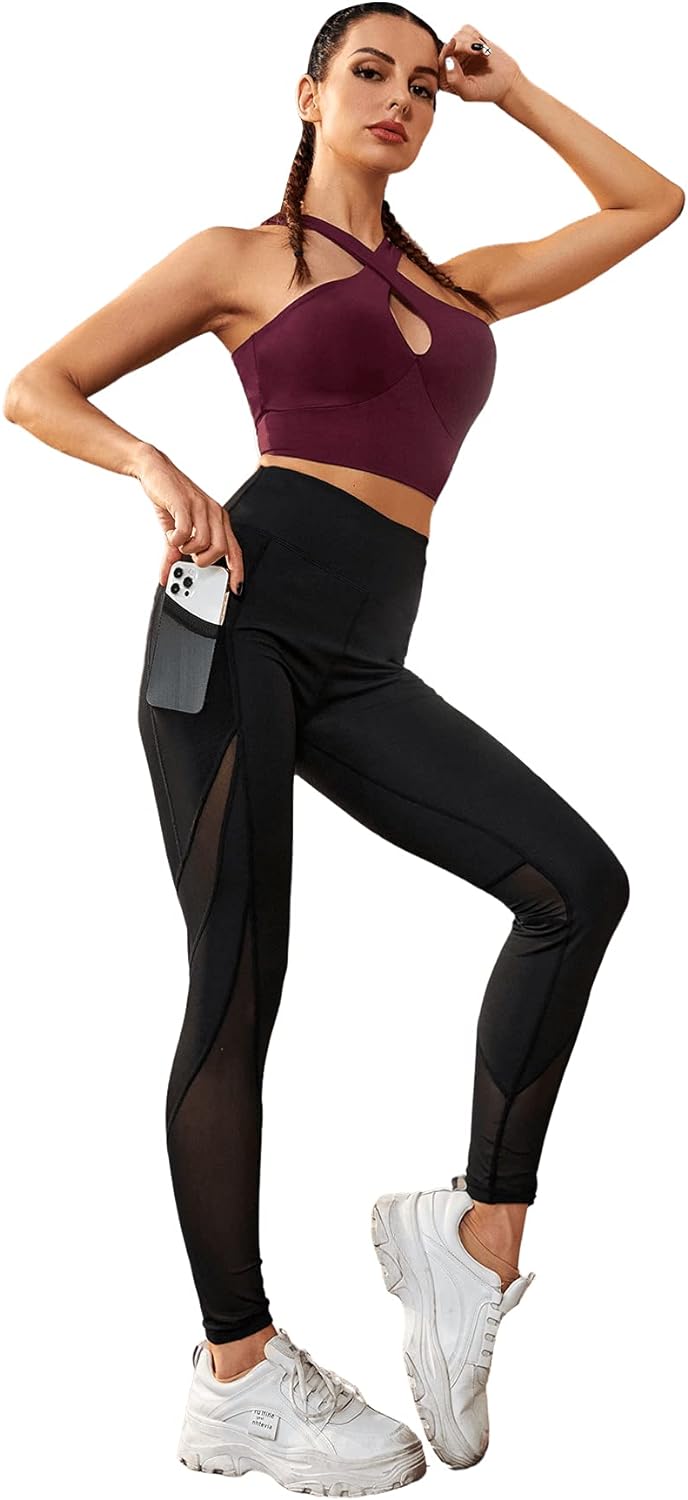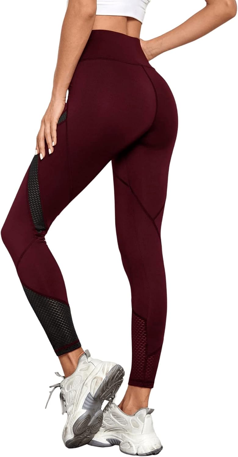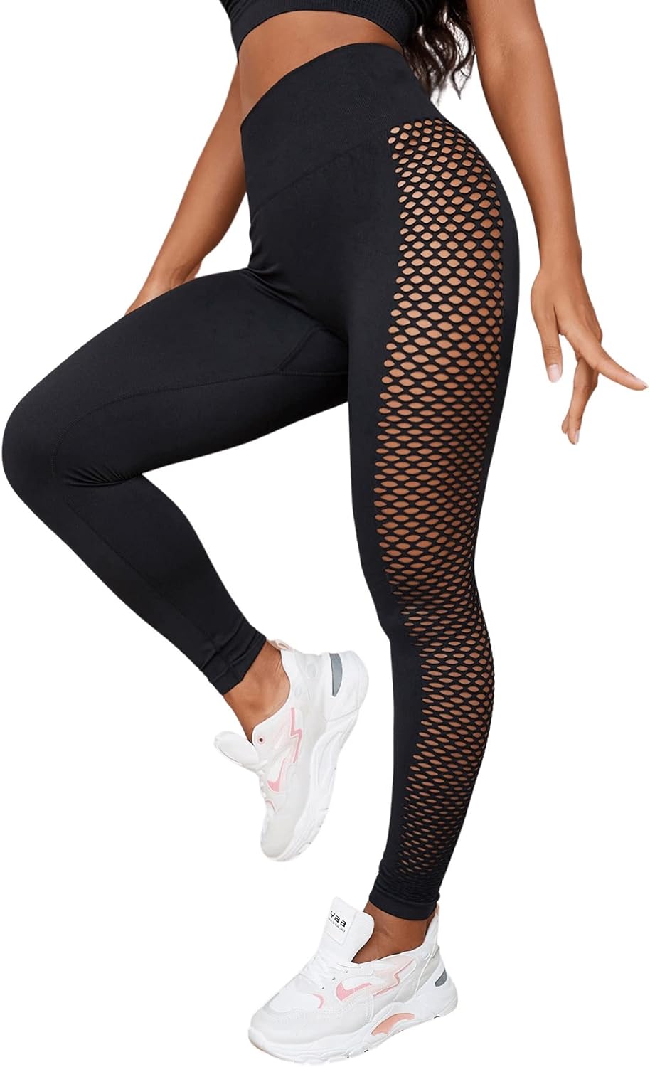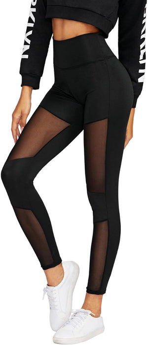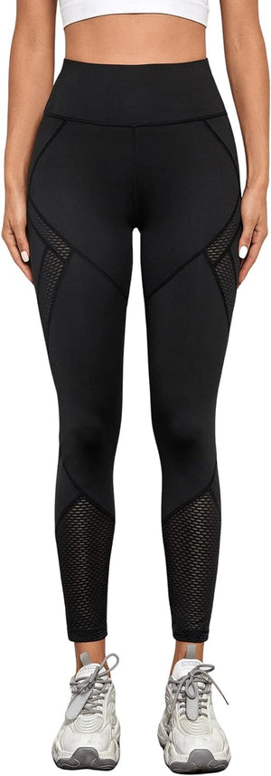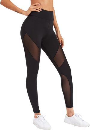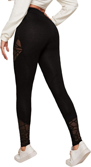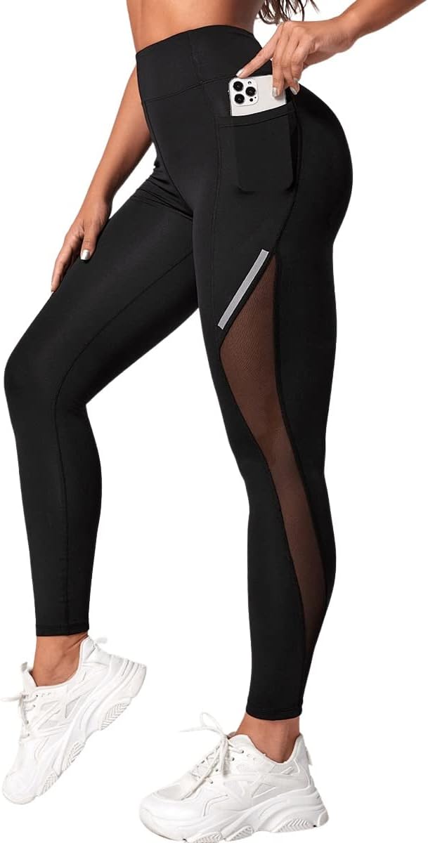 SweatyRocks Women's Stretchy Skinny Sheer Mesh Insert Workout Leggings Yoga Tights