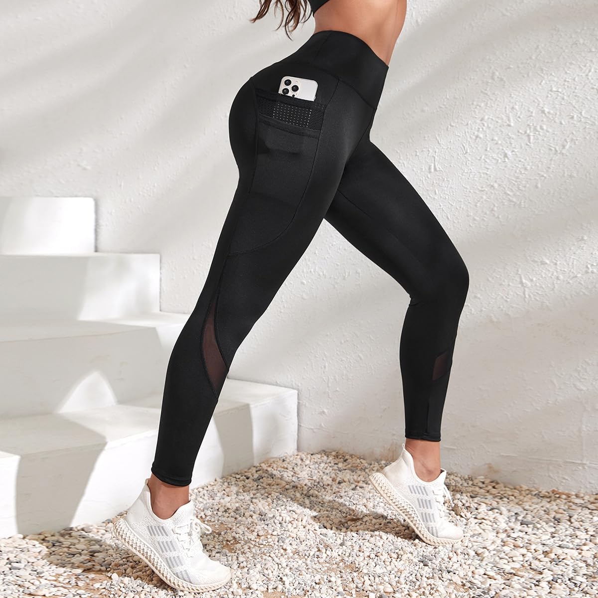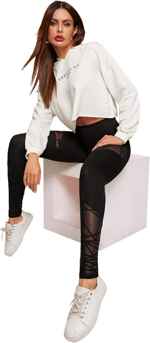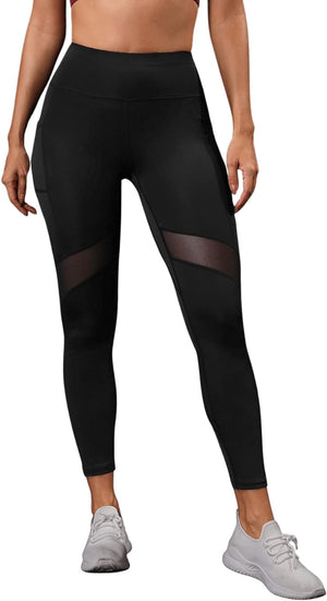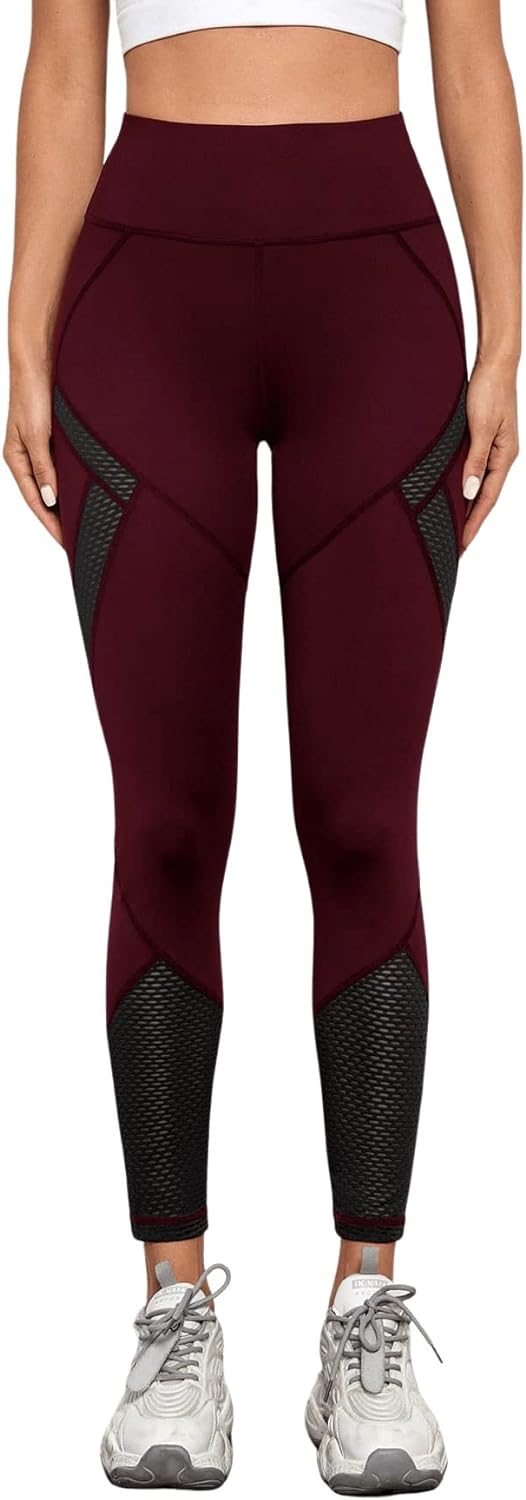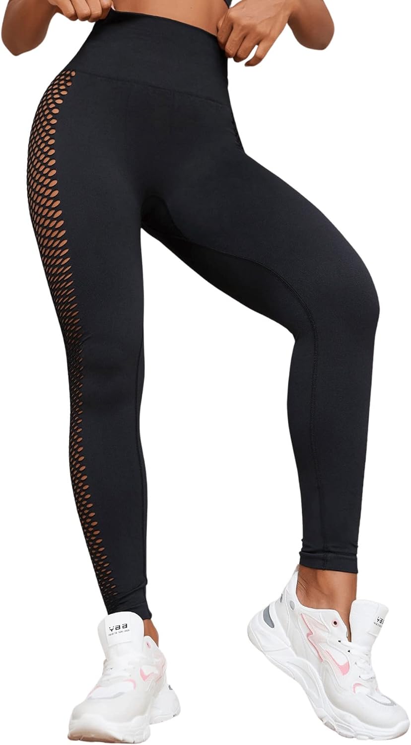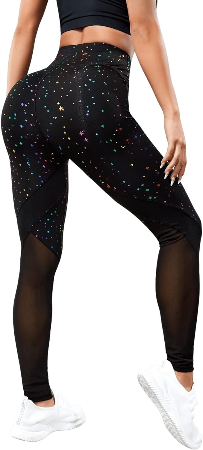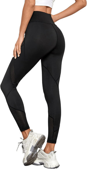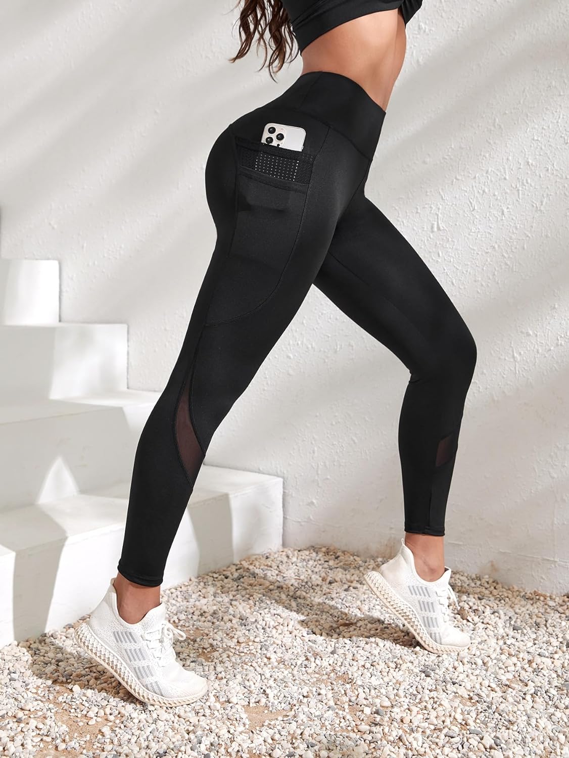 SweatyRocks Women's Stretchy Skinny Sheer Mesh Insert Workout Leggings Yoga Tights