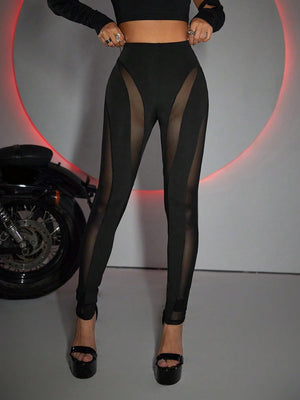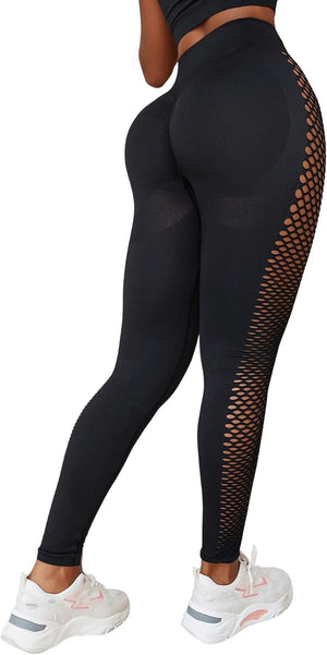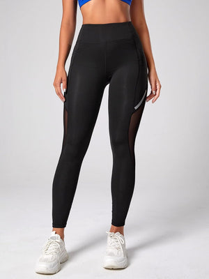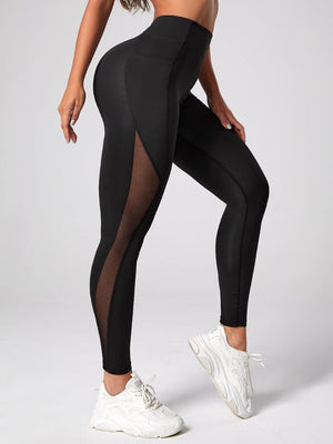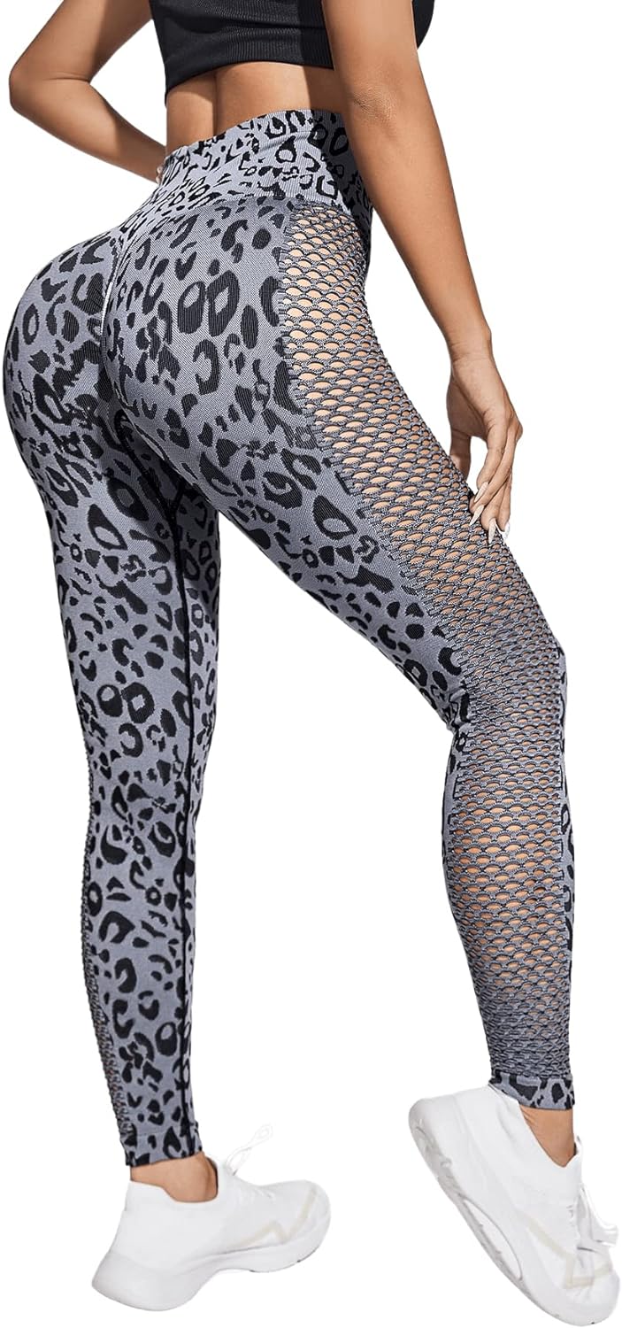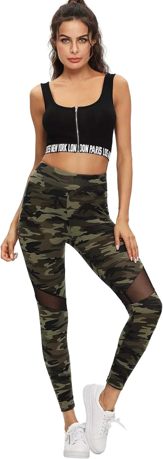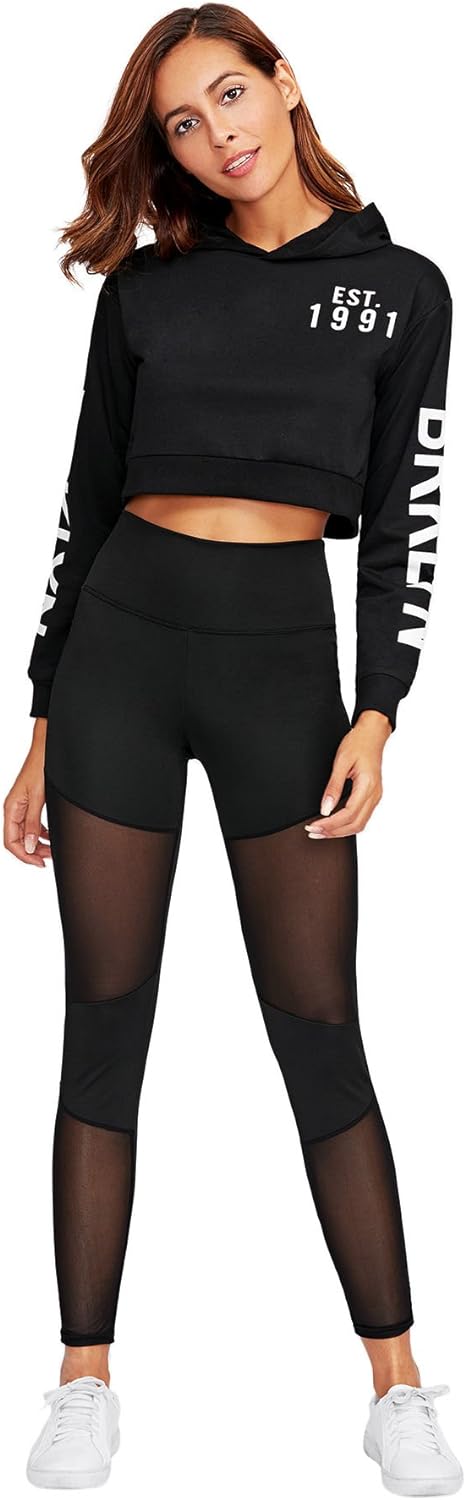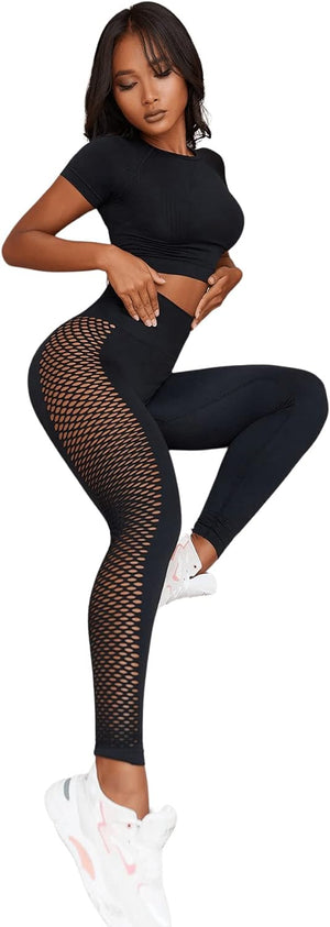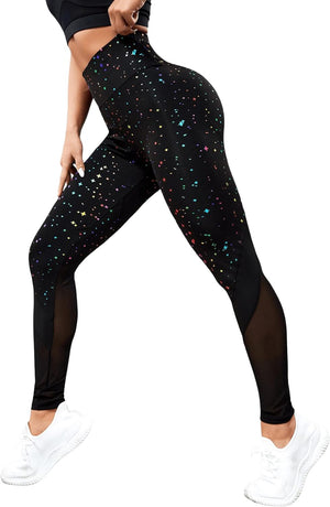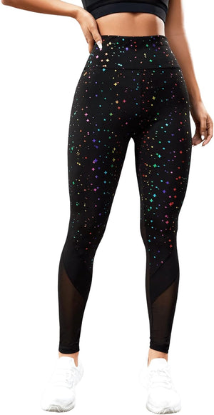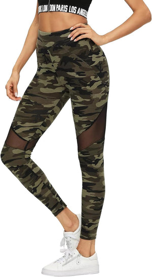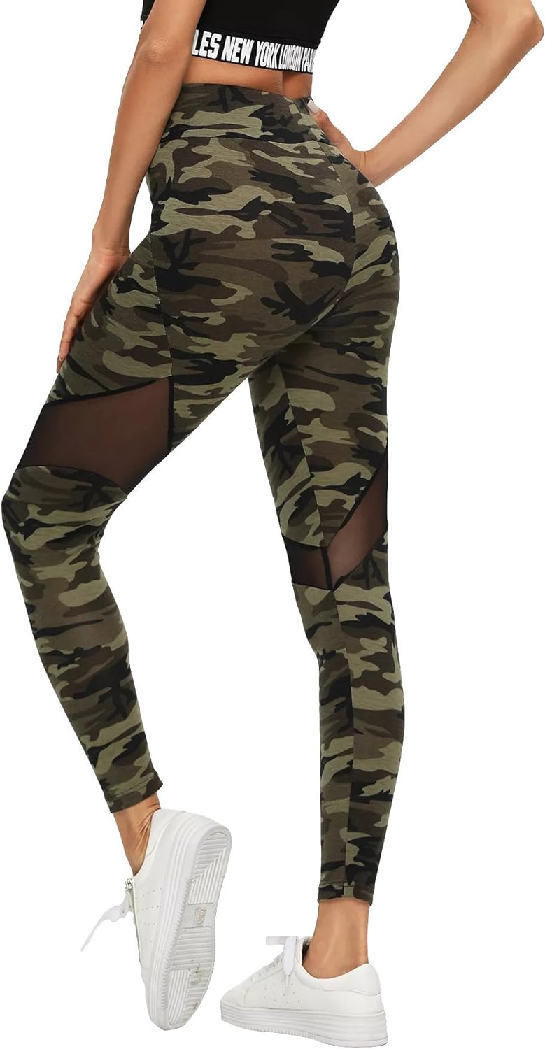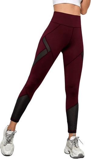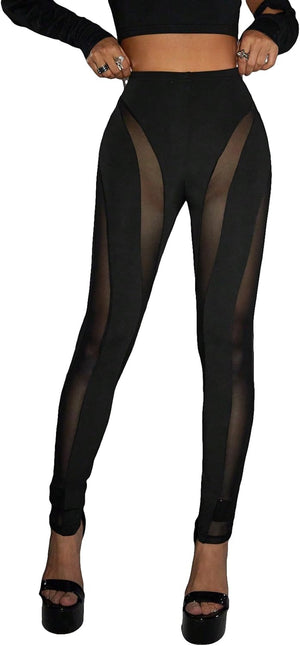 SweatyRocks Women's Stretchy Skinny Sheer Mesh Insert Workout Leggings Yoga Tights