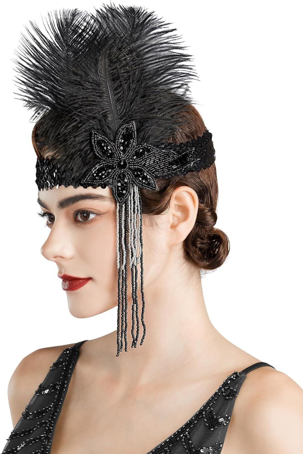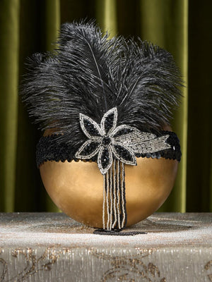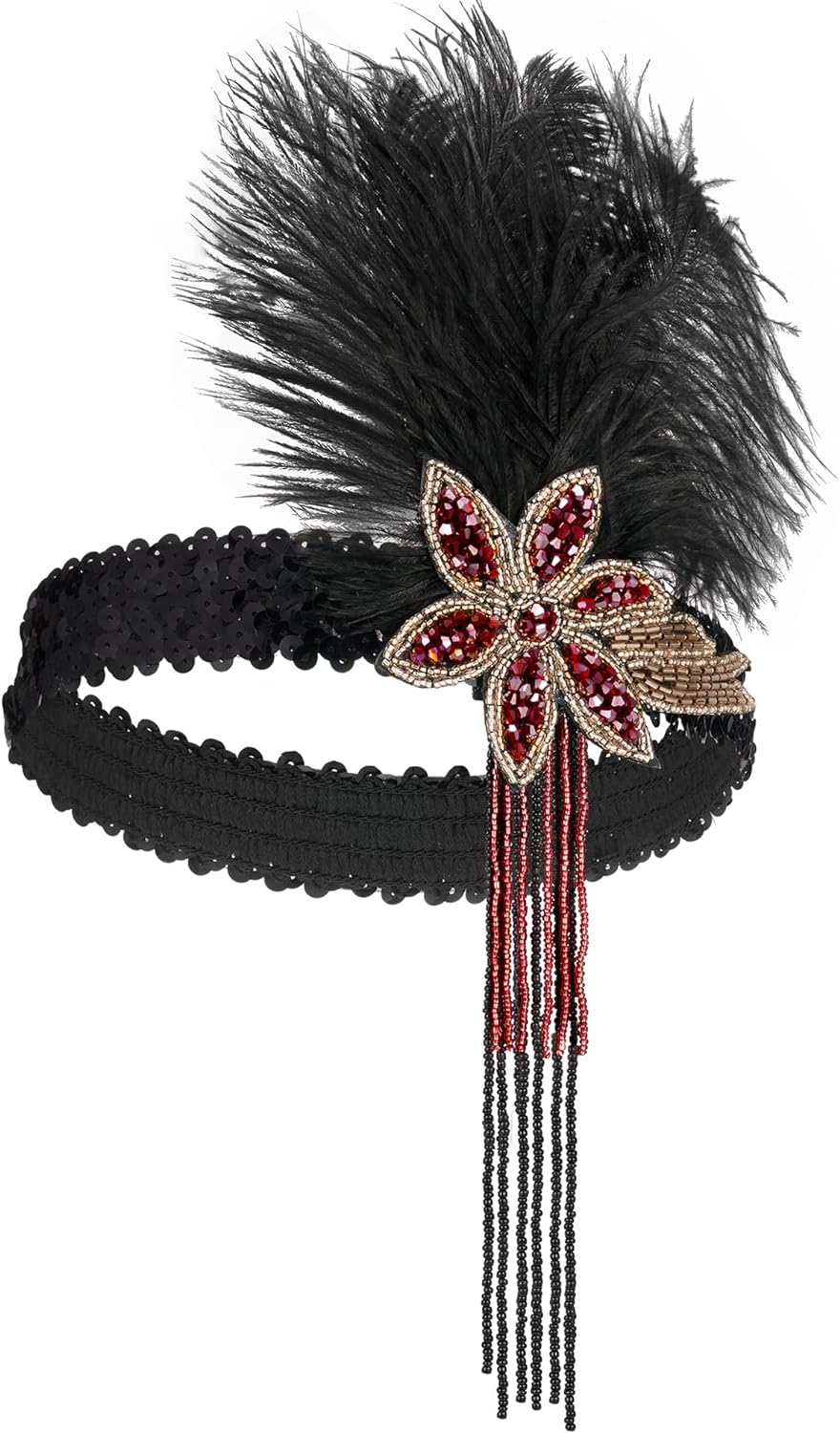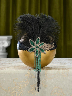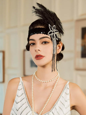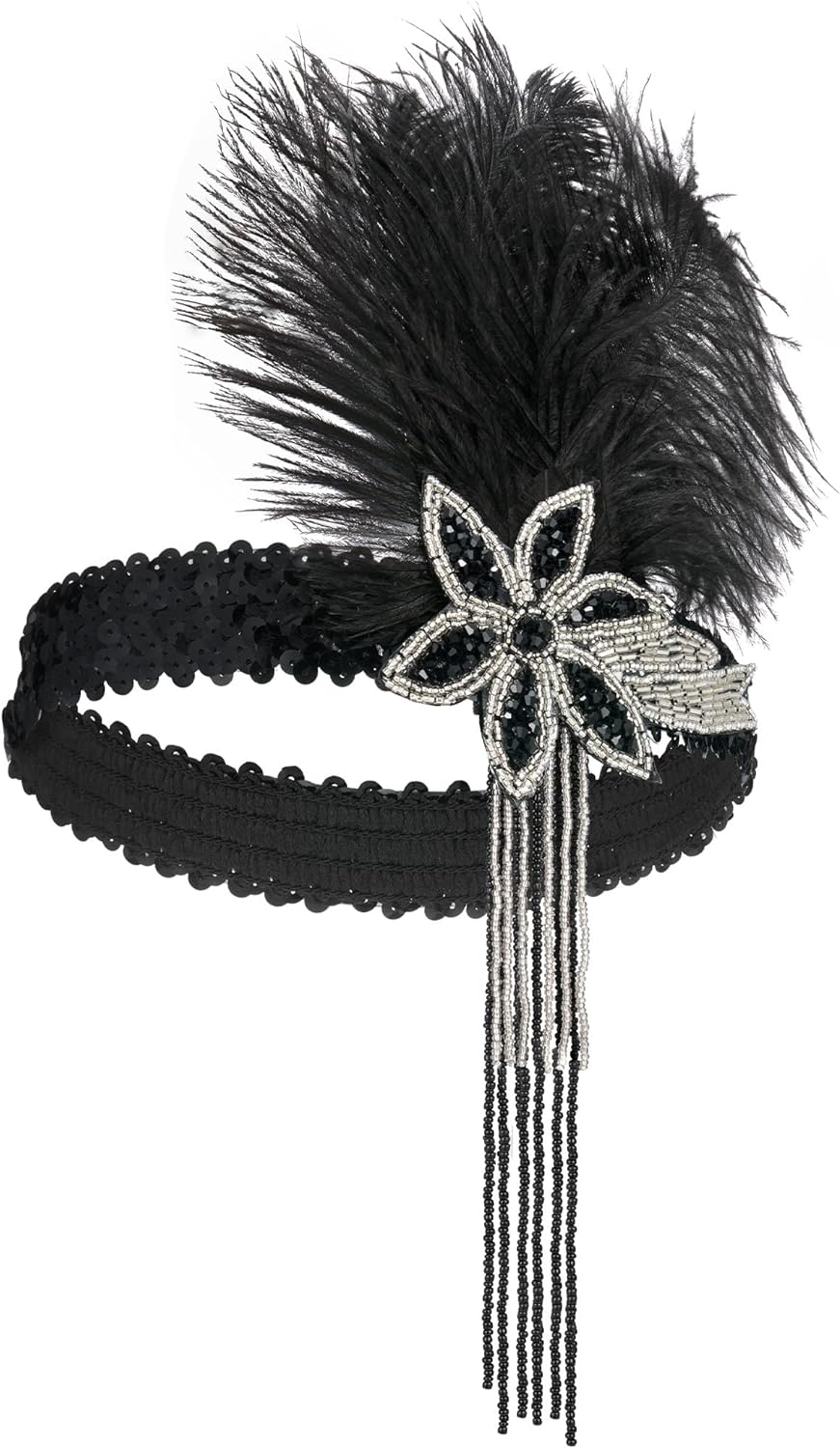 SWEETV 1920s Flapper Feather Headband Sequined Roaring 20s Gatsby Showgirl Headpiece Hair Accessories