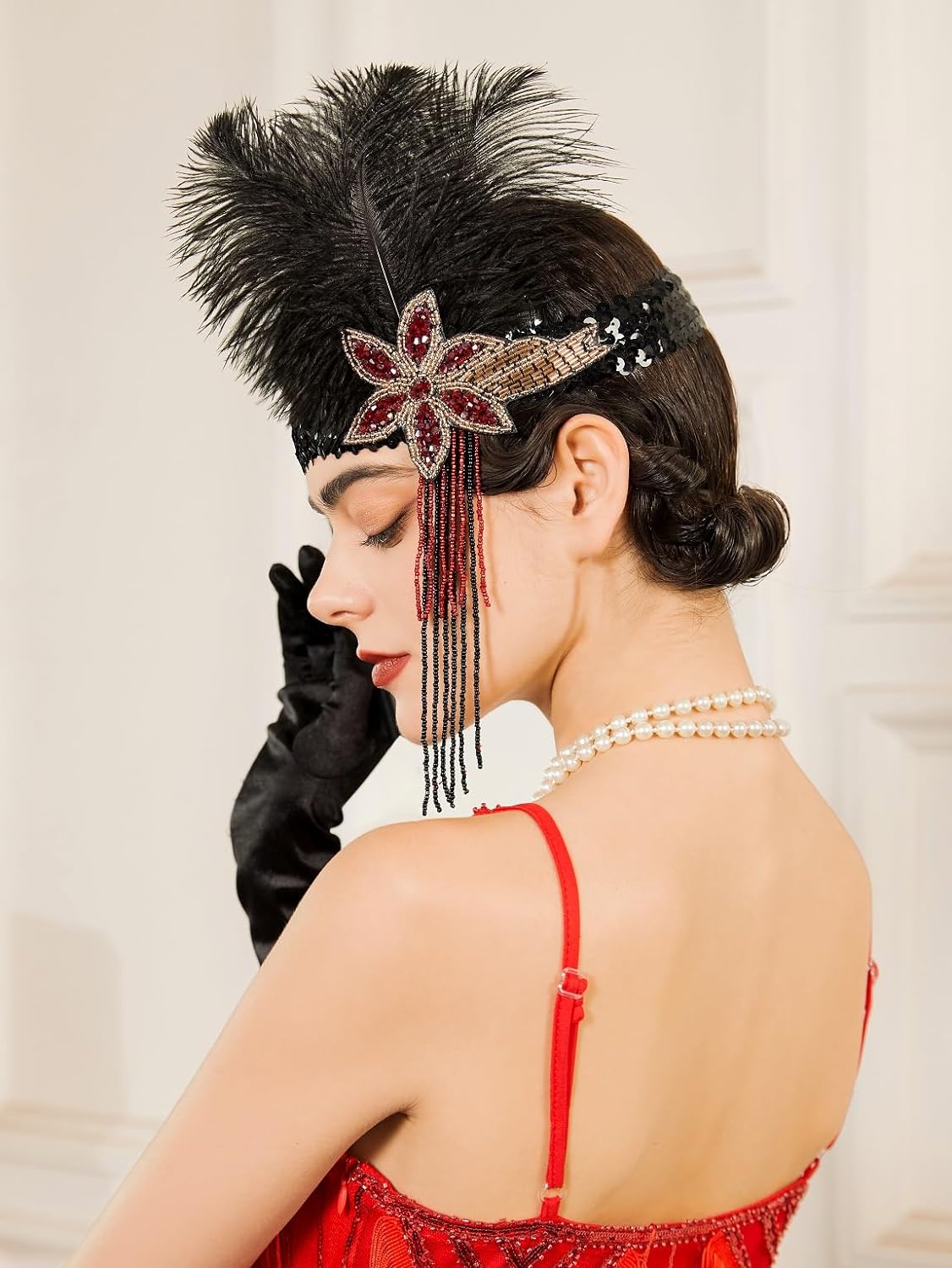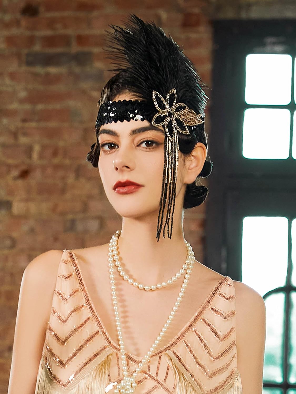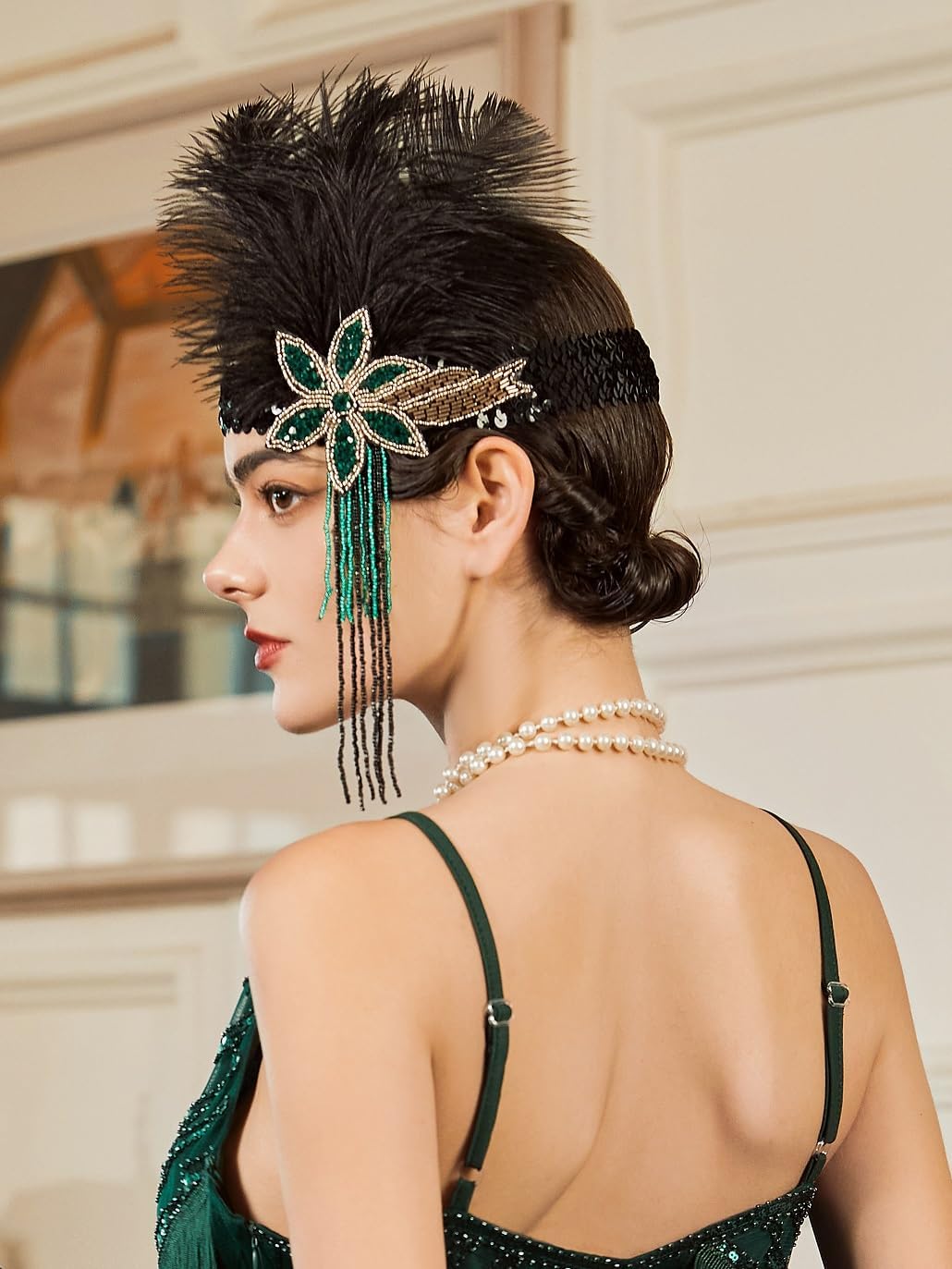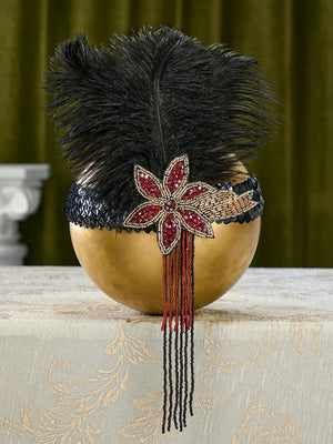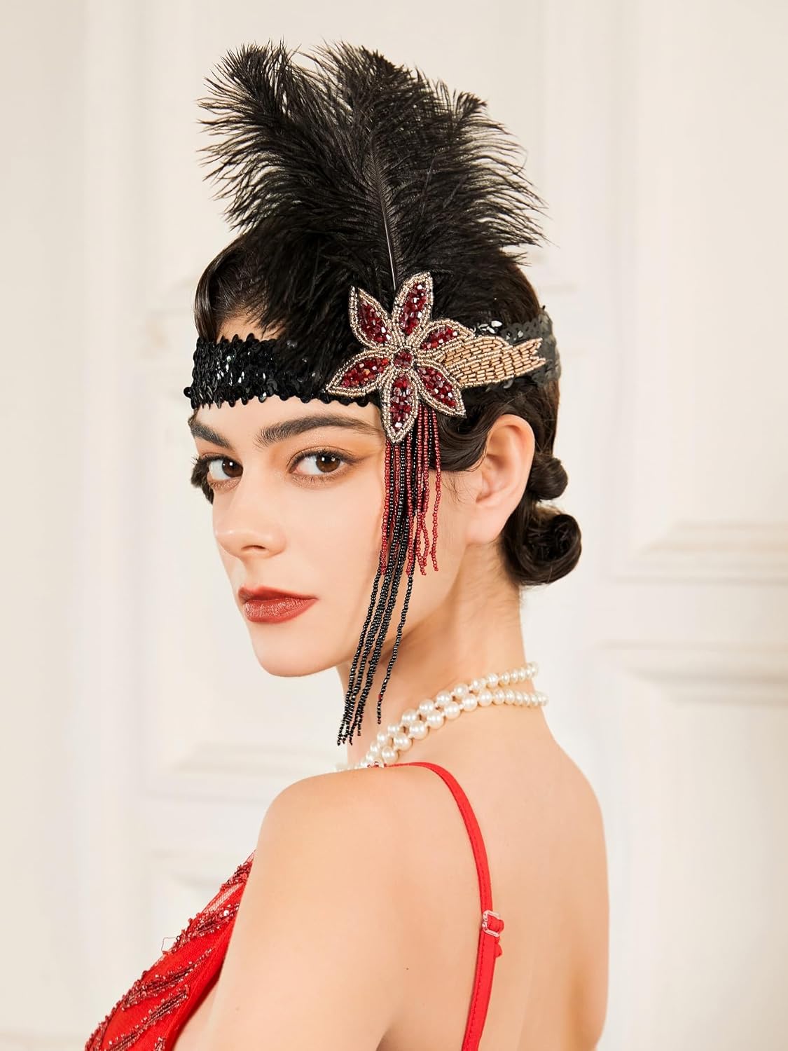SWEETV 1920s Flapper Feather Headband Sequined Roaring 20s Gatsby Showgirl Headpiece Hair Accessories