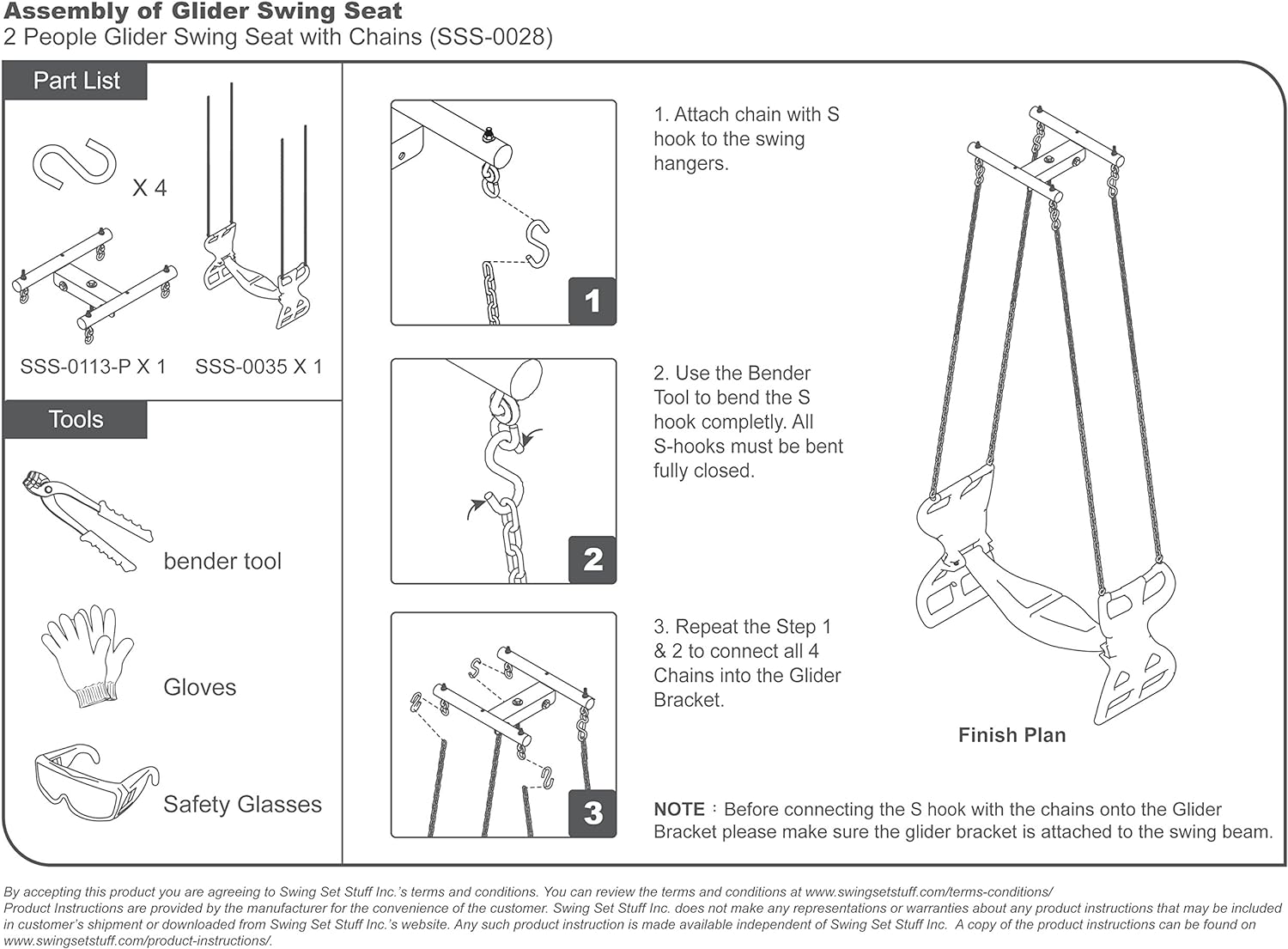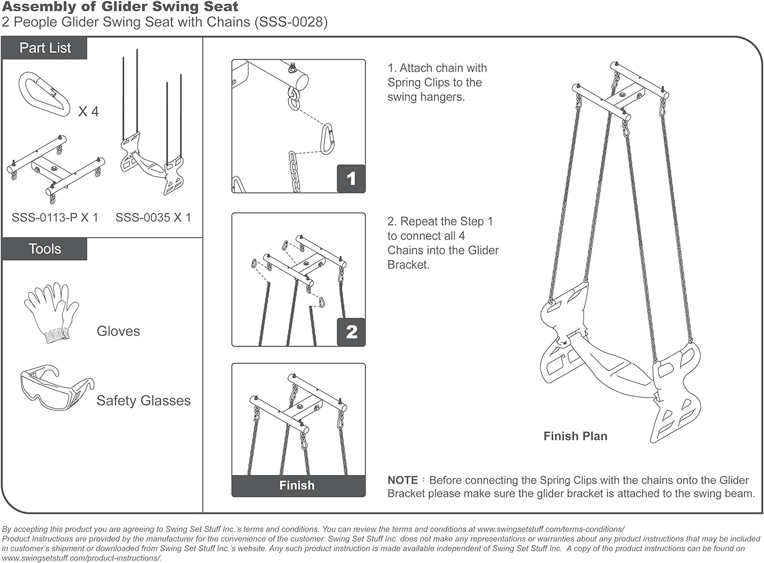 - Does NOT include Glider Bracket
