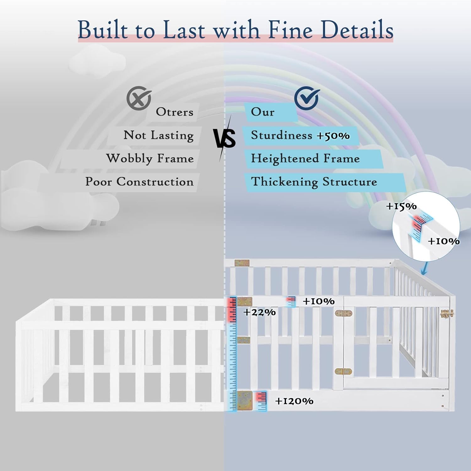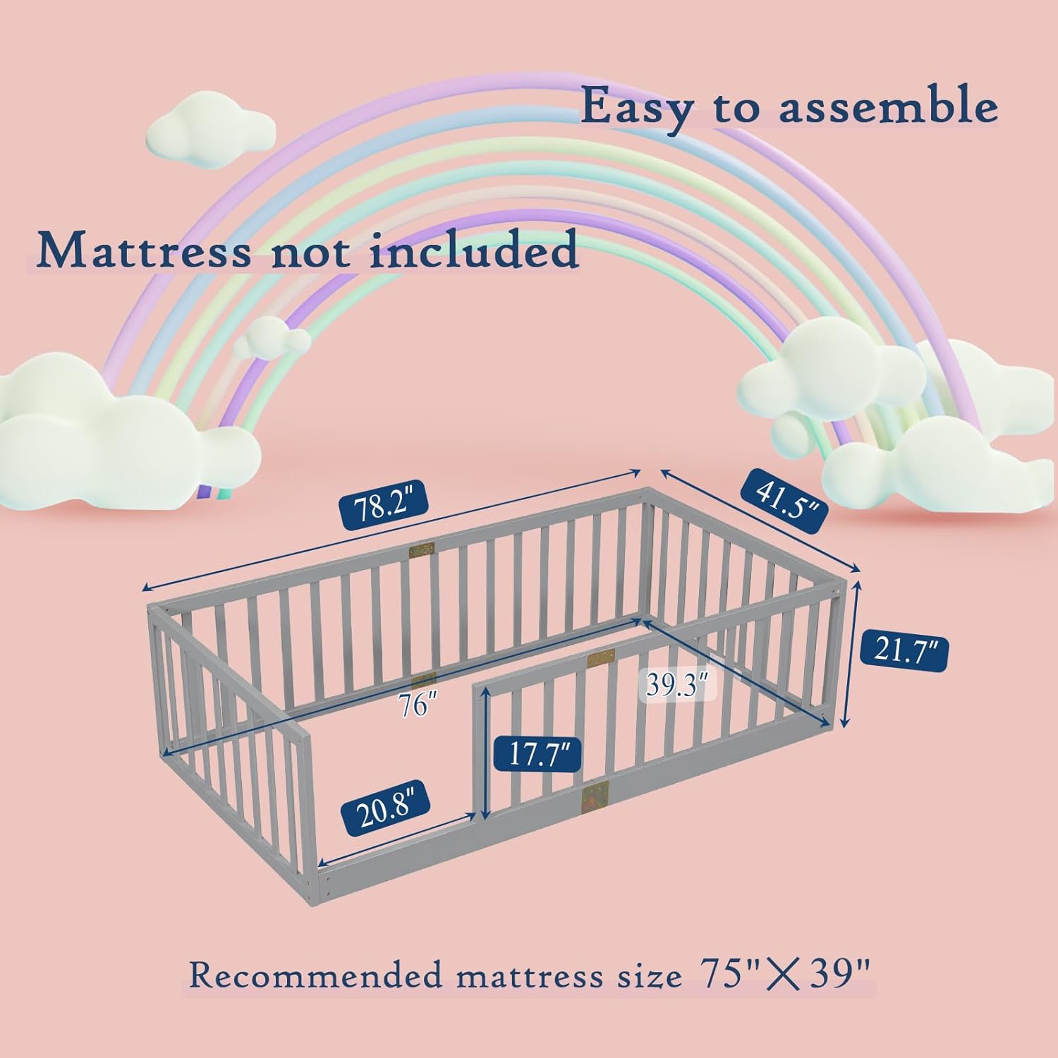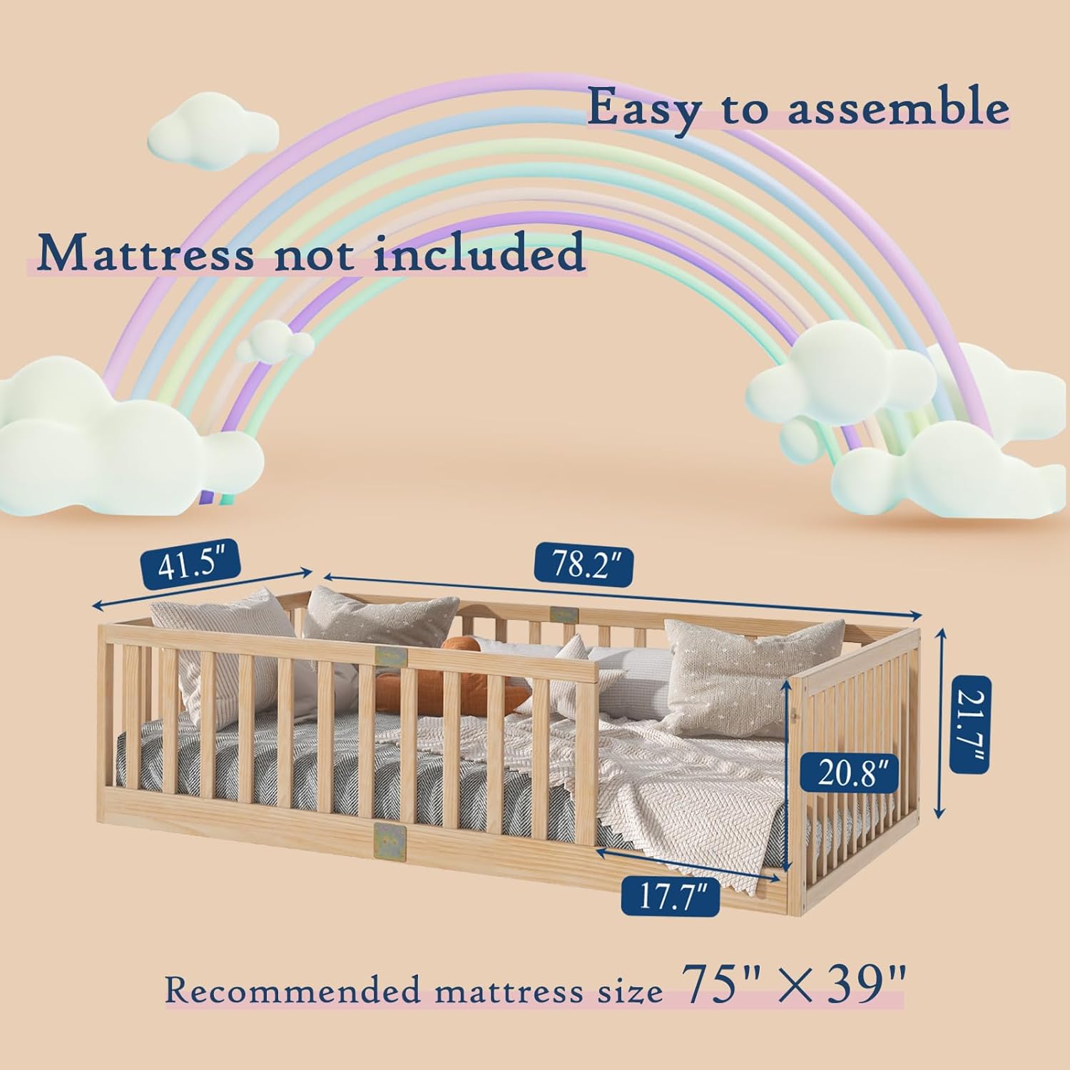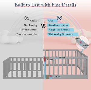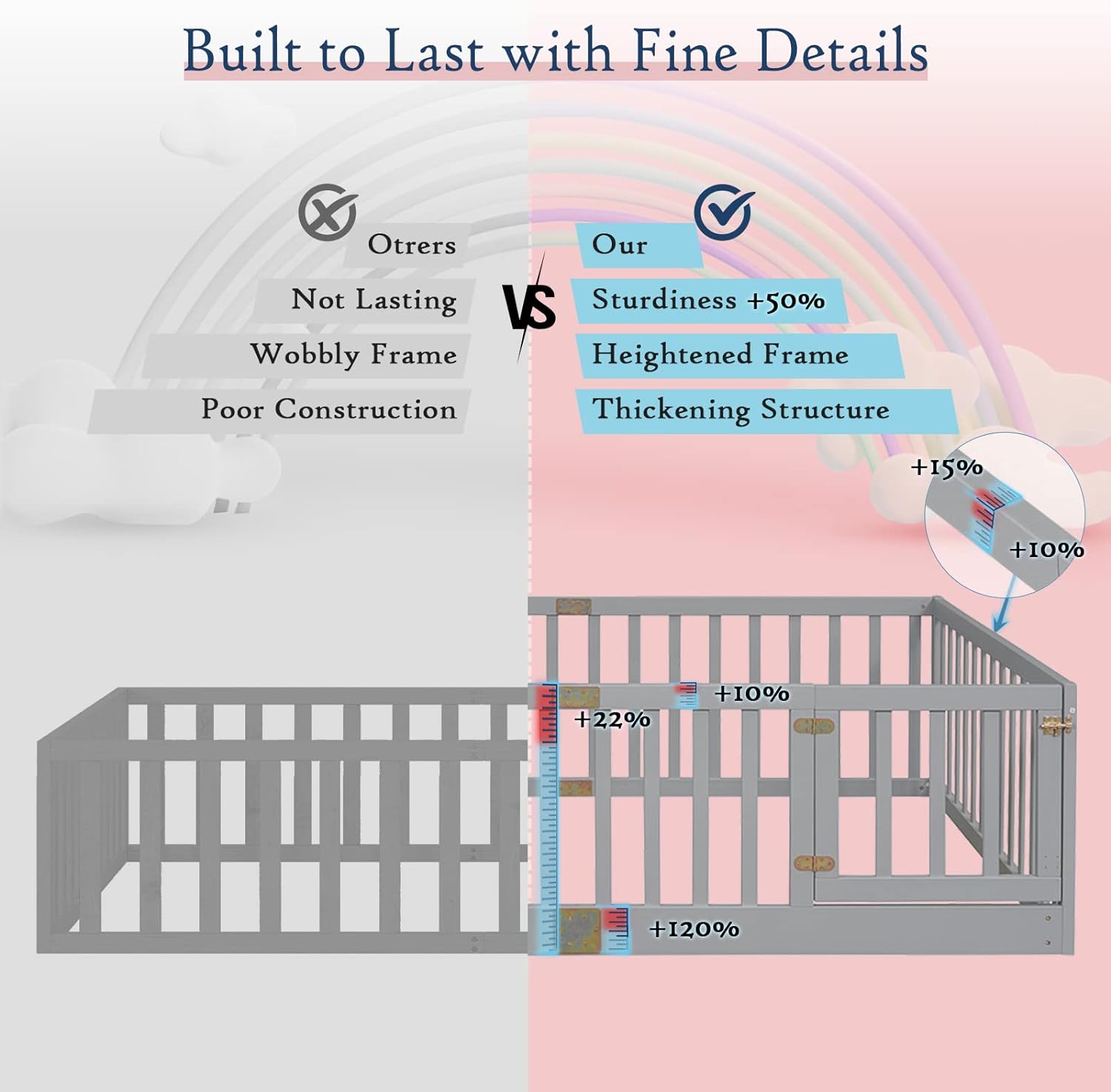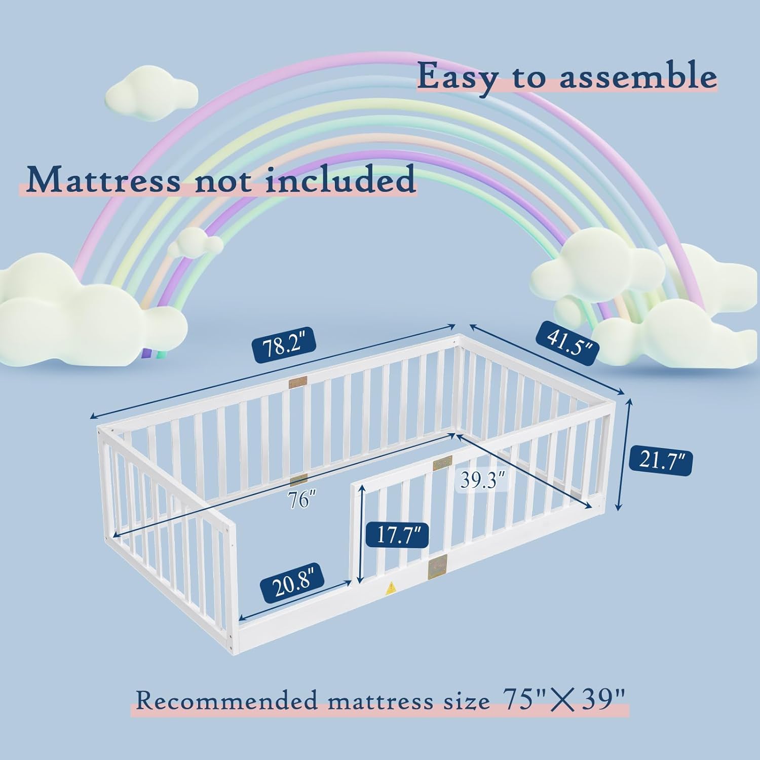 - 【Long-lasting Solid Structure】Upgraded thickened frame supports durability. This kids floor bed is easy to assemble less than a 30-minute assembly