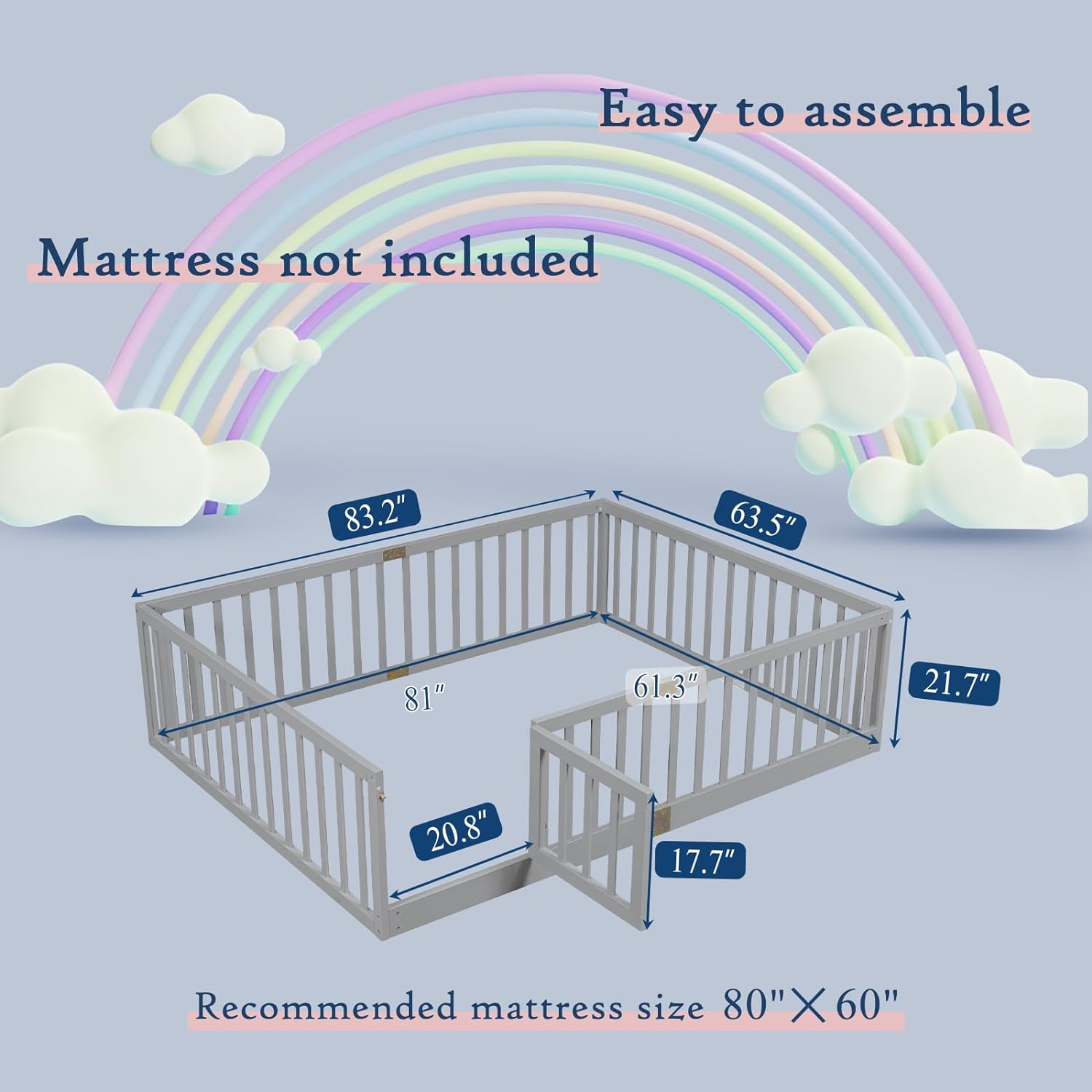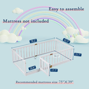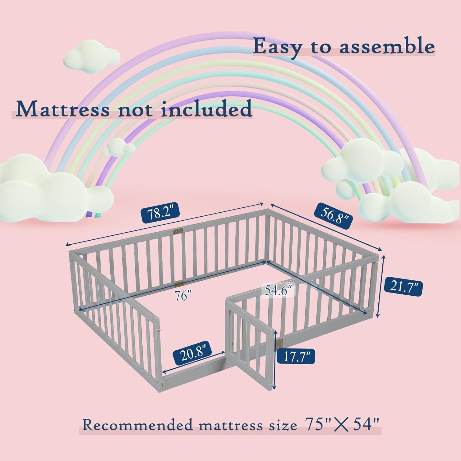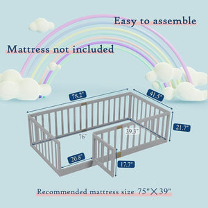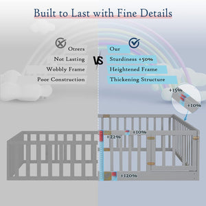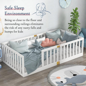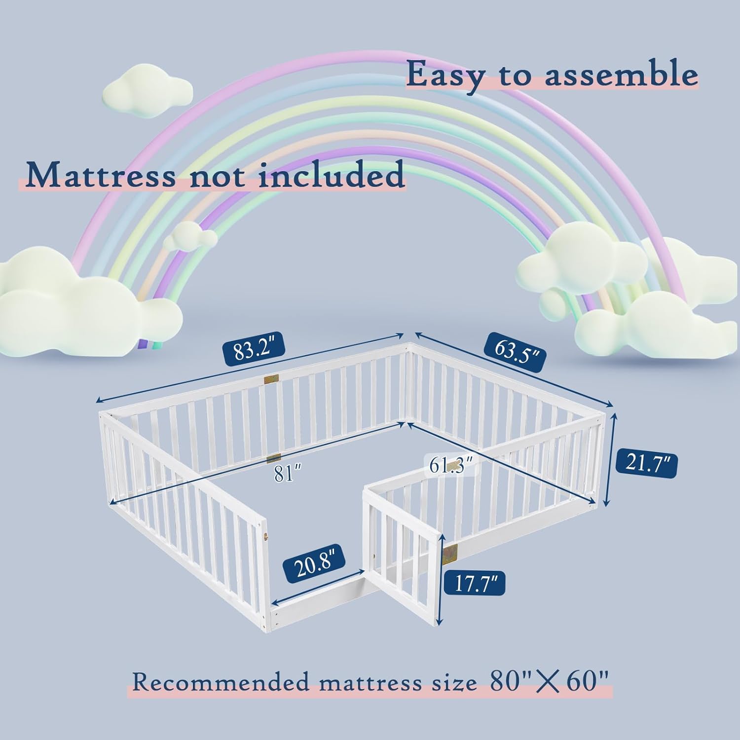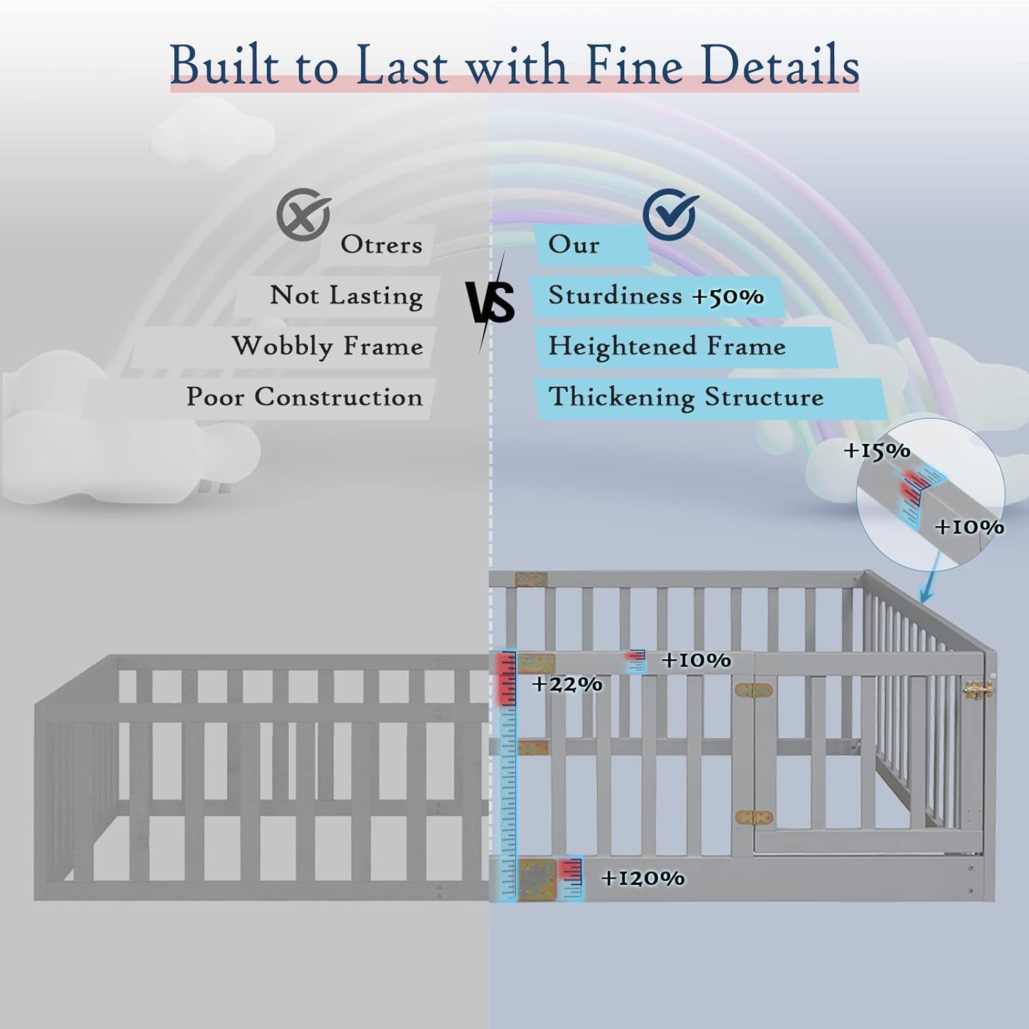 - 【Long-lasting Solid Structure】Upgraded thickened frame supports durability. This kids floor bed is easy to assemble less than a 30-minute assembly